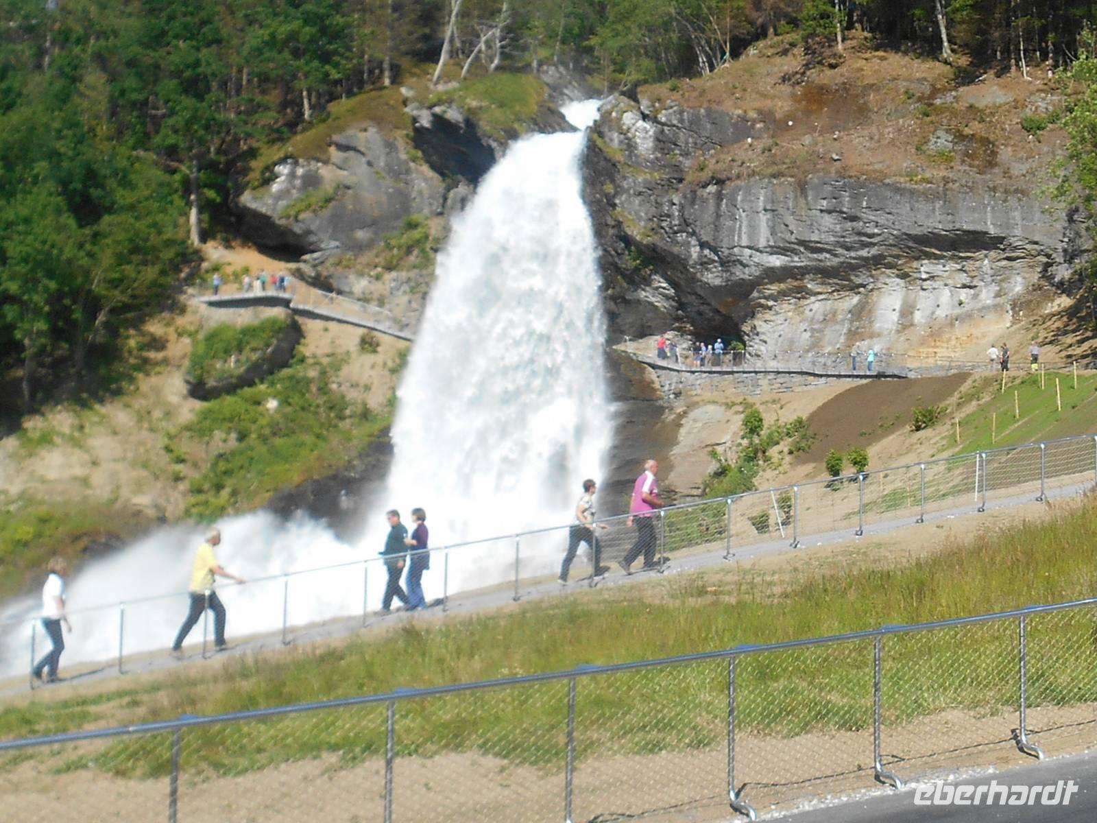 Nach einer schönen Zeit in Bergen ging es für uns auch schon wieder weiter. Eine erste kleine Pause legten wir heute am Wasserfall Steinsdalsfossen ein - hier sollte man sich die Chance nicht entgehen lassen, einmal einen Wasserfall "von hinten" zu betrachten; zwischen Felswand und Wasser führt ein schmaler Pfad entlang. Unser nächstes Ziel war der Hardangerfjord, der sich von der Küste über fast 180 Kilometer ins Land hinein erstreckt und in mehrere Fjordarme gliedert. Der König der Fjorde wird für seine weiß- und rosablühenden Obstgärten, das milde Klima, die leuchtend grünen Wiesenhänge und imponierenden Wasserfälle gepriesen. Zwischen Bruravik und Brimnes fuhren wir im letzten Jahr noch mit der Fähre - seid August 2013 ist allerdings nunmehr die neue Hardanger-Brücke fertig - über Eidfjord gelangten wir somit sehr zügig weiter zum berühmten Wasserfall Vøringfossen. 182 Meter sind es, die die gewaltigen Wassermassen der Bjoreia in freiem Fall zurücklegen - vom Fossli-Hotel aus genossen wir herrliche Blicke auf diesen imposanten Wasserfall! Wenige Minuten später waren wir bereits in der Hardangervidda, hier erlebten wir die endlose Weite dieses faszinierenden Hochgebirgsplateaus, in der Europas größter Stamm wilder Rentiere zu Hause ist. Über Geilo, Gol und das fruchtbare Hallingdal kamen wir am Abend in unserem Hotel in Noresund an. Das Hotel liegt direkt am fischreichen Kröderensee, ungefähr 100 Kilometer von Oslo entfernt.
