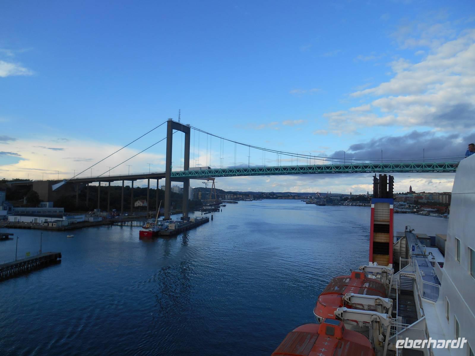 Die letzte Nacht auf norwegischem Boden lag nun hinter uns und so langsam traten wir unsere Heimreise an. Am Vormittag legten wir noch einen kurzen Stopp am Holmenkollen von Oslo ein. Hoch über der Stadt Oslo ragt die neue Holmenkollen Skisprunganlage, die modernste Sprungschanze der Welt - ein imposantes Bauwerk aus Stahl und Beton! Leider war es für uns nicht möglich, den Turm zu besichtigen, von dessen höchster Stelle man einen spektakulären Ausblick auf Oslo und den Oslofjord hat - der Schrägaufzug war nämlich defekt! Gegen Mittag hieß es dann Abschied nehmen von Norwegen, denn das südschwedische Göteborg war unser Ziel! Da wir allerdings noch genügend Zeit hatten, unternahmen wir kurzerhand einen kleinen Abstecher in den Schärengarten nördlich von Göteborg - wir fuhren über die Inseln Orust und Tjörn und hier ist man wahrlich mitten in der Wunderwelt der Schären. Beide Inseln sind miteinander verbunden und liegen etwa 60 km nördlich von Göteborg. Sie sind vom Festland aus über die imposante Tjörn-Brücke zu erreichen. In Göteborg erwartete uns dann bereits am späten Nachmittag die Fähre der "Stena Germanica", die pünktlich um 18.45 Uhr ablegte und die 437 Kilometer lange Seereise bis Kiel in Angriff nahm. Ein leckeres Abendbuffet auf der Fähre rundete diesen letzten Abend ab!