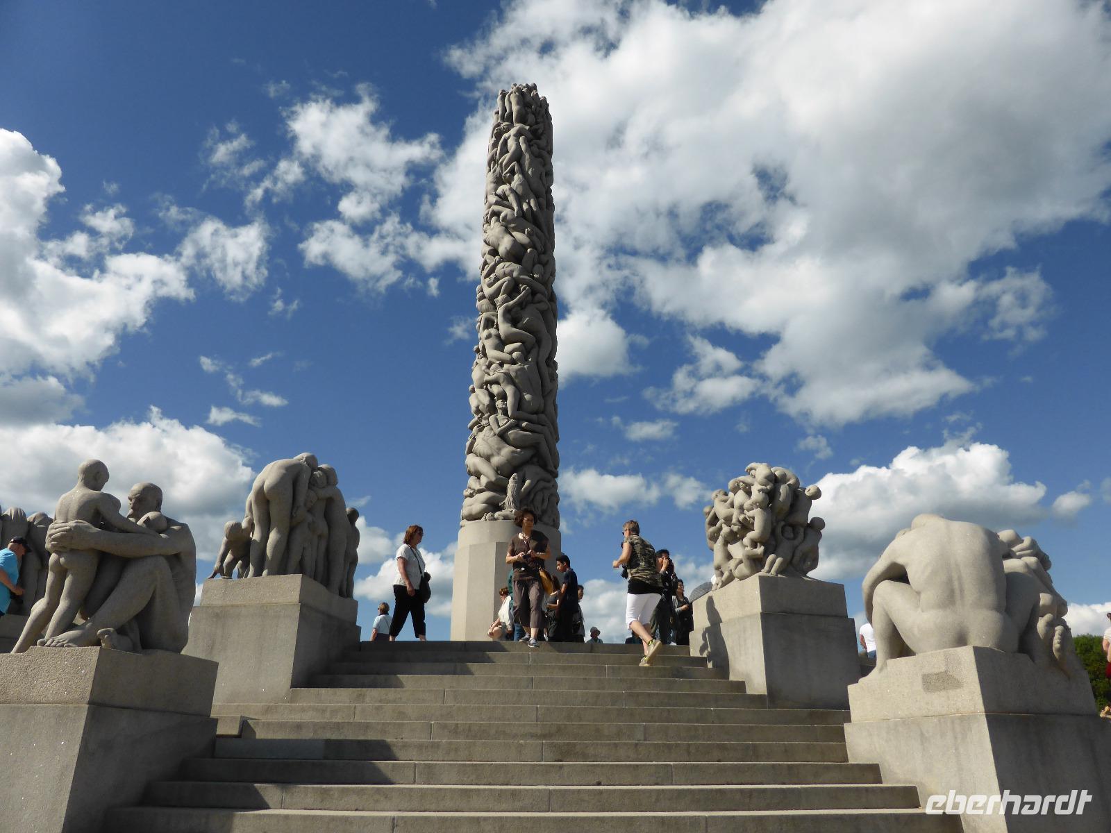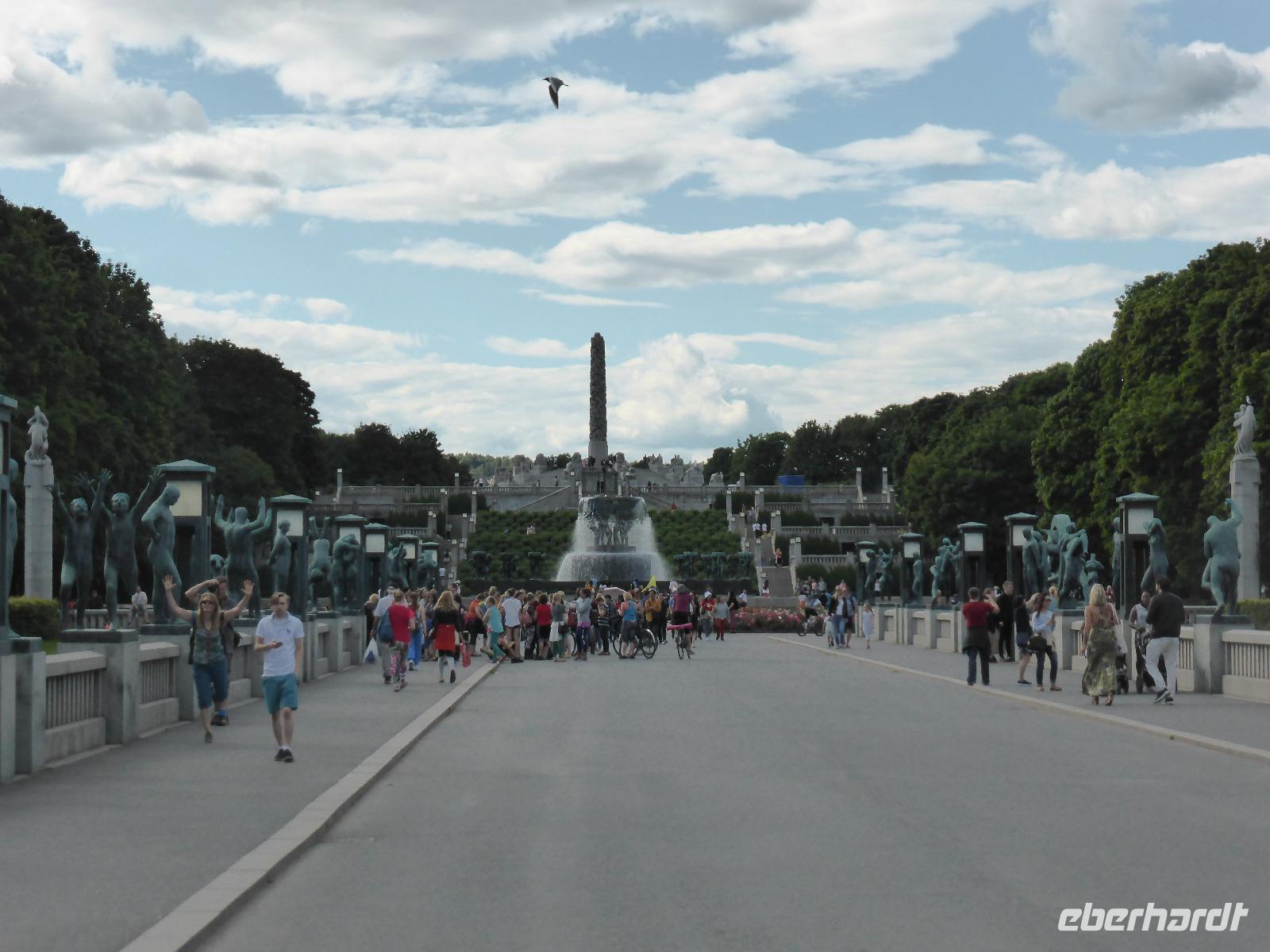 Angekommen in der norwegischen Hauptstadt erwartete uns bereits unser Stadtführer Gabriel für die zweistündige Stadtbesichtigung. Den ersten Stopp legten wir an der neuen Oper ein. Durch die Innenstadt führte uns der Weg zum Lebenswerk von Gustav Vigeland, Frognerpark bzw. Vigelandpark. Gustav Vigeland gestaltete diesen Park mit hunderten von menschlichen Figuren, die den Lauf des Lebens darstellen. Alle wurden in Handarbeit aus Granit erschaffen. Heute ist dieser Park öffentlich und mit wunderschönen Blumenbeeten geschmückt.
