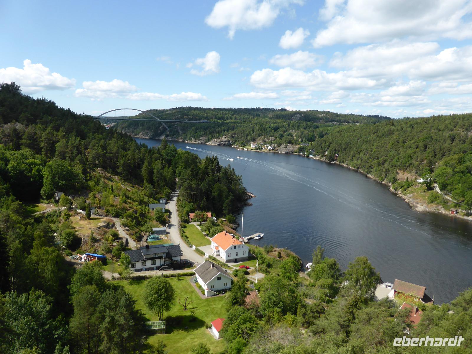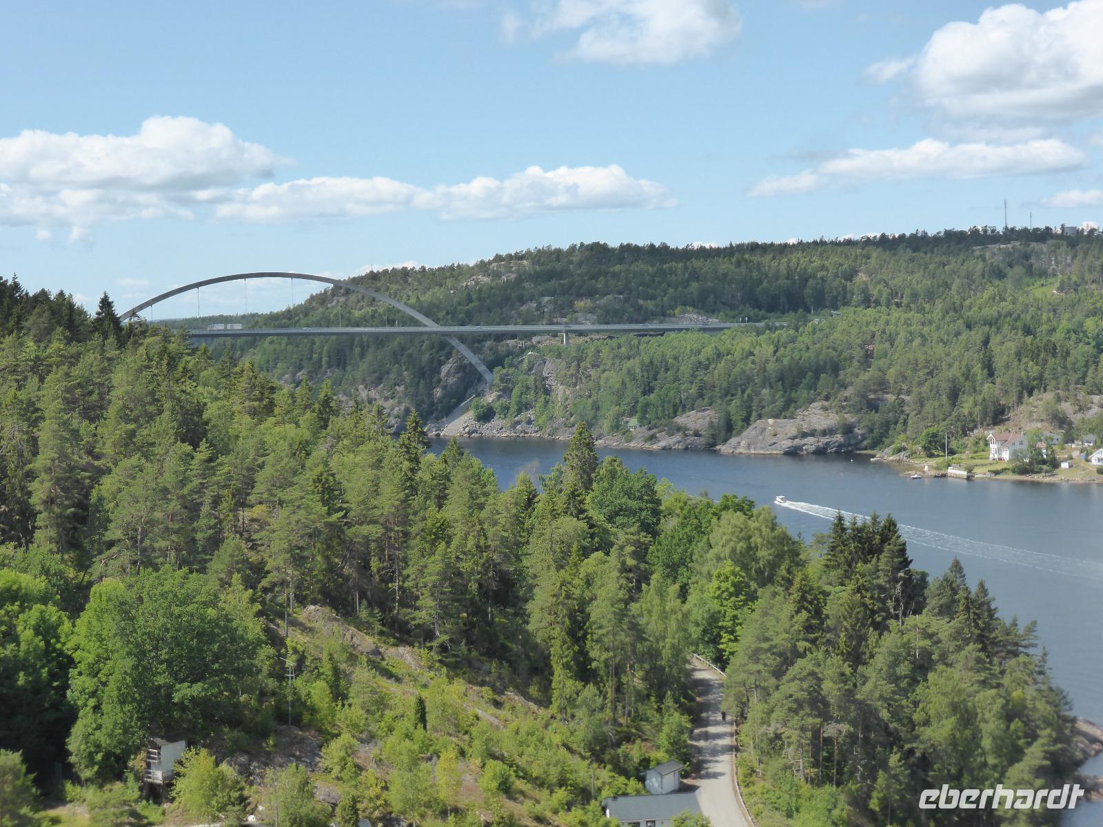 Von der Masthuggskirche in Göteborg genossen wir einen wunderschönen Blick auf die Hafenstadt. Im Anschluss führte uns die Weitereise durch die Provinz Bohuslän vorbei an Uddevalla zur alten Svinesundbrücke. Diese Brücke wurde 1946 errichtet und war damals die höchste Brücke in Nordeuropa. Von der alten Brücke genossen wir einen wunderschönen Blick auf die natürliche Grenze zwischen Schweden und Norwegen, den Svinesund sowie die neue Brücke aus dem Jahr 2005. Diese überqueren wir dann auf der Rückreise.