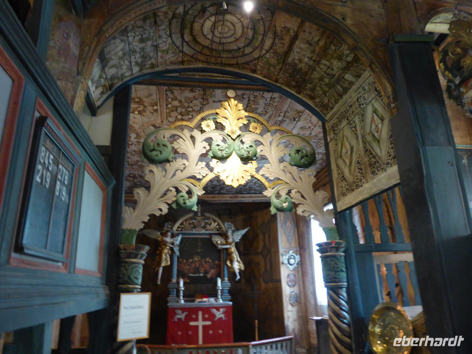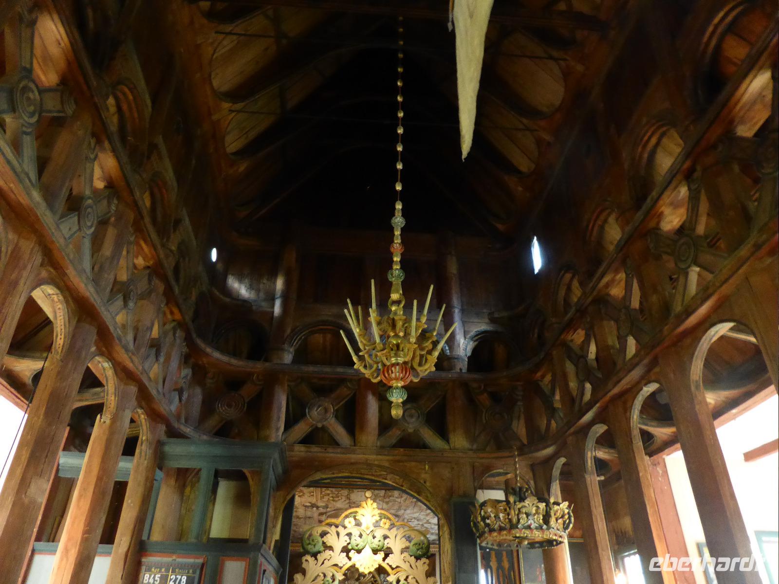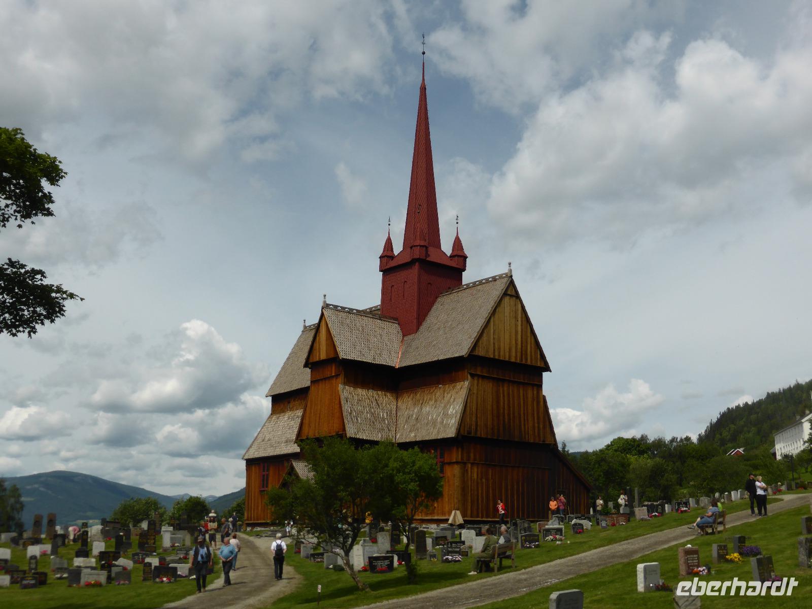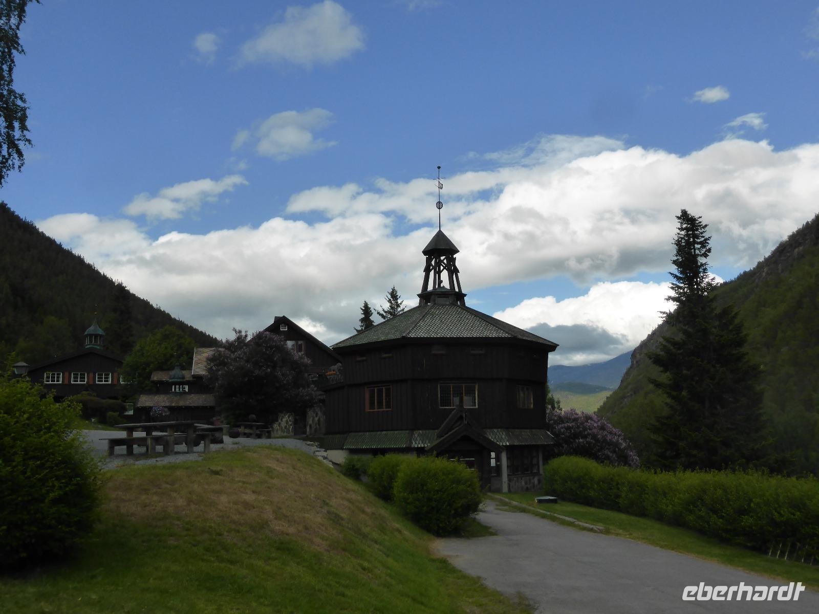 Durch das Ottatal gelangten wir nach Lom. Lom ist bekannt durch die Stabkirche aus dem 12. Jahrhundert. Sie wurde allerdings nach der Reformation 1537 umgebaut. Die Stabkirchen sind der einzige Beitrag, den Norwegen zur weltweiten Architektur beiträgt. Der Aufbau sowie die farbenfrohe Innenausstattung beeindruckten uns sehr.