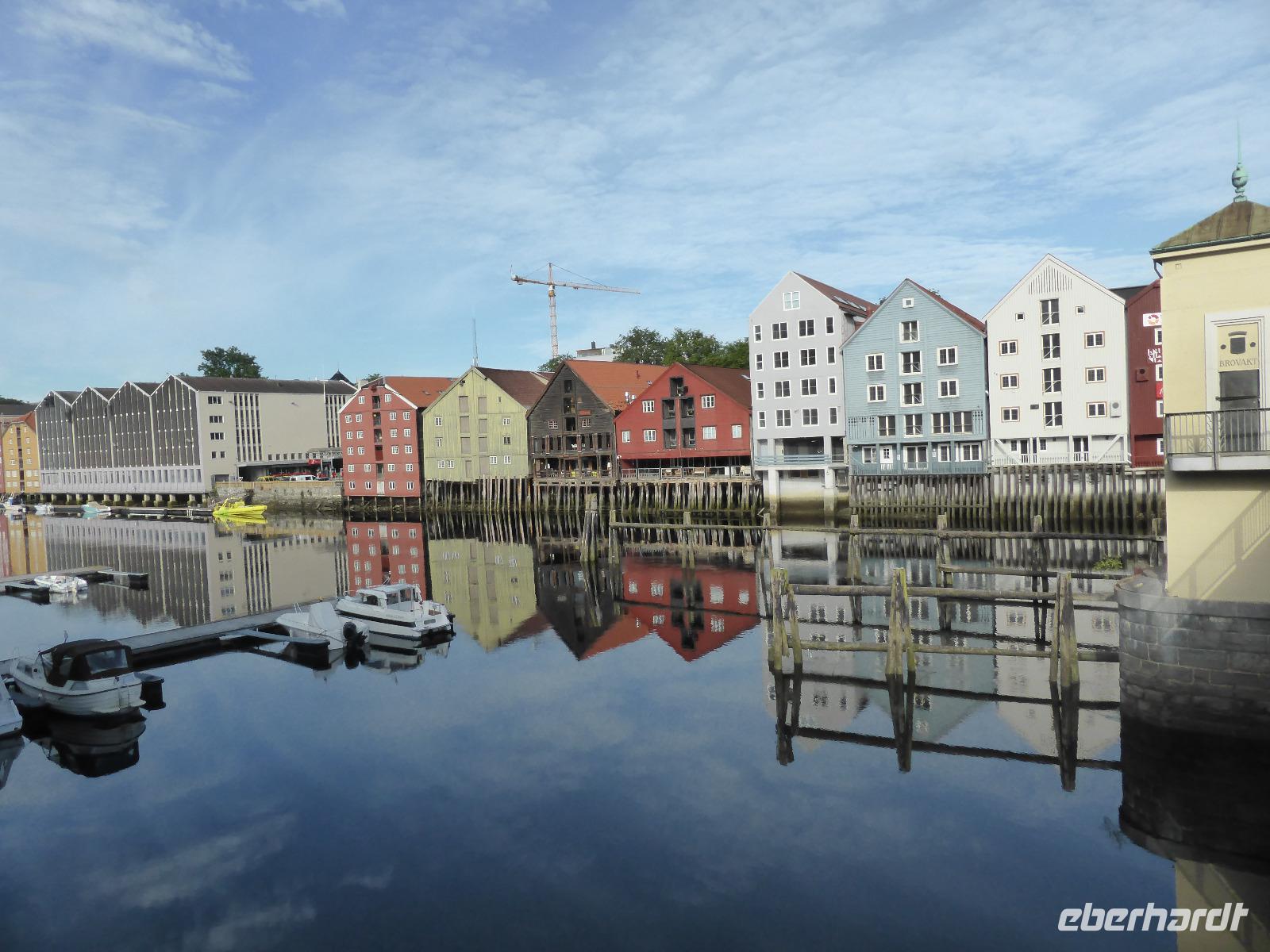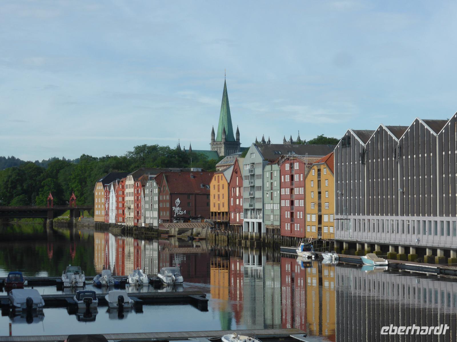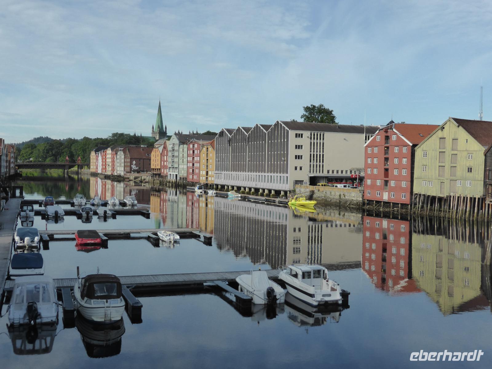 In einer kurzen Freizeit hatten wir die Möglichkeit weitere Gebäude im alten bzw. neuen Teil des Museum zu besichtigen. Dann setzten wir unsere Reise durch das Gudbrandstal fort. Nach einem Zwischenaufenthalt in Dombas erglommen wir die Höhen des Dovrefjells. Am Pass Hjerkinn auf 1026 m Höhe genossen wir einen Blick auf die höchste Erhebung Snöhetta sowie die umliegenden schneebedeckten Berge. Angekommen im Scandic Hotel Bakklandet in Trondheim blieb bis zum Abendessen noch etwas Zeit die naheliegenden alten Speicherhäuser am Nidfluss zu besichtigen.