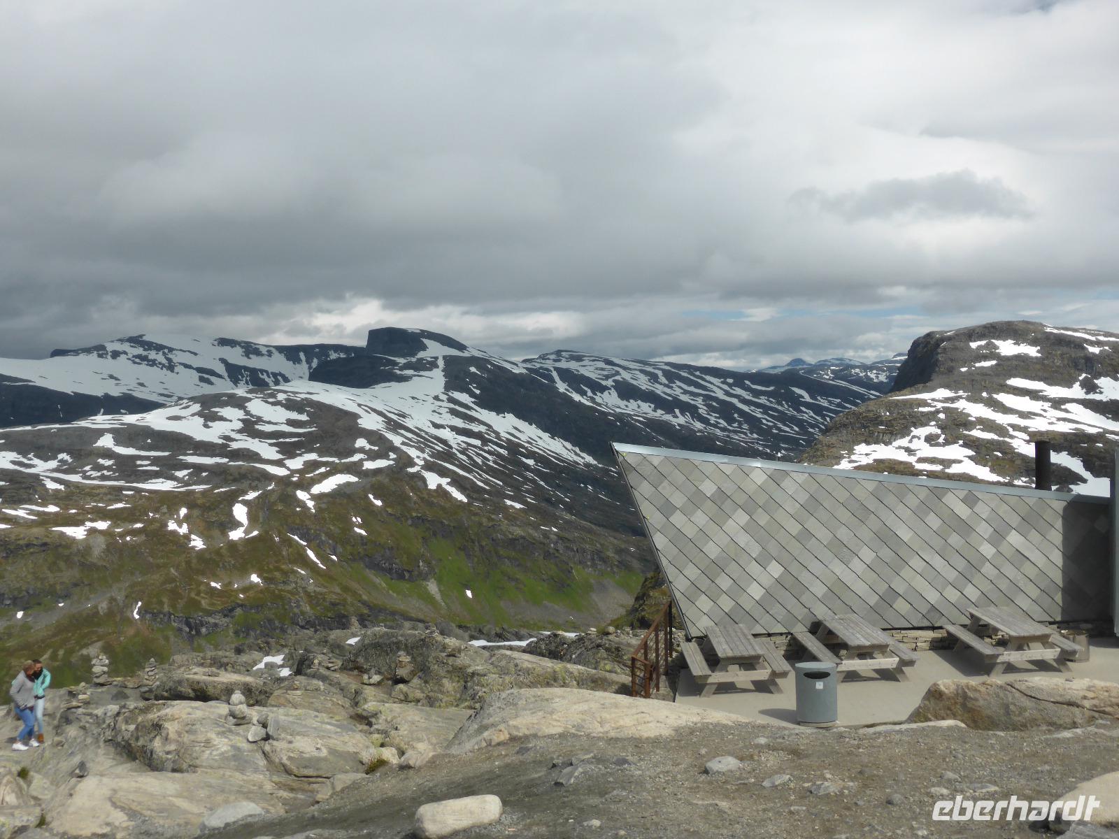Gestärkt durch das reichhaltige Frühstück setzten wir unsere Reise fort. Petrus war leider nicht auf unserer Seite, sodass die Auffahrt auf den Aussichtsberg Varden von Molde umsonst war. Das berühmte Modepanorama mit 222 Gipfeln blieb uns leider verwehrt. Aber auch der Weg kann das Ziel sein. Die Fahrt durch die norwegischen Wälder hatte auch seinen Reiz.