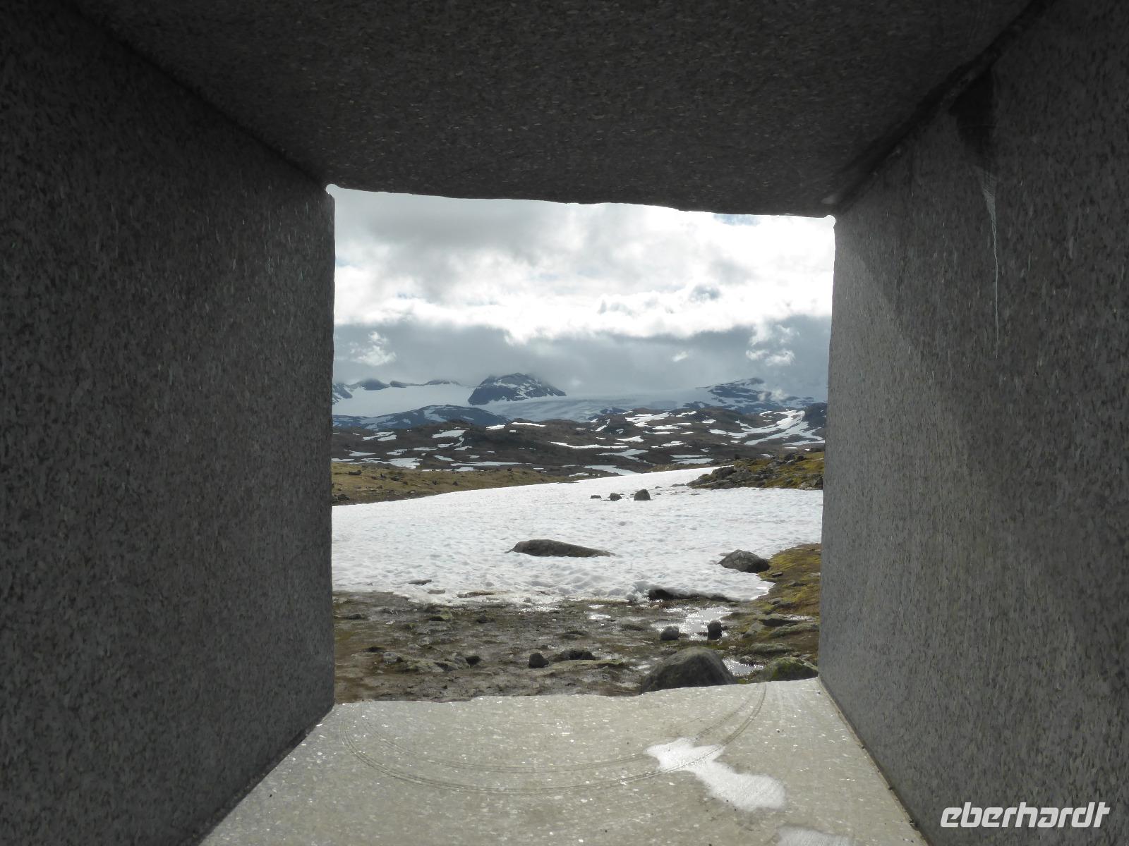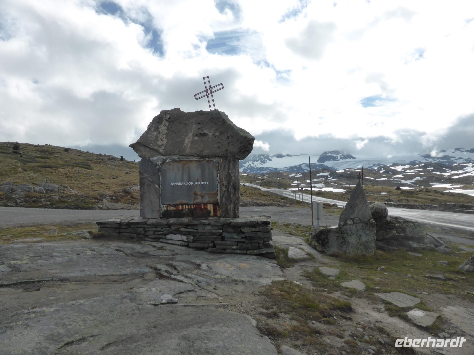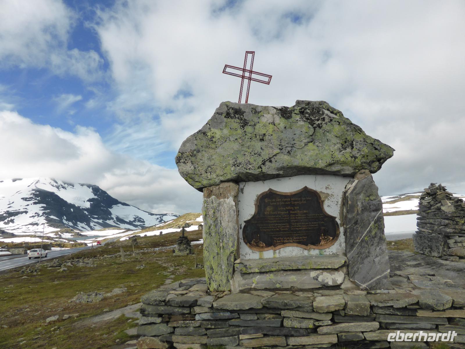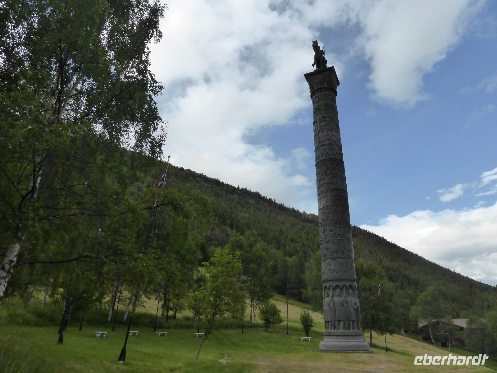 Unser heutiges Domizil war das Hotel in Elveseter. Seit über 100 Jahren bietet dieses Hotel Übernachtungsmöglichkeiten an der alten Sognefjellstrasse. Mit sehr viel Liebe zum Detail wurde die Ursprünglichkeit des Hauses bewahrt und doch den erforderlichen Bedingungen eines Hotelbetriebes angepasst. Wir kamen uns vor wie im Museum. Als Nationaldenkmal gilt die berühmte Sagasäule im Hotelgelände, welche die norwegische Geschichte vom neunten Jahrhundert bis 1814 darstellt. Diese Säule war ursprünglich für den Paralamentsplatz in Oslo geplant. Da sie nicht fertig gestellt war, erwarb sie der Kunstliebhaber des Hotels Elveseter, vollendete sich und stellte sie in seinen Garten.