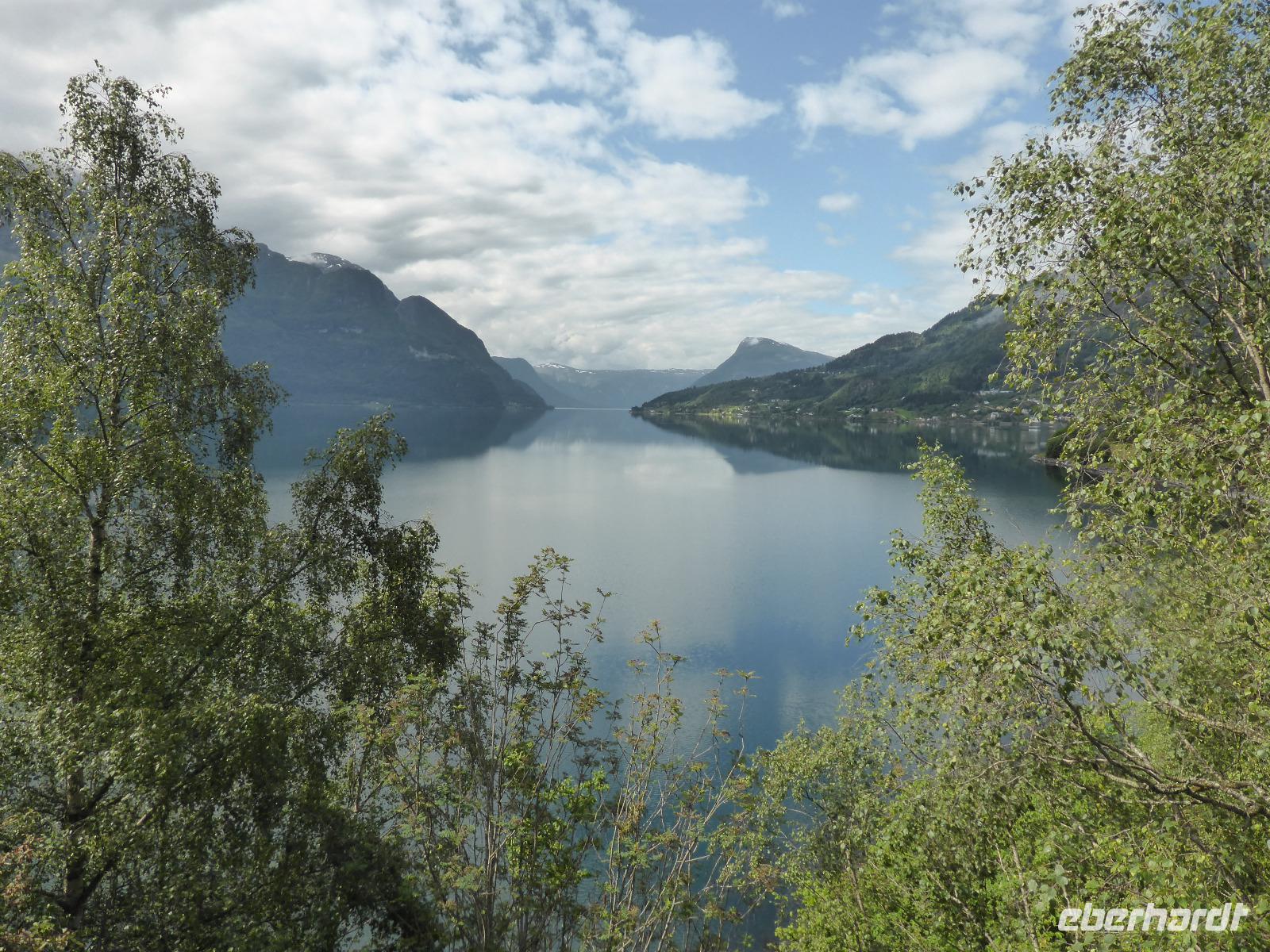 Unsere Weiterreise führte uns zum bekannten Hardangerfjord. Dieser Fjord ist Namensgeber für zahlreiche Dinge, z.B. das Musikinstrument sowie die Handarbeit. Der Hardangerfjord ist auch der Obstgarten Norwegens mit zahlreichen Kirsch-, Apfel-, Birnen und sogar Pfirsichbäumen. Ein besonderer Anblick ist die Blüte der zahlreichen Obstbäume im Frühjahr.