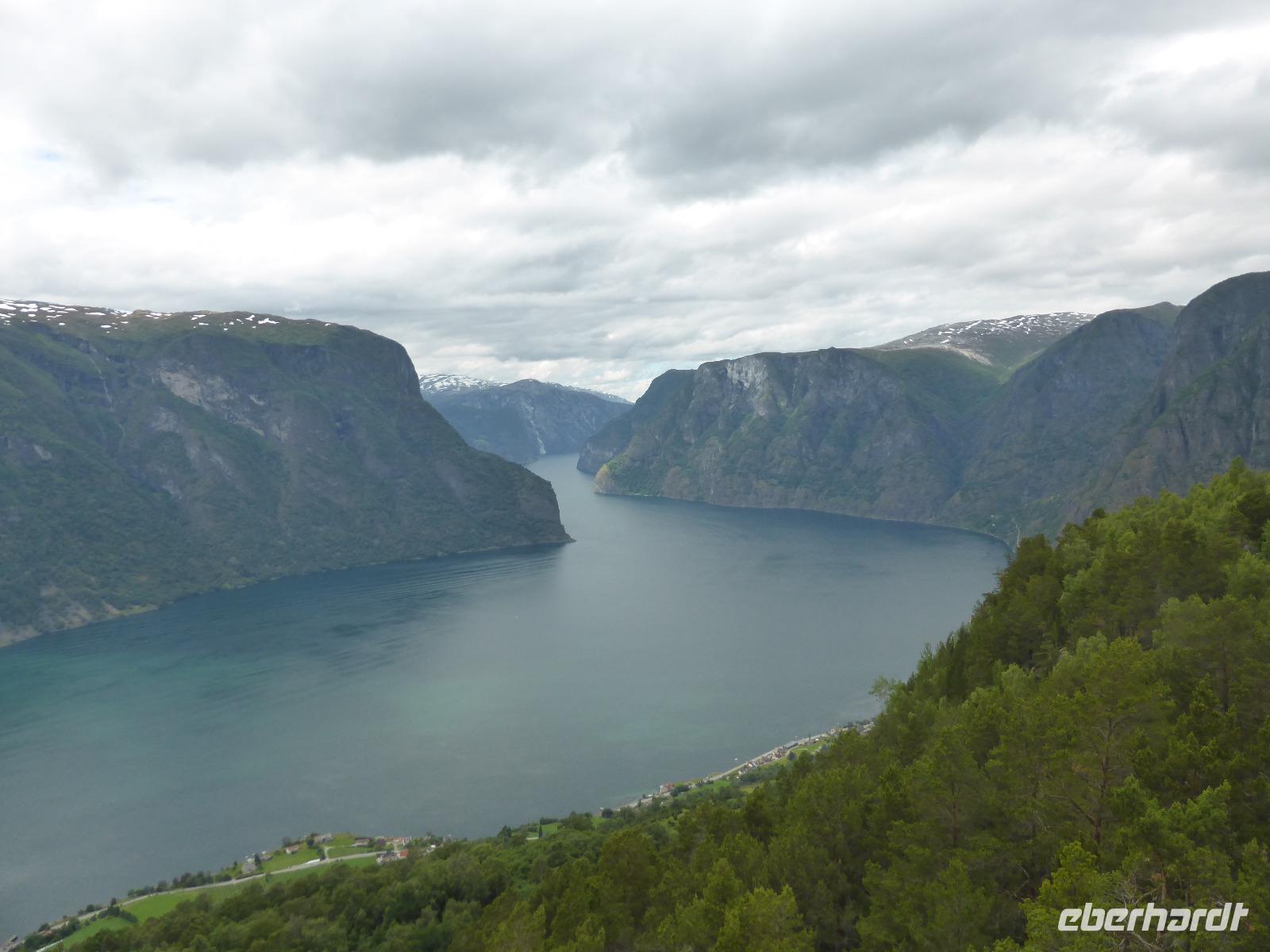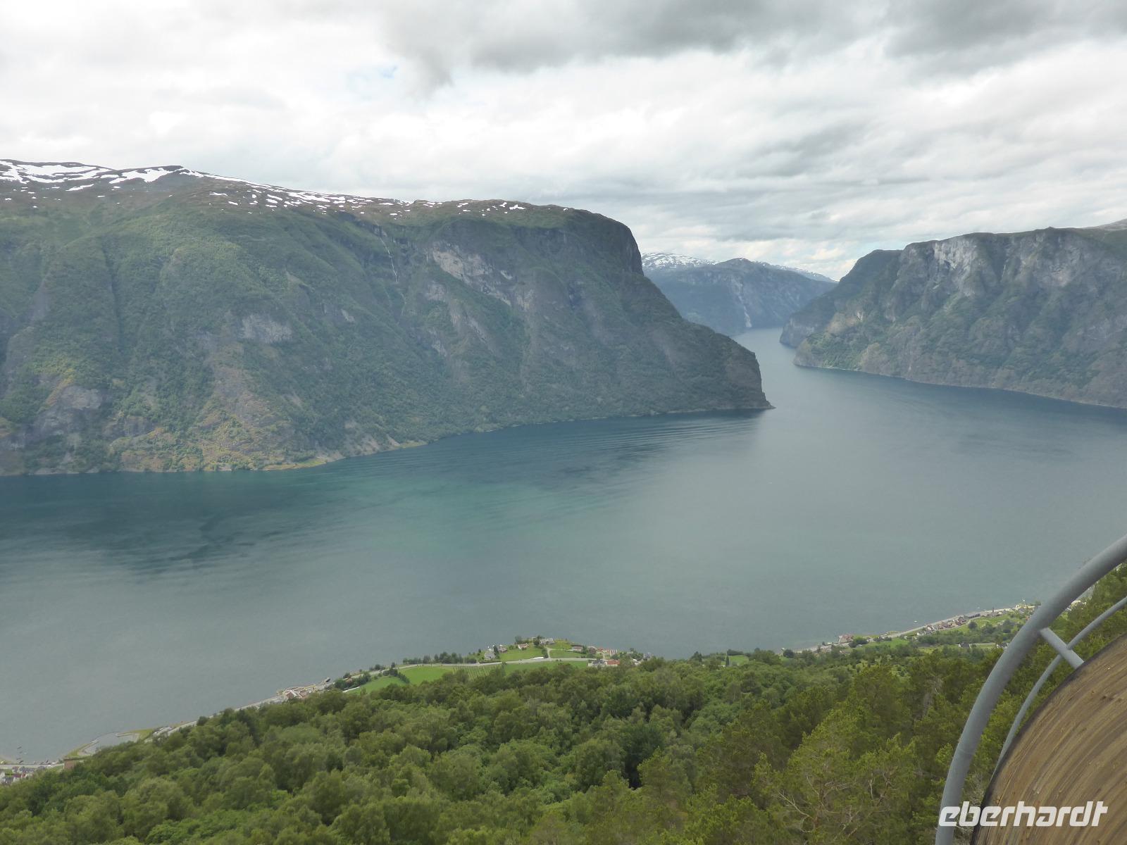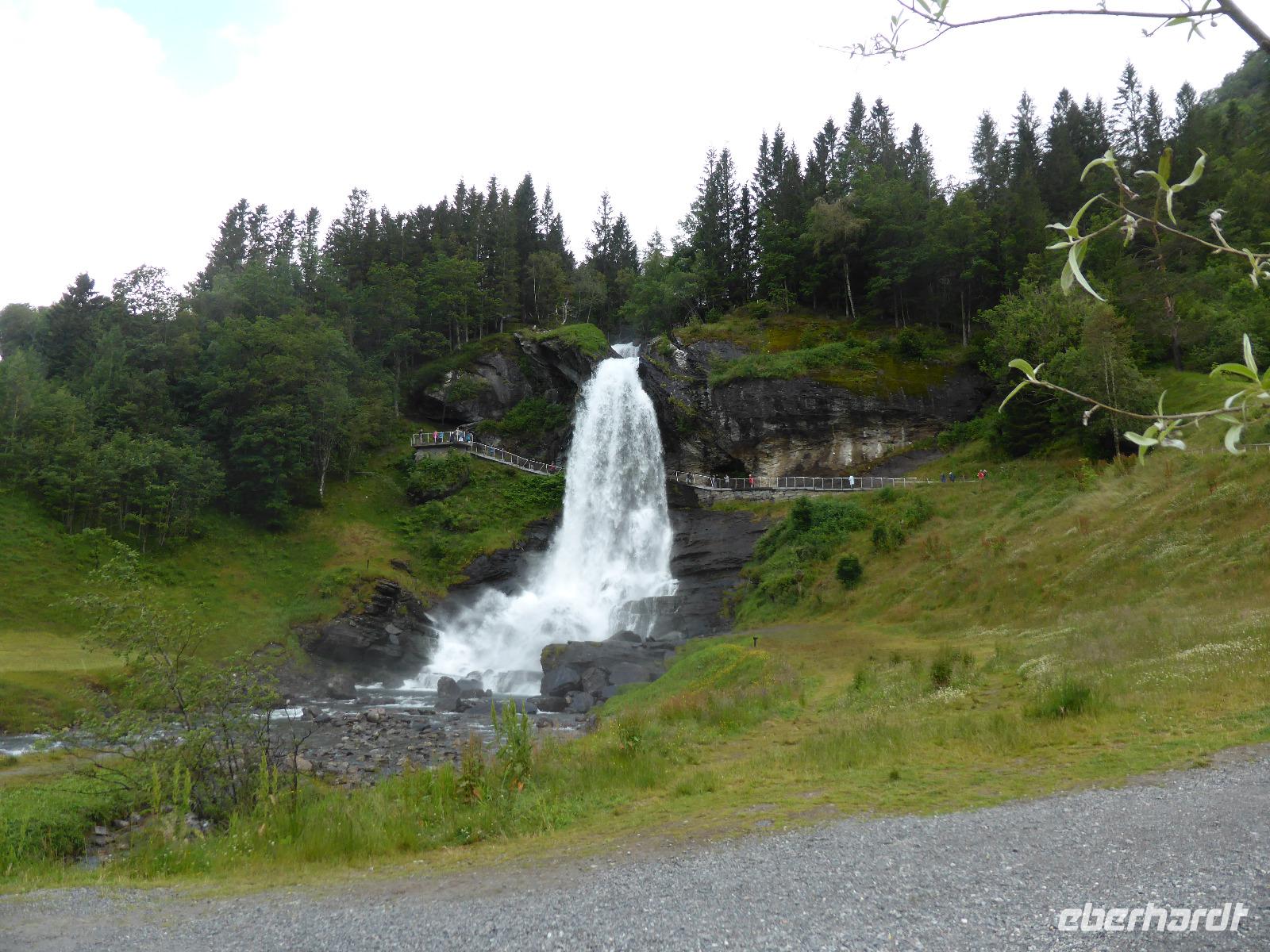 Vorbei an Flam und durch den 11,4 km langen Gudvangentunnel erhielten wir einen Blick auf die berühmte Stahlheimstrasse, die steilste Strasse Norwegens.