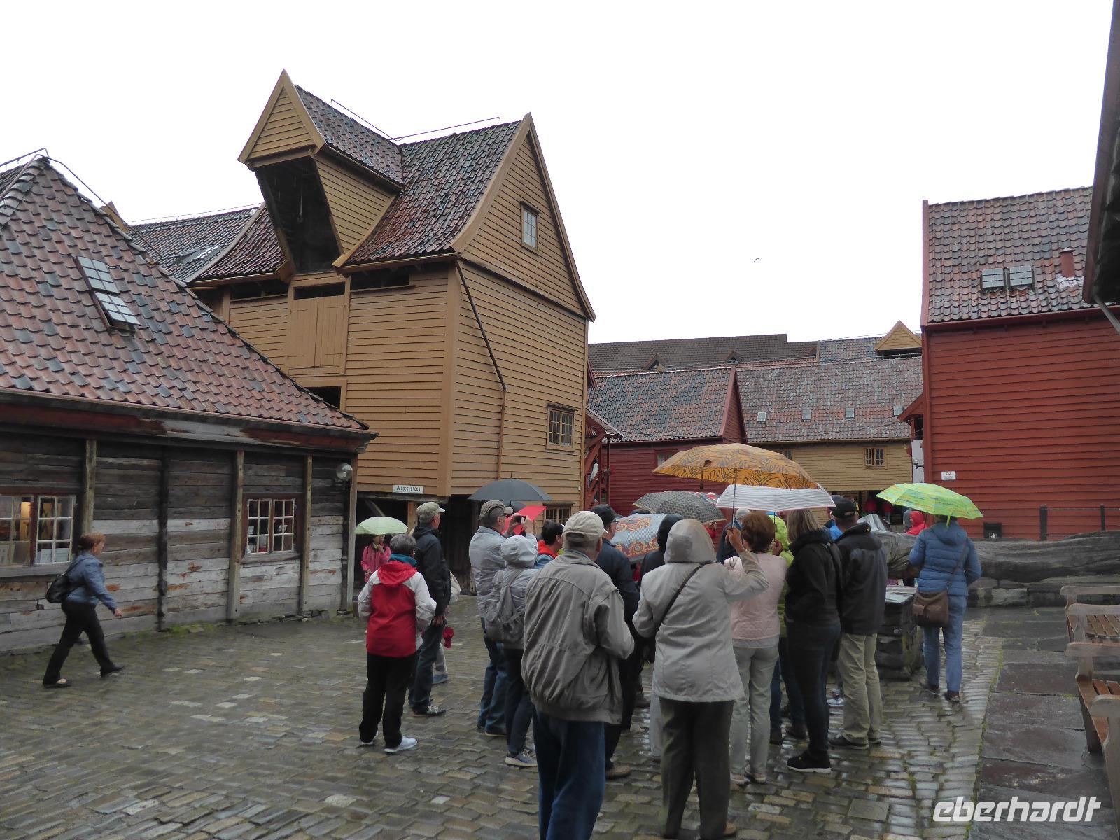 Den Abschluss bildete ein Spaziergang durch die alten Hansehäuser Bryggen. Bergen war aufgrund der Lübecker Kaufleute eine der reichsten und größten Städte Norwegens. Hier wurde vorrangig mit Stockfisch gehandelt. Er erzählte uns viele Dinge über das Leben der Hanseaten.