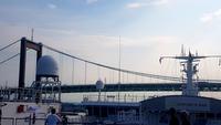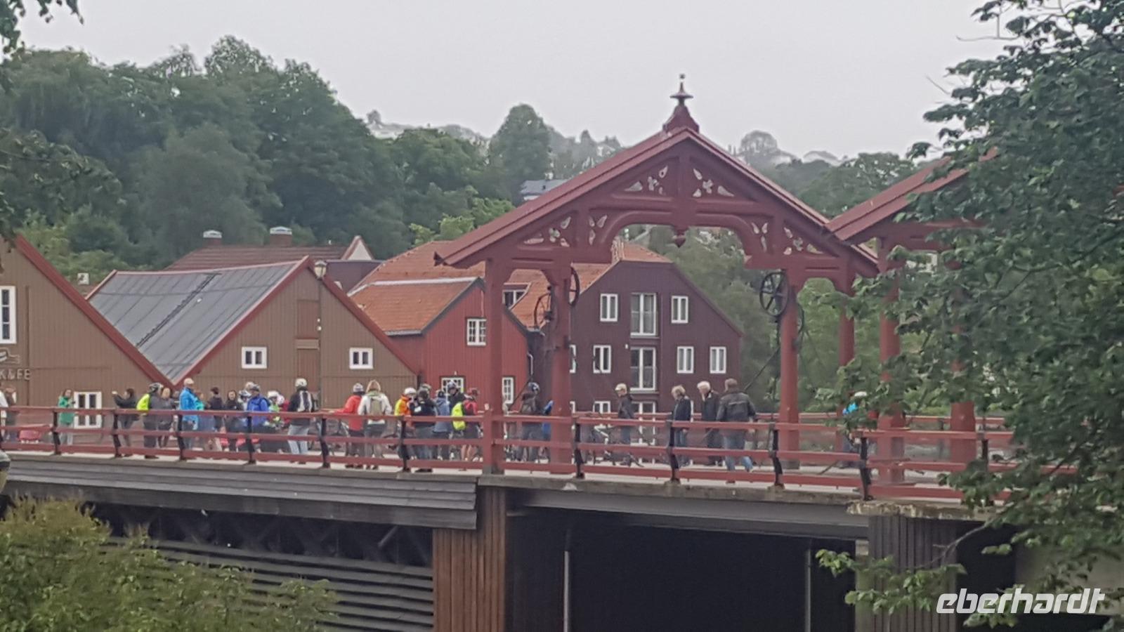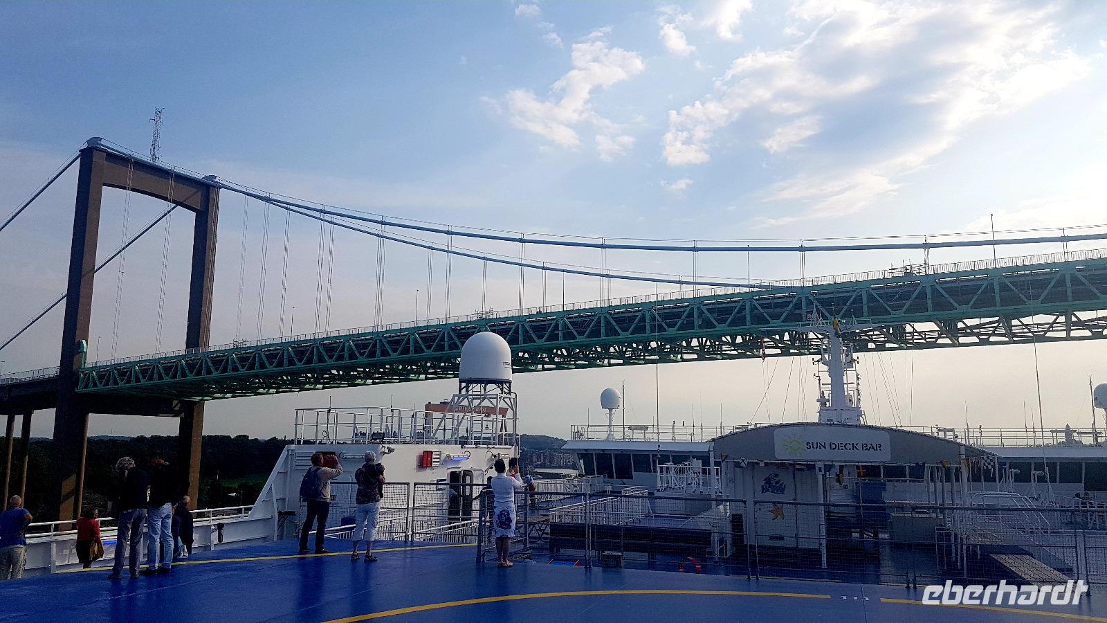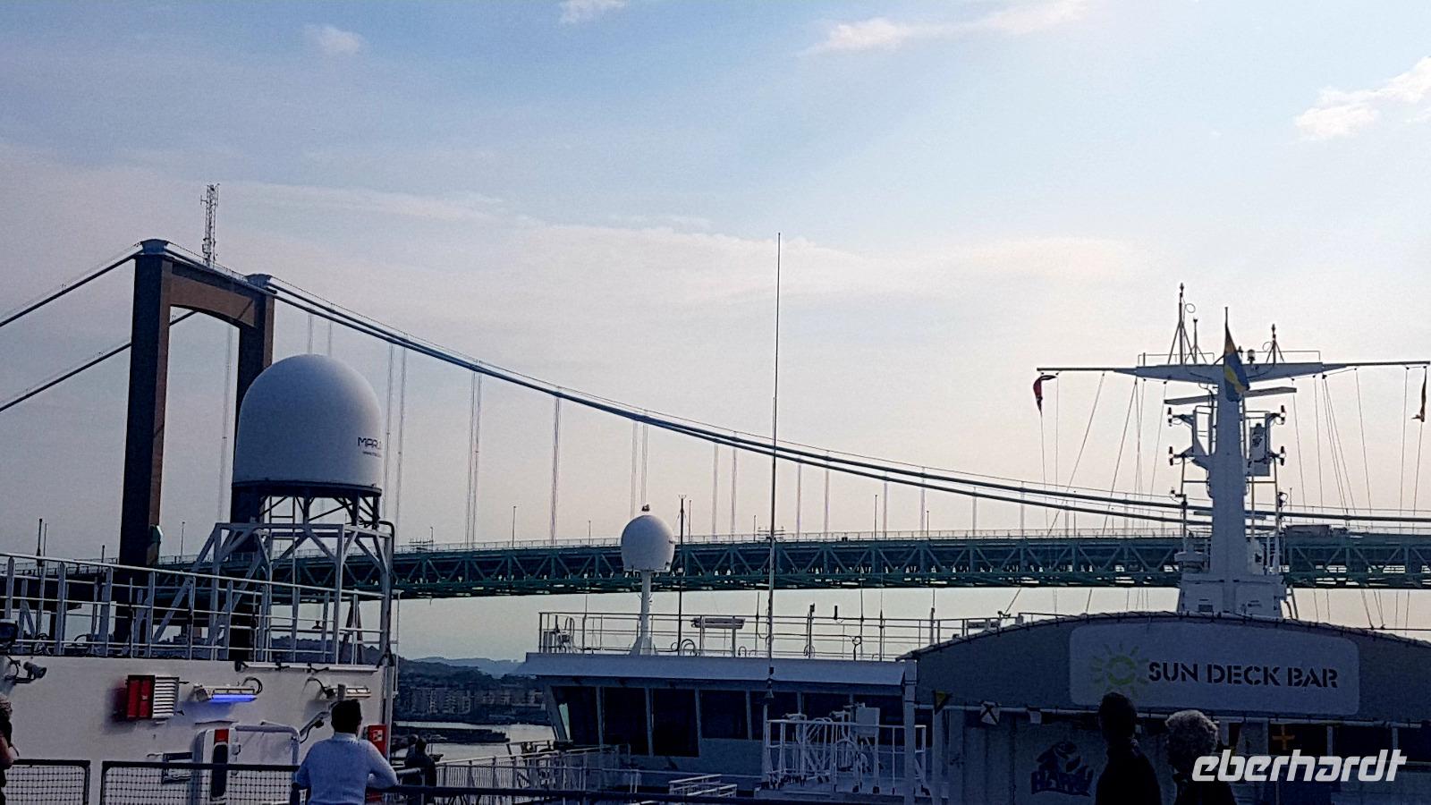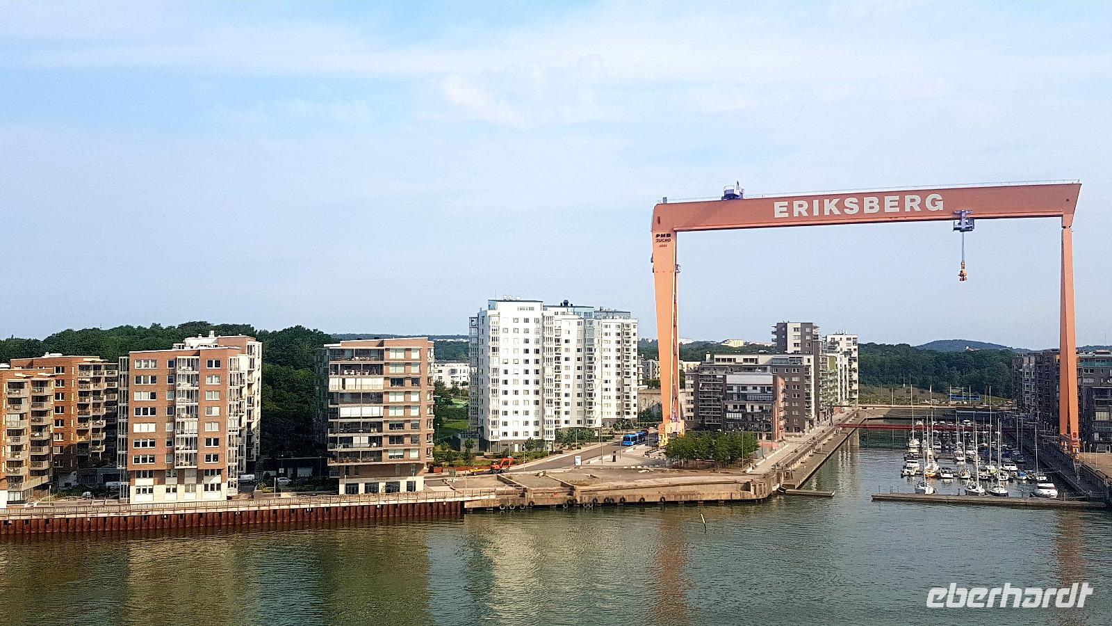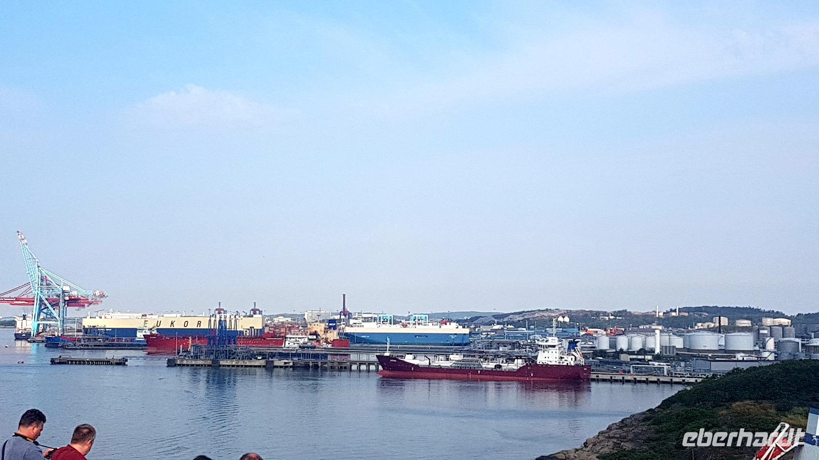 Hängebrücke hindurch, erreichen wir den Hafen von Göteborg.