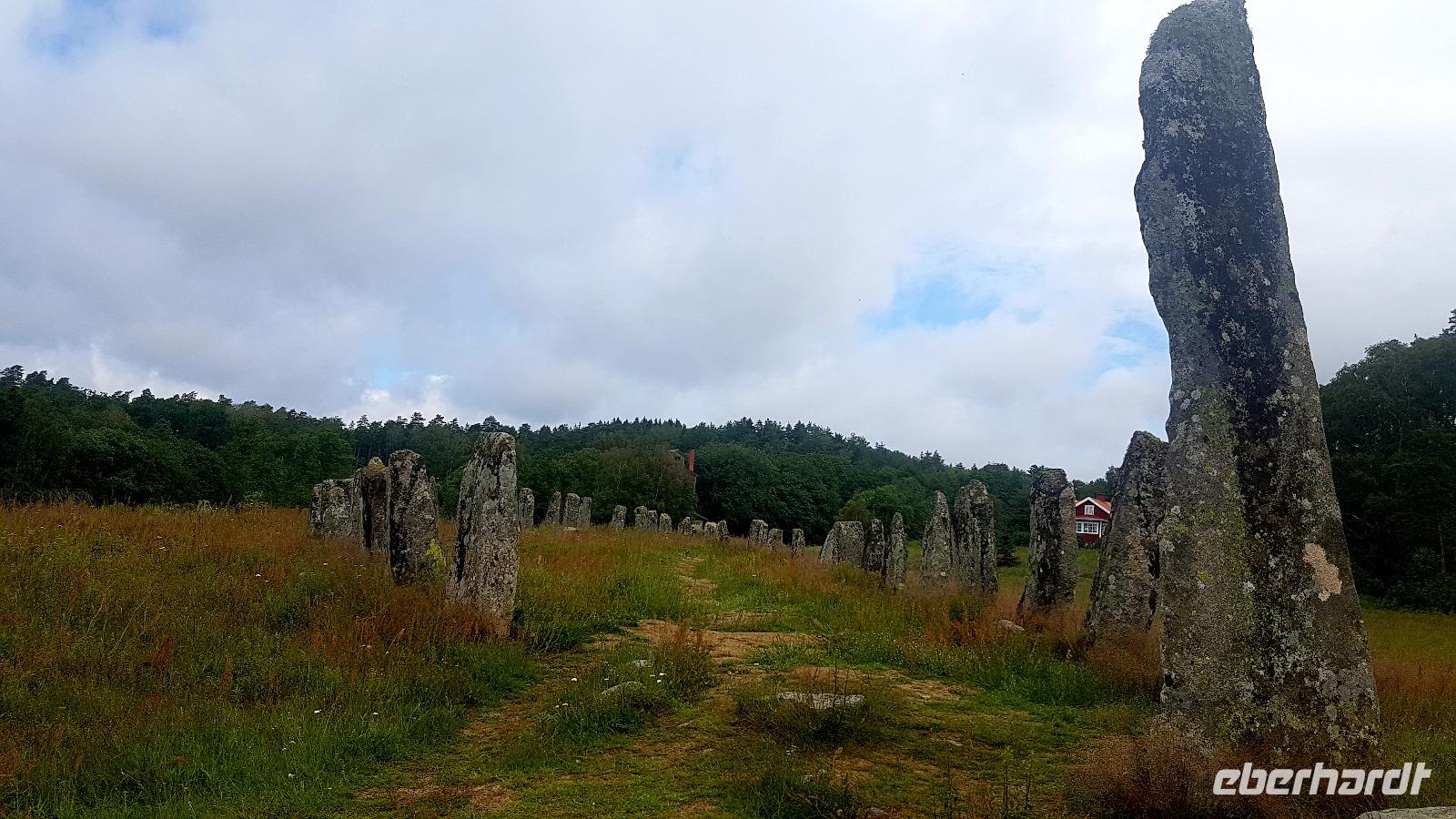 Auf der Europastrasse 6 geht es jetzt mit unserem Bus in Richtung Norwegen. Kurz vor der Schwedisch/Norwegischen Grenze fahren wir von der Europastraße ab und schauen uns die Schiffslegung von Blomberg an. Ein Spaziergang tut uns nach der langen Fahrt gut und wir lernen einen der größten Steinkreise Skandinaviens kennen.
