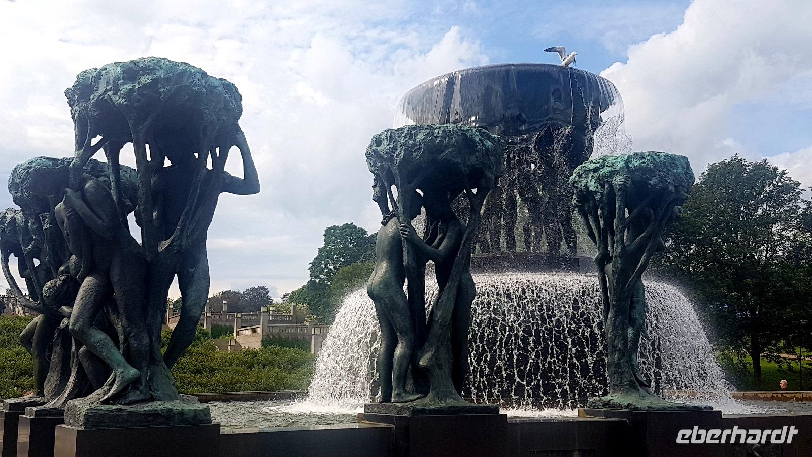 Über die Svinesundbrücke hinweg passieren wir die Grenze zu Norwegen und erreichen Oslo am Nachmittag.Hier wartet bereits Tommy auf uns, der uns seine neue Heimat, die Hauptstadt Oslo bei einer Stadtrundfahrt und einem Spaziergang zeigt. Am Opernhaus, dem neuen noch im Bau befindlichen „Munck- Museum" und dem königlichen Schloß geht es vorbei zum Vigelandpark. Bei einem Spaziergang durch den Park bestaunen wir die Skulpturen von Vigeland und seine Darstellung und Sichtweise vom Leben und dem Miteinander der Menschen.