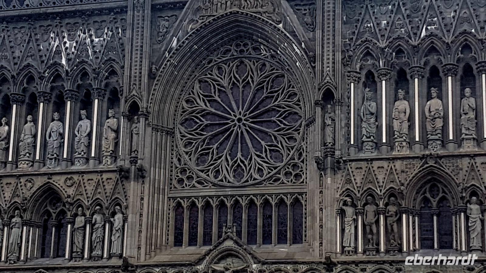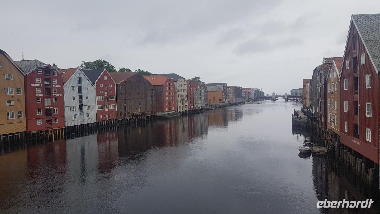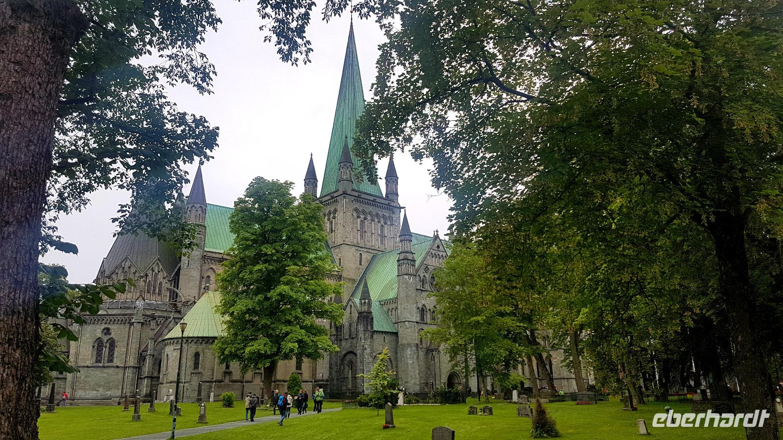 Im Hotel zeugen elf Urkunden davon, dass man hier das beste Frühstück Norwegens bekommt. Wir können uns an diesem Morgen davon überzeugen und genießen es.Erst um 09.30 Uhr spazieren wir an den Lagerhäusern an der Nidelva vorbei zum „Nidaros-Dom, der Krönungskirche ehemaliger norwegischer Könige.