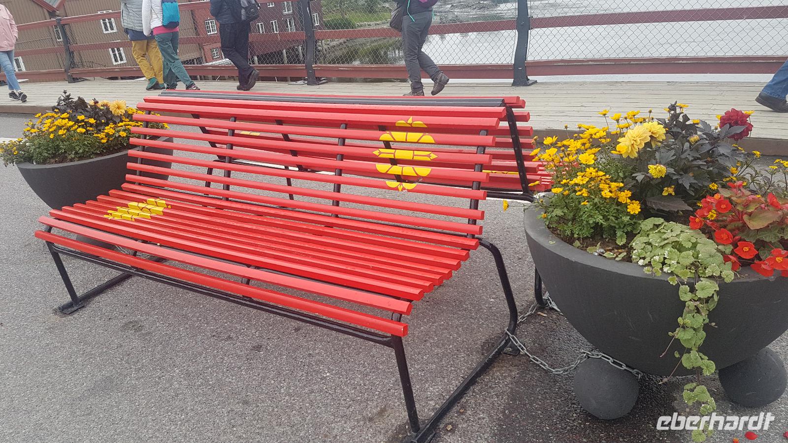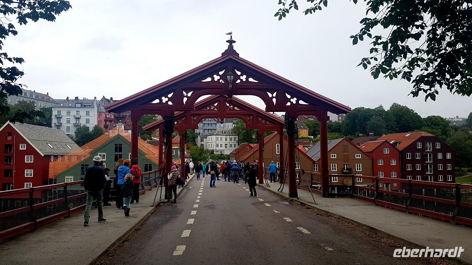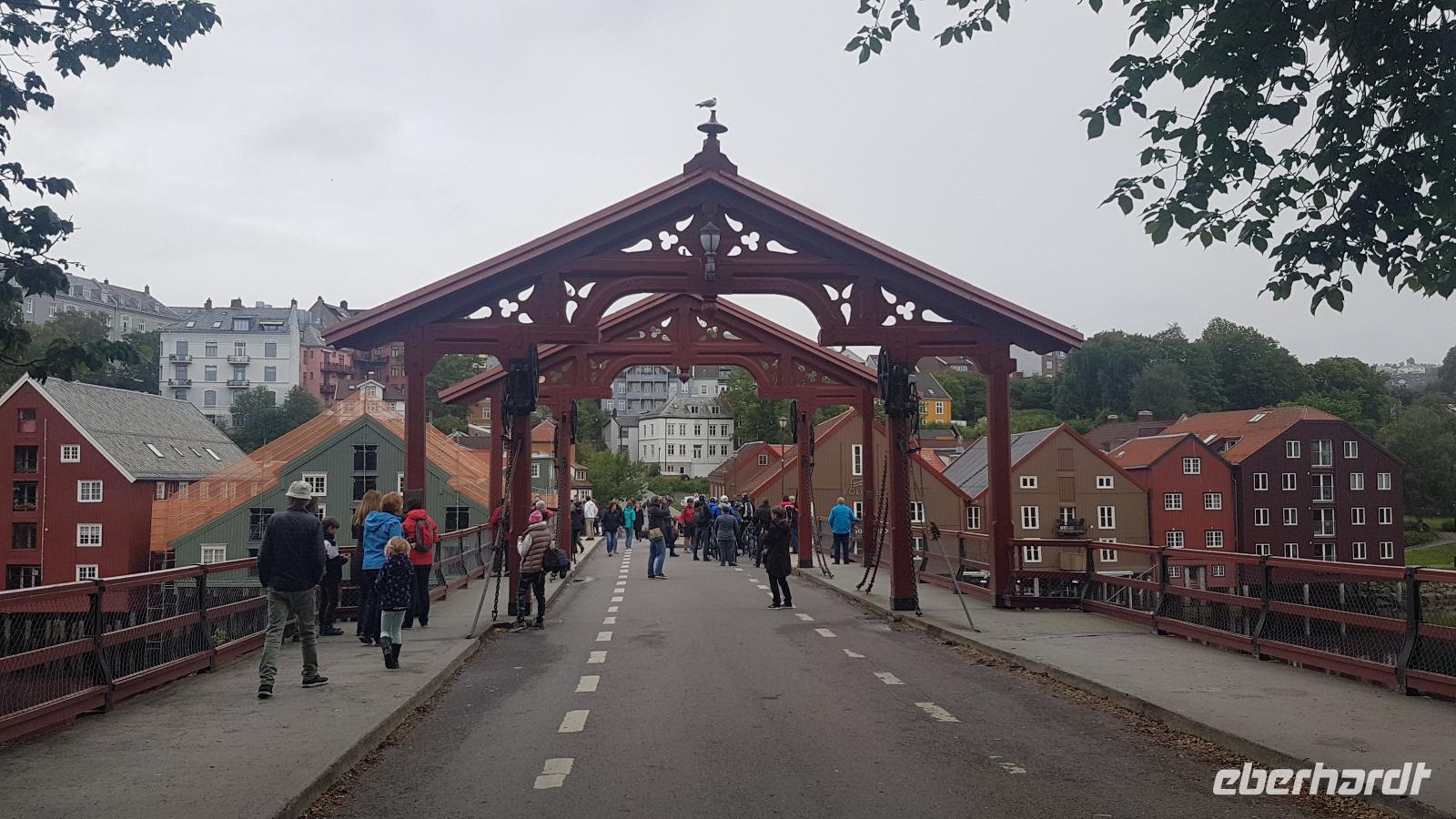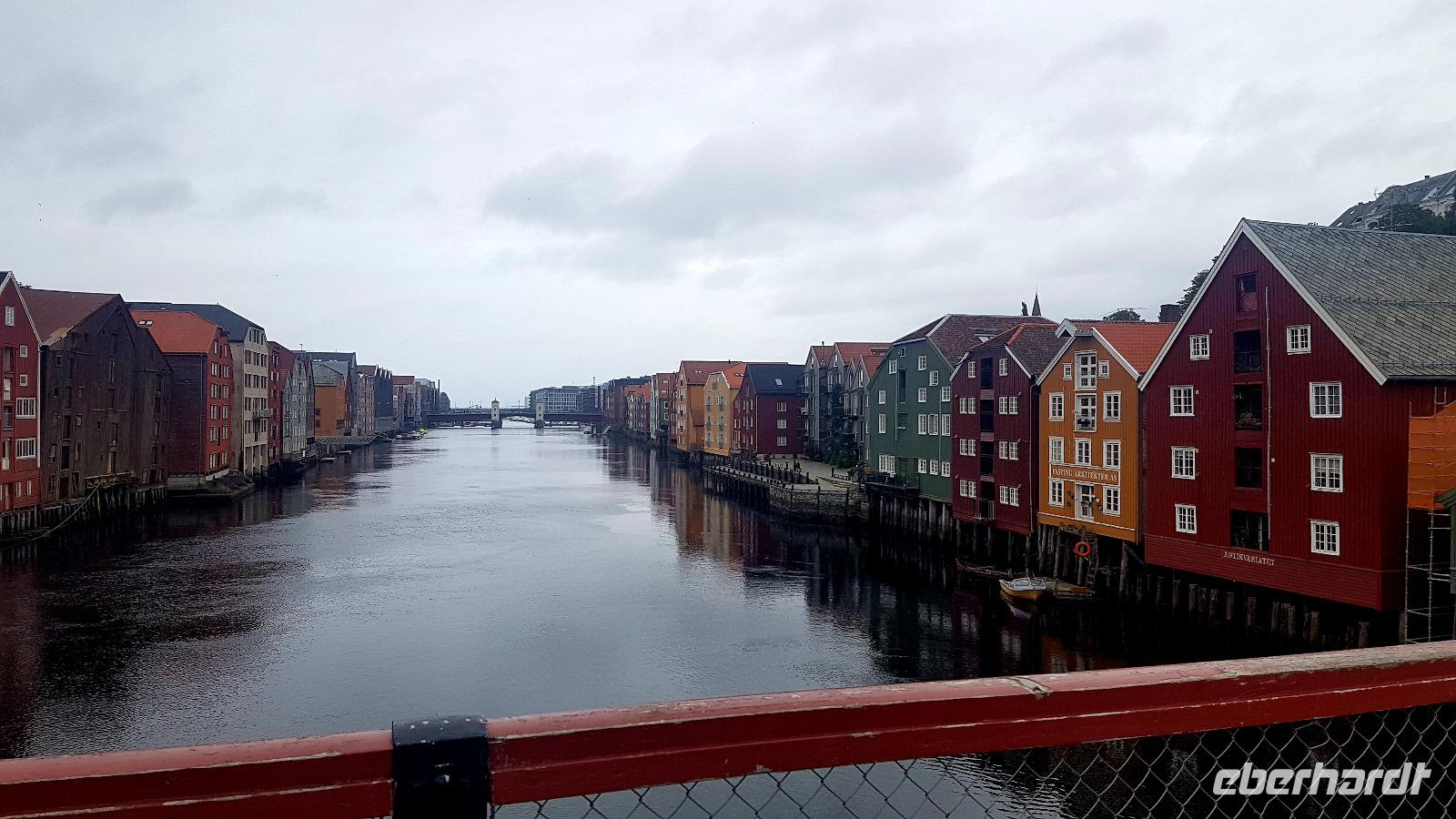 Im Hotel zeugen elf Urkunden davon, dass man hier das beste Frühstück Norwegens bekommt. Wir können uns an diesem Morgen davon überzeugen und genießen es.Erst um 09.30 Uhr spazieren wir an den Lagerhäusern an der Nidelva vorbei zum „Nidaros-Dom, der Krönungskirche ehemaliger norwegischer Könige.