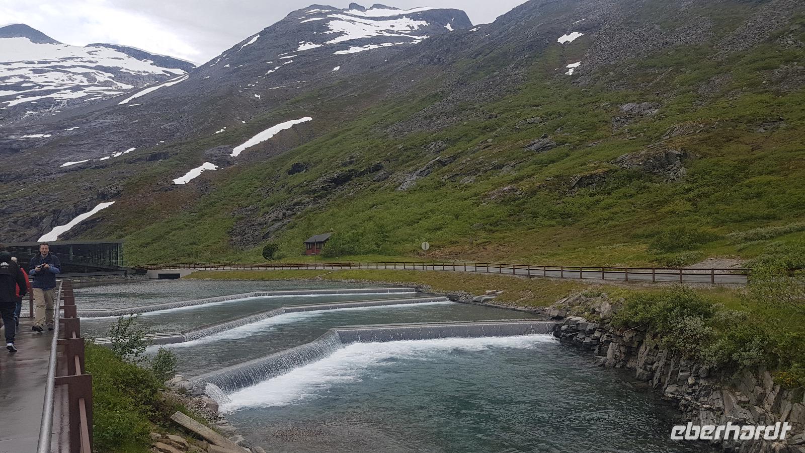 Die ersten Wasserfälle der Reise erleben wir im Gutbrandsdal. An der Stabkirche Ringebu und in Dombas legen wir kleine Rastpausen ein und genießen die An- bzw. Aussicht.
