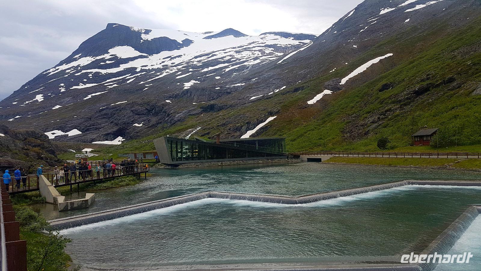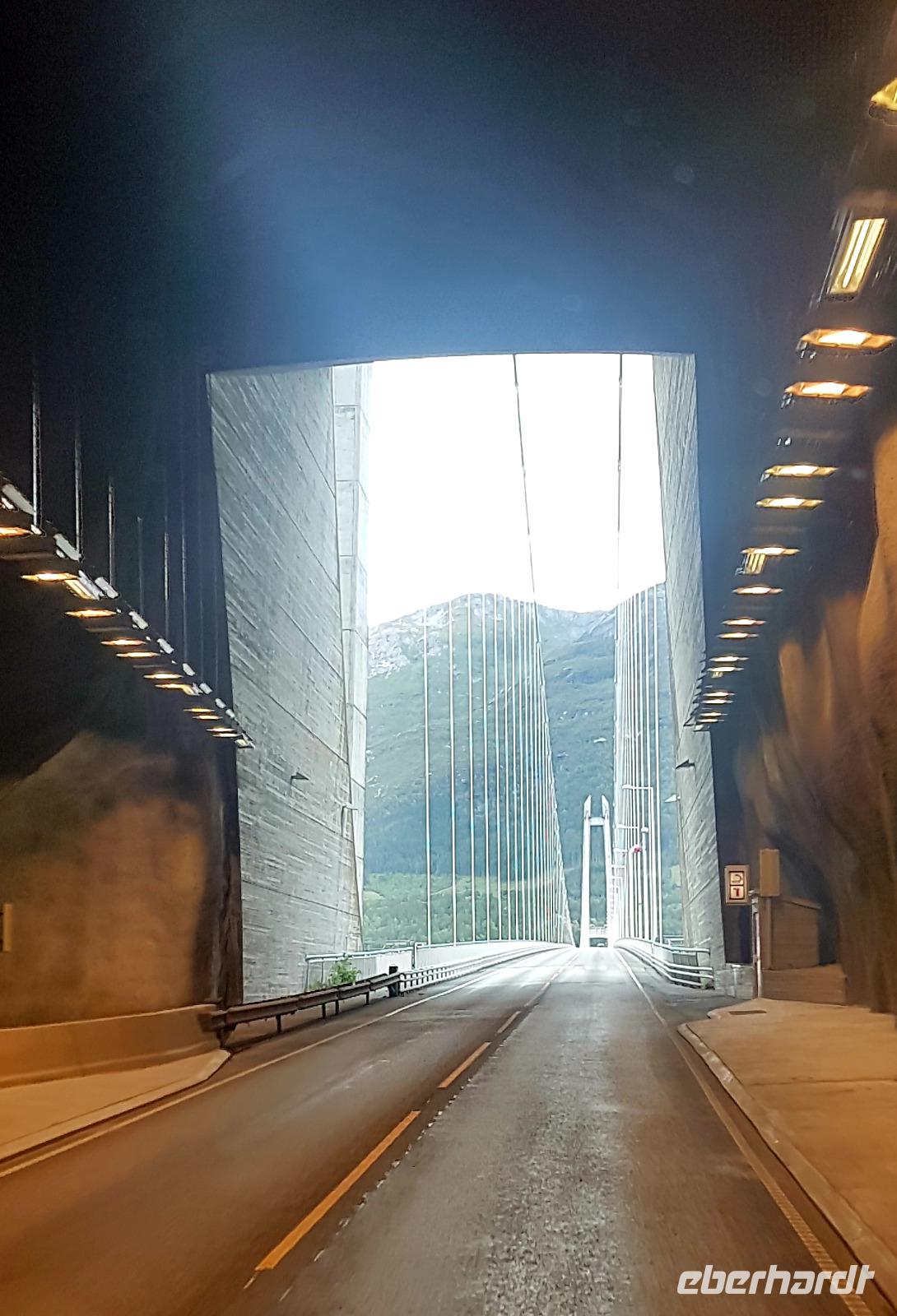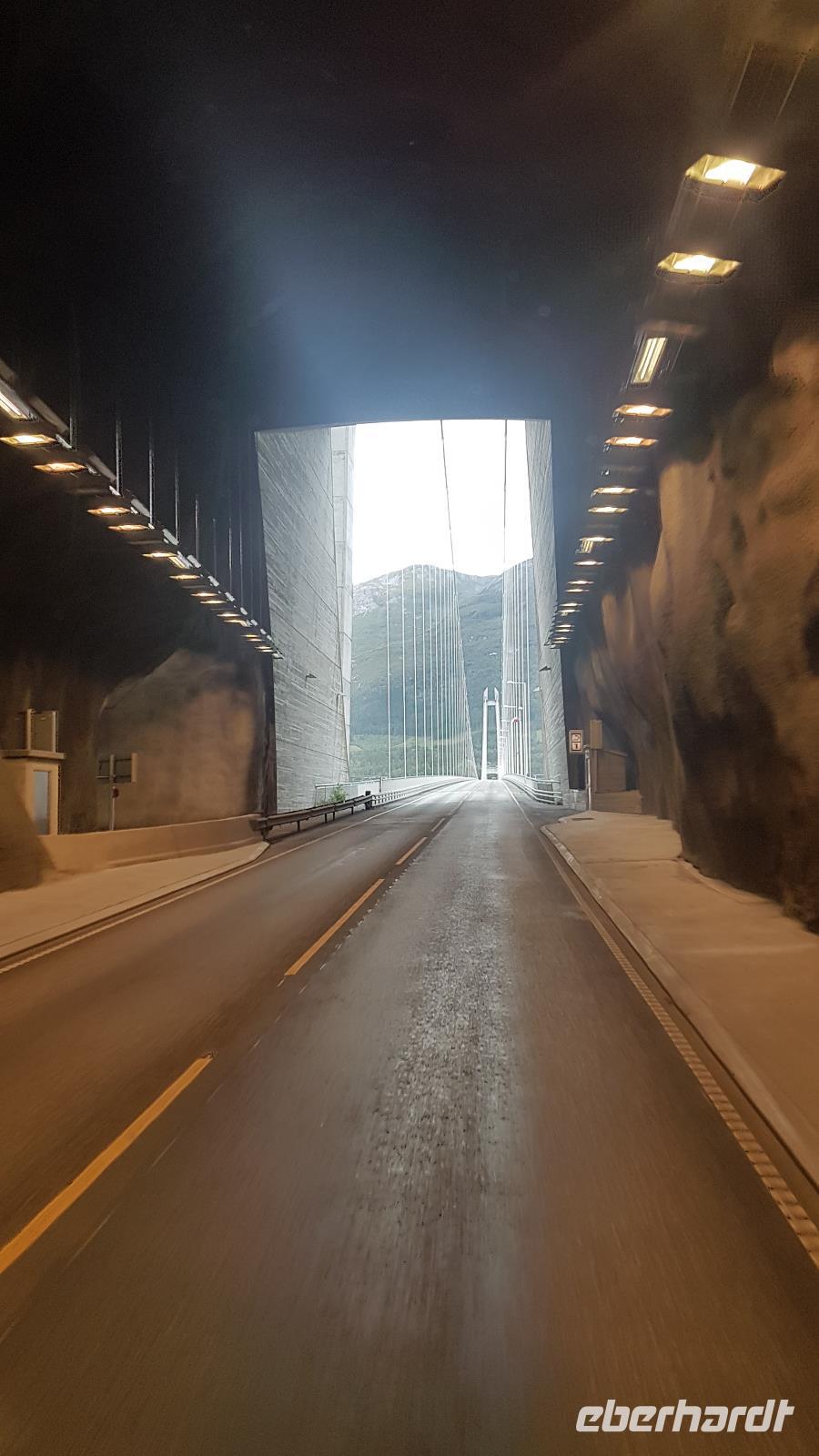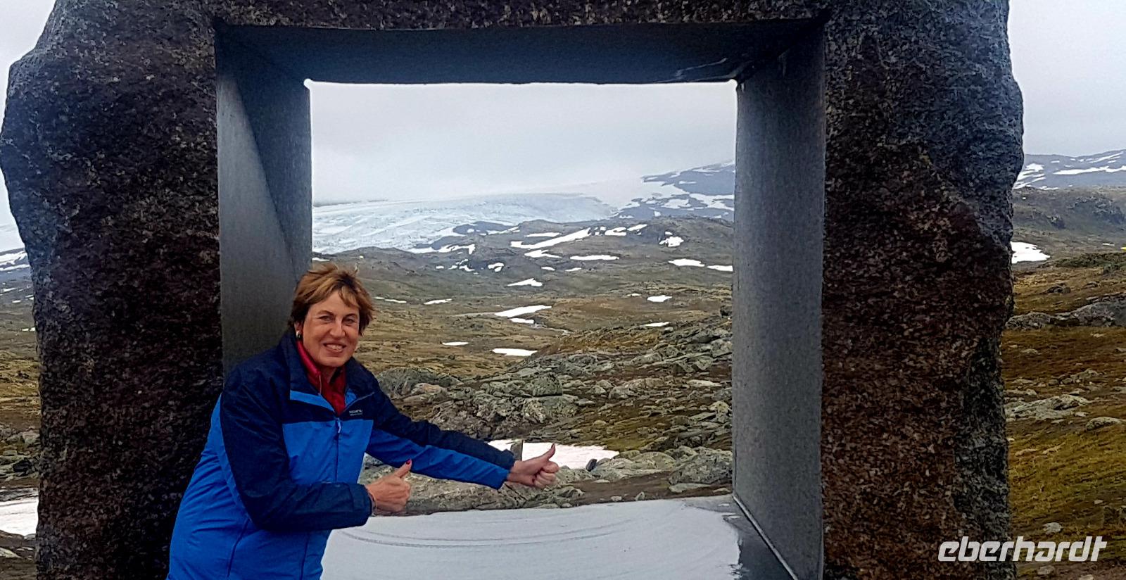 Heute wartet der Nationalpark Jotumheimen auf uns und die "hier lebenden Riesen".Denn genau dies heißt Jotumheimen in der exakten deutschen Übersetzung. In dem Sommerskigebiet am Ort wird auch im Juni für den Langlauf trainiert. Doch trotz des kalendarischen Junis holen wir unsere Mützen heraus. Die 5 Grad Celsius sind heute Morgen dann doch etwas sehr frisch hierzulande. Mehrere Fotostopps im Nationalpark ermöglichen es uns, die über 2.000 m hohen Berge des Sognefjells in Bildern festzuhalten.Wieder unten im Tal, am Sognefjord, erleben wir die typische Fjordlandschaft Norwegens. Nach einer Fährüberfahrt, diesmal mit einer erst im Dezember 2018 in Betrieb genommenen Elektrofähre, geht es anschließend durch den längsten Tunnel Norwegens.