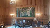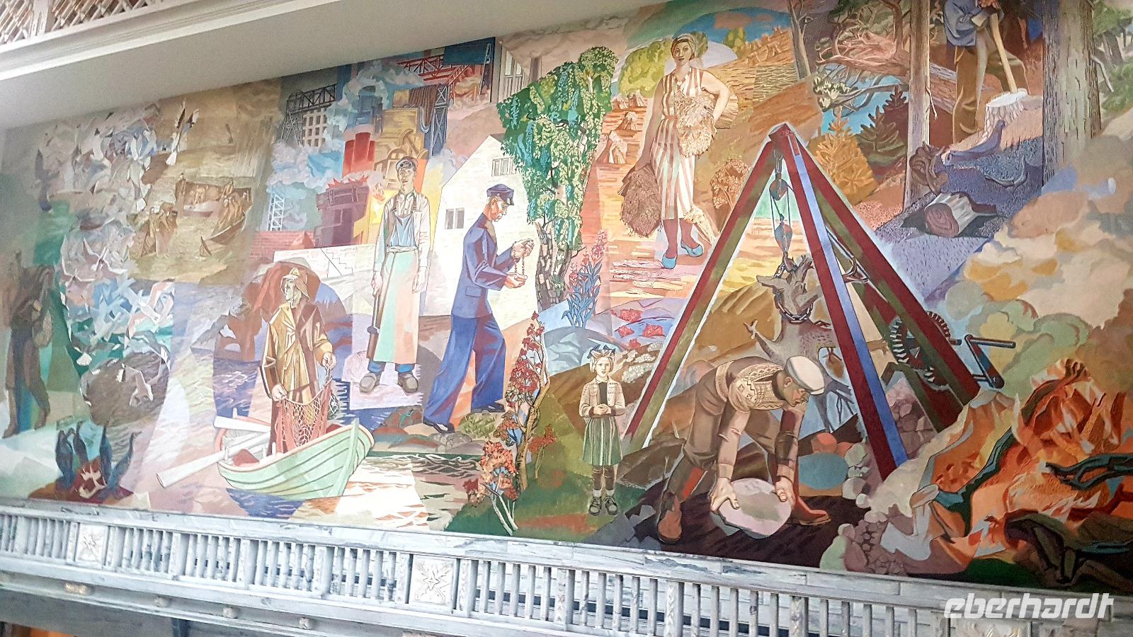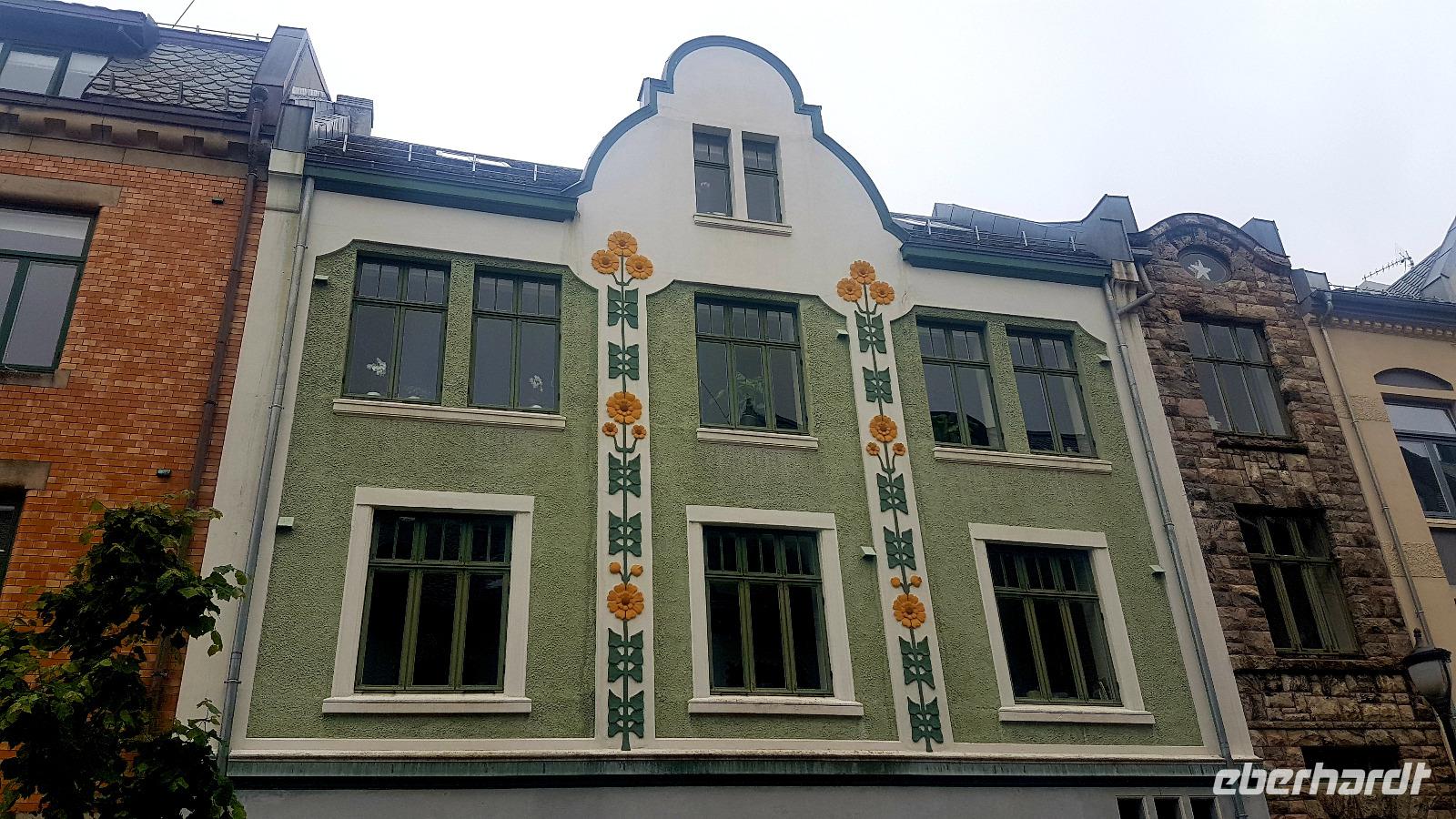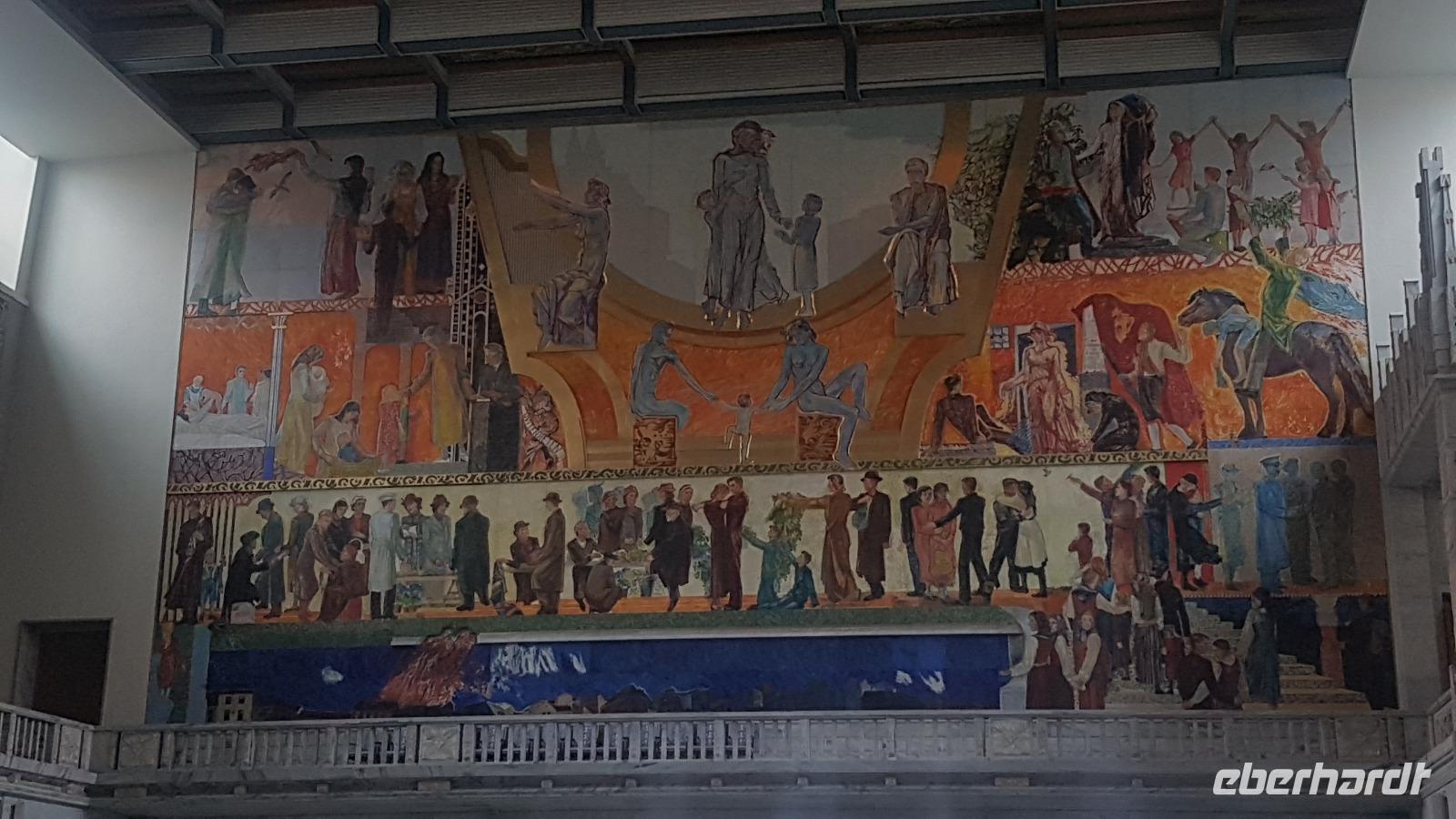 Mit den verbliebenen 15 Gästen schaue ich mir das Rathaus an. Im Hochzeitszimmer können wir einen echten „Munck" bestaunen. Die Malereien an den Wänden der anderen Räumlichkeiten zeigen das Leben der Norweger bei Arbeit und Freizeit, die Bedeutung der Familie und der Natur.