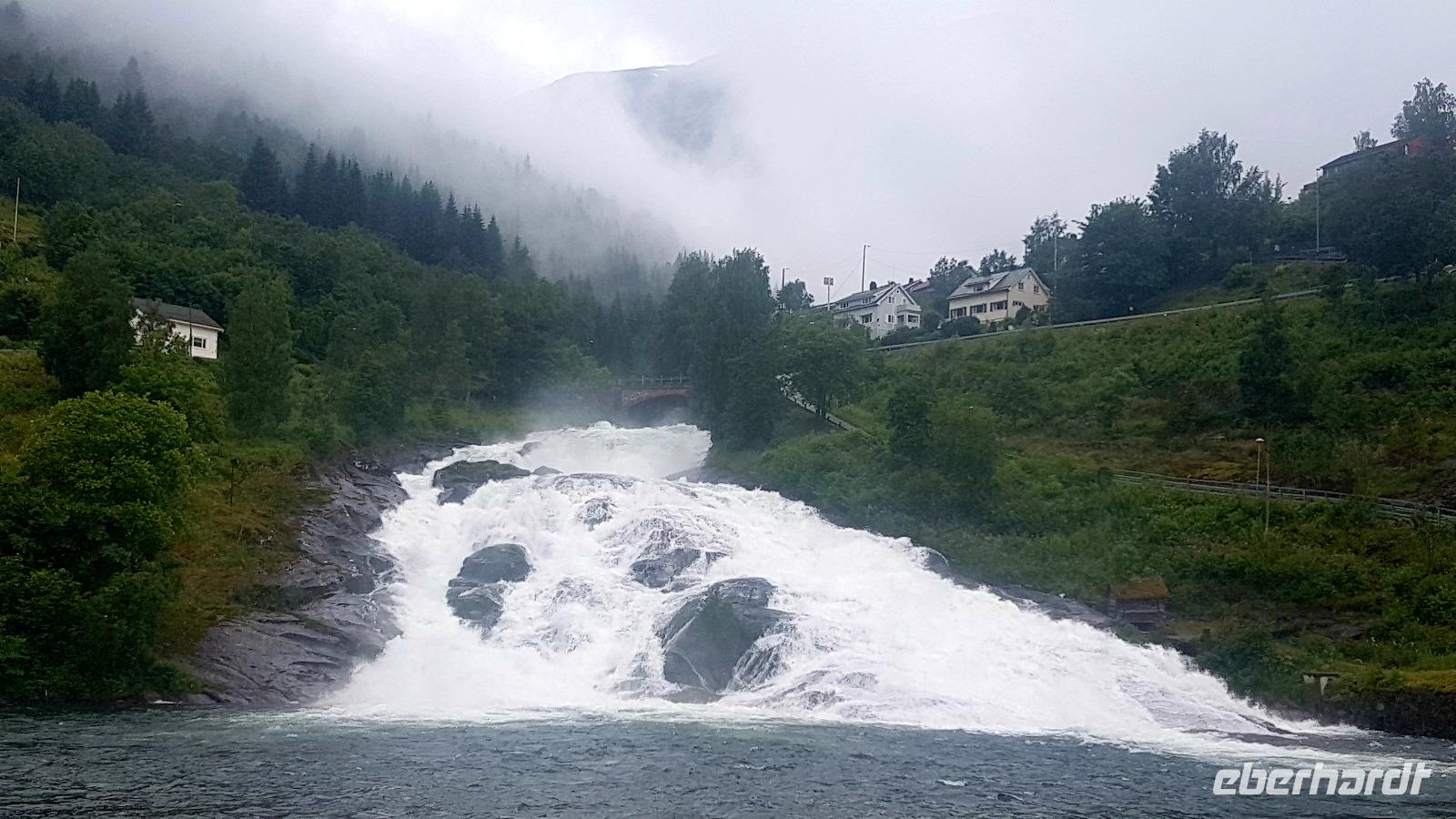 Am Ort Gutvangen und dem im nächsten Tal befindlichen Tvindefossen vorbei, kommen wir