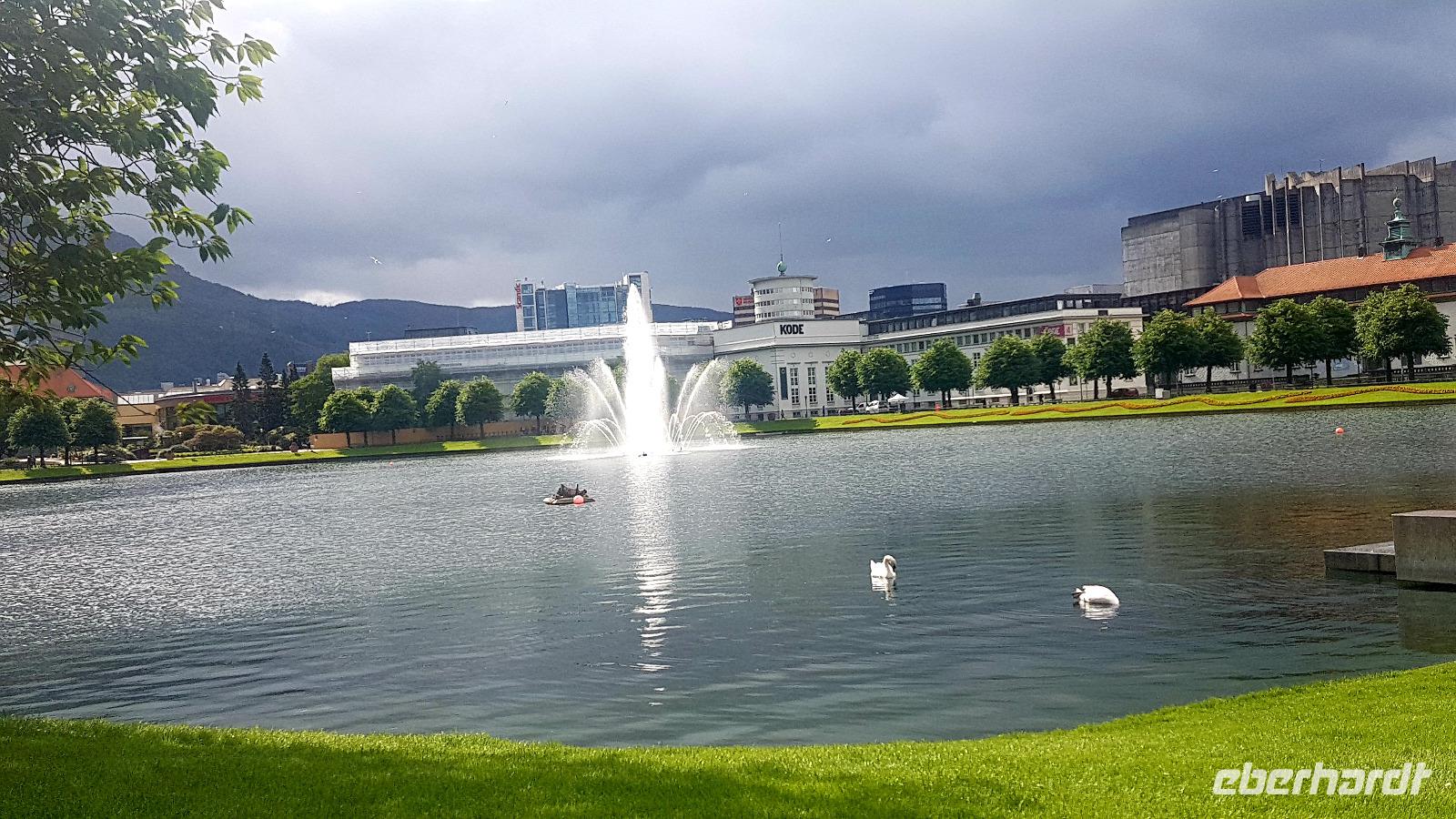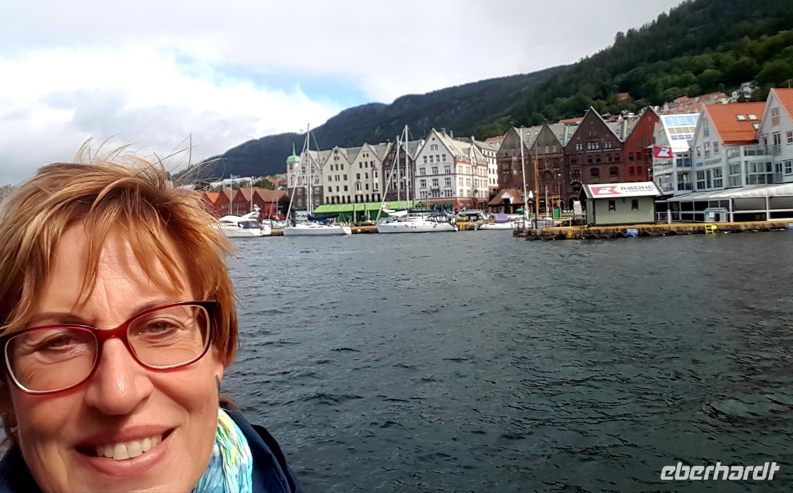 Bei einer Stadtführung mit unserem Guide Angelika erleben wir einen spannenden Rundgang durch die Stadt ohne „Niederschlag". Bergen als regenreichste Stadt Norwegens zeigt sich heute von ihrer besten Seite. Wir erleben neben den bekannten Sehenswürdigkeiten wie das Hanseviertel Brygge und den Fischmarkt, die typischen engen Gassen mit ihren Holzhäusern.Den Rest des Tages kann jeder die Stadt Bergen auf eigene Faust erkunden. So bleibt die Gelegenheit mit der Zahnradbahn auf den Hausberg, den „Fløyen", zu fahren um einen Rundblick über die Stadt zu erhalten. Des Weiteren laden eine Reihe Museen zur Erkundung ein oder man genießt einfach nur das Flair der Straßenmusik in der Stadt. Ein eben solches Festival findet derzeit hier statt und erfüllt die Straßen mit musikalischem Leben.