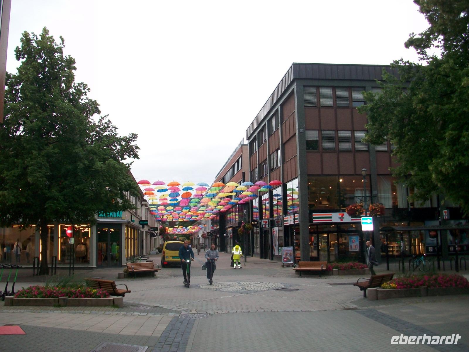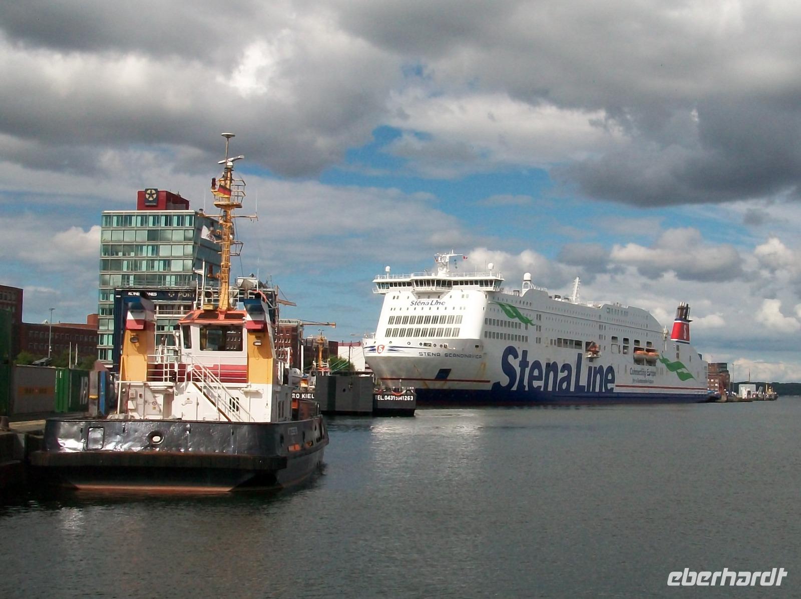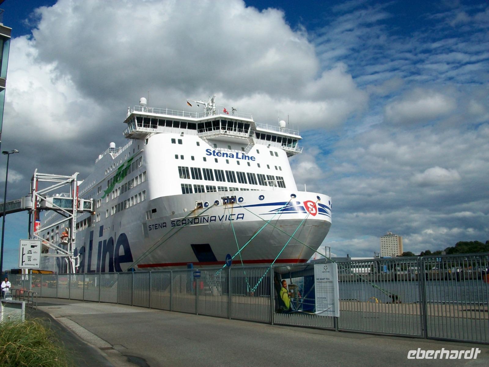 Am Leipziger Flughafen ist unsere Reisegruppe schon fast komplett und weiter geht es. Wir sind bald in Brandenburg unterwegs, überqueren die Havel bei Potsdam und gelangen am Rand von Berlin vorbei nach Mecklenburg. Weit dehnen sich die Felder aus; einiges ist schon abgeerntet und bei recht passablem Wetter nähern wir uns mehr und mehr der Küste an. Bald macht sich der Großraum von Kiel bemerkbar; der Verkehr wird dichter und wir gelangen ins Zentrum. Noch einmal rechts abbiegen und vor unseren Augen taucht die „Stena Scandinavica" auf, dieses beeindruckende Schiff wird uns über Nacht nach Göteborg bringen. Doch zunächst können wir weitere Gäste, die hier schon auf uns warteten, begrüßen und da bis zum Ablegen der Fähre noch etwas Zeit verbleibt, genehmigen wir uns einen Stadtbummel in Kiel.
