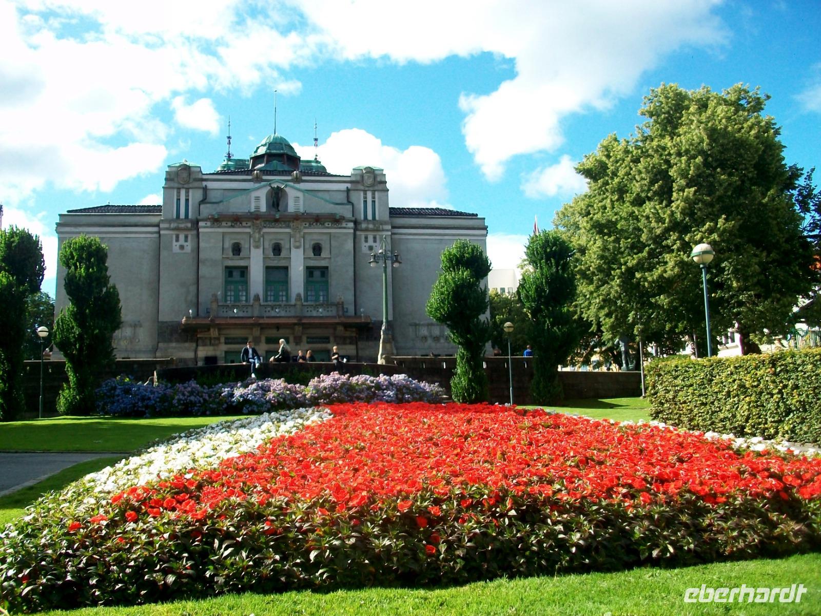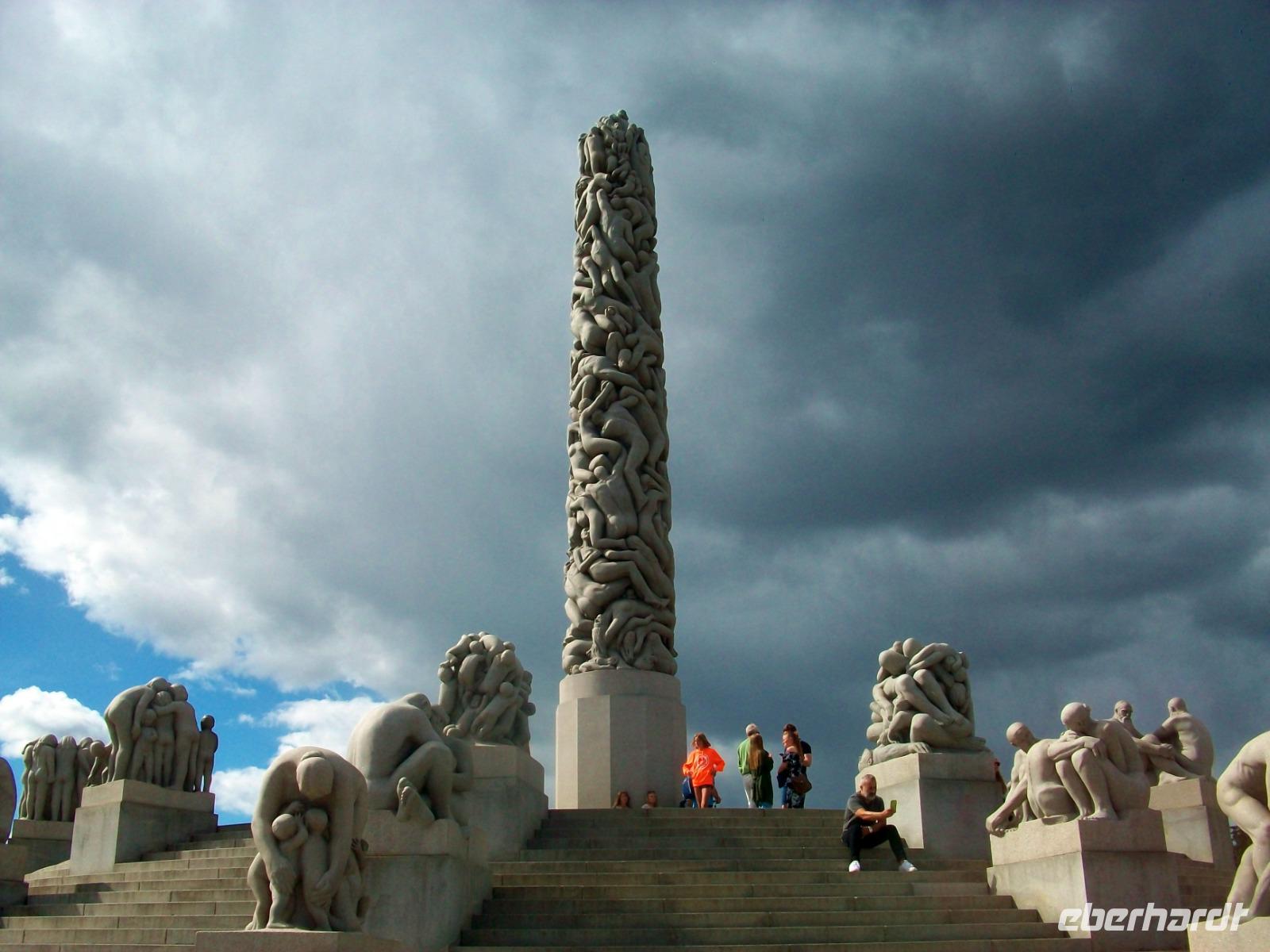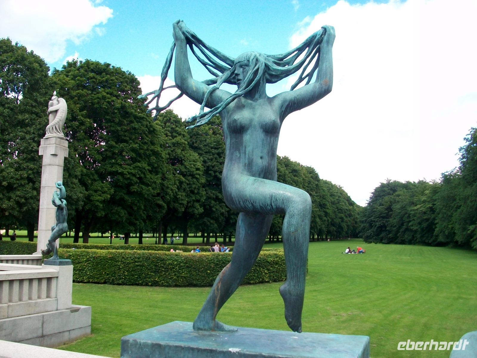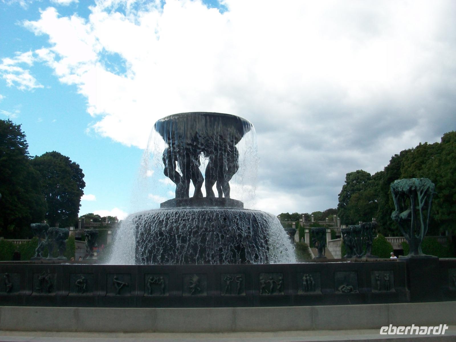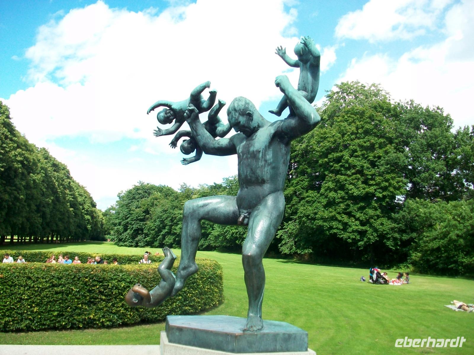 Dann verlassen wir die Fähre; unten erwartet uns schon Roy mit dem Bus. Nun liegt eine gute Strecke vor uns; zunächst geht es ein ganzes Stück durch Schweden und wir genießen vom Bus aus die liebliche Landschaft die an den Busfenstern vorbeizieht. Unsere Mittagspause legen wir schon auf norwegischem Boden ein um danach Kurs auf Oslo zu nehmen. Petrus ist uns auch weiterhin hold und so gelangen wir störungsfrei zum Treffpunkt mit unserer Stadtführerin im Zentrum der Stadt. Oslo hat einiges zu bieten: Wir sehen das sehr moderne Opernhaus, gelangen durch das nette Zentrum mit Fußgängerzone, Schloss und den sehr gepflegten Bürgerhäusern. Die weitere Fahrt führt uns nun zu einer ganz großen Attraktion dieser Stadt. In einem weitausladenden Park sehen wir zahlreiche Skulpturen welche uns der Bildhauer Gustav Vigeland hinterließ und staunen über die lebensechte Darstellung, dabei lauschen wir den Erklärungen unserer Führerin die uns die Symbolik dieser Gruppen erklärt. Leider vergeht hier die Zeit viel zu schnell, bald müssen wir uns aufmachen denn bis Lillehammer haben wir noch einen weiten Weg vor uns, wir werden am Ende der Reise für Oslo noch etwas mehr Zeit haben.