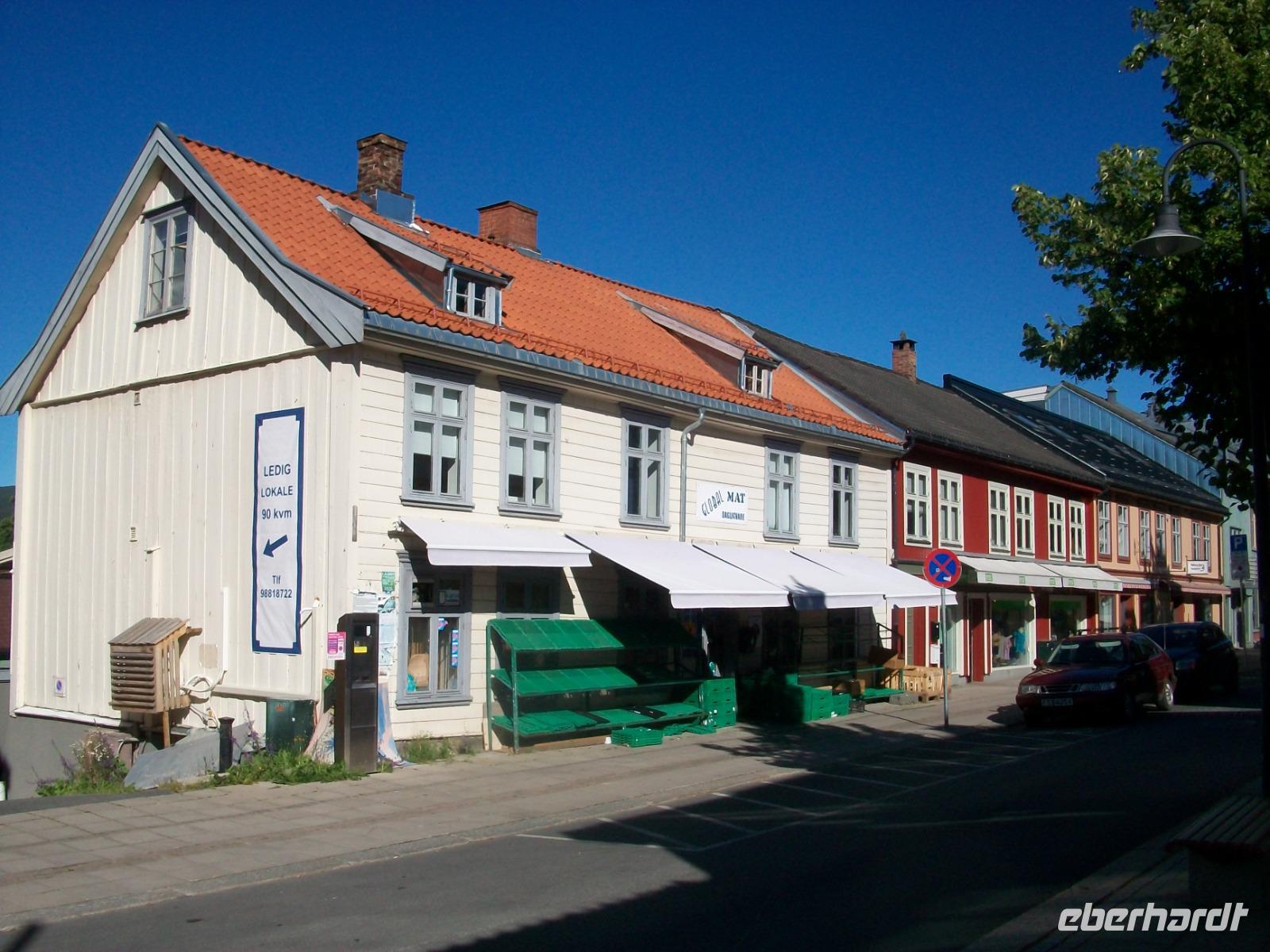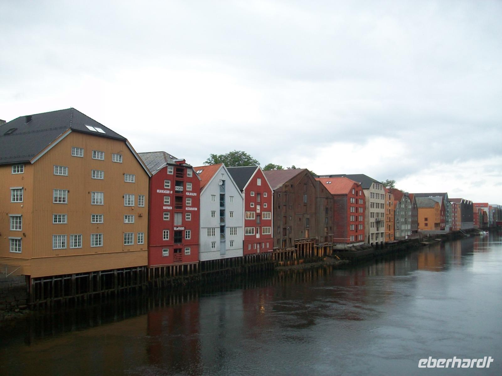 Der Weg in das Zentrum von Trondheim ist nicht weit; mit dem Bus gelangen wir zum Dom und hier gönnen wir uns erst einmal ein gutes Stündchen Zeit für eigene Entdeckungen. Der Weg führt hinunter zum Fluss und hier bewundern wir die alten Speicherhäuser wie sie vielfarbig und windschief auf Holzbalken im Wasser stehen. Das Zentrum selbst hat ein modernes Gesicht, aber das hat auch seinen Reiz.
