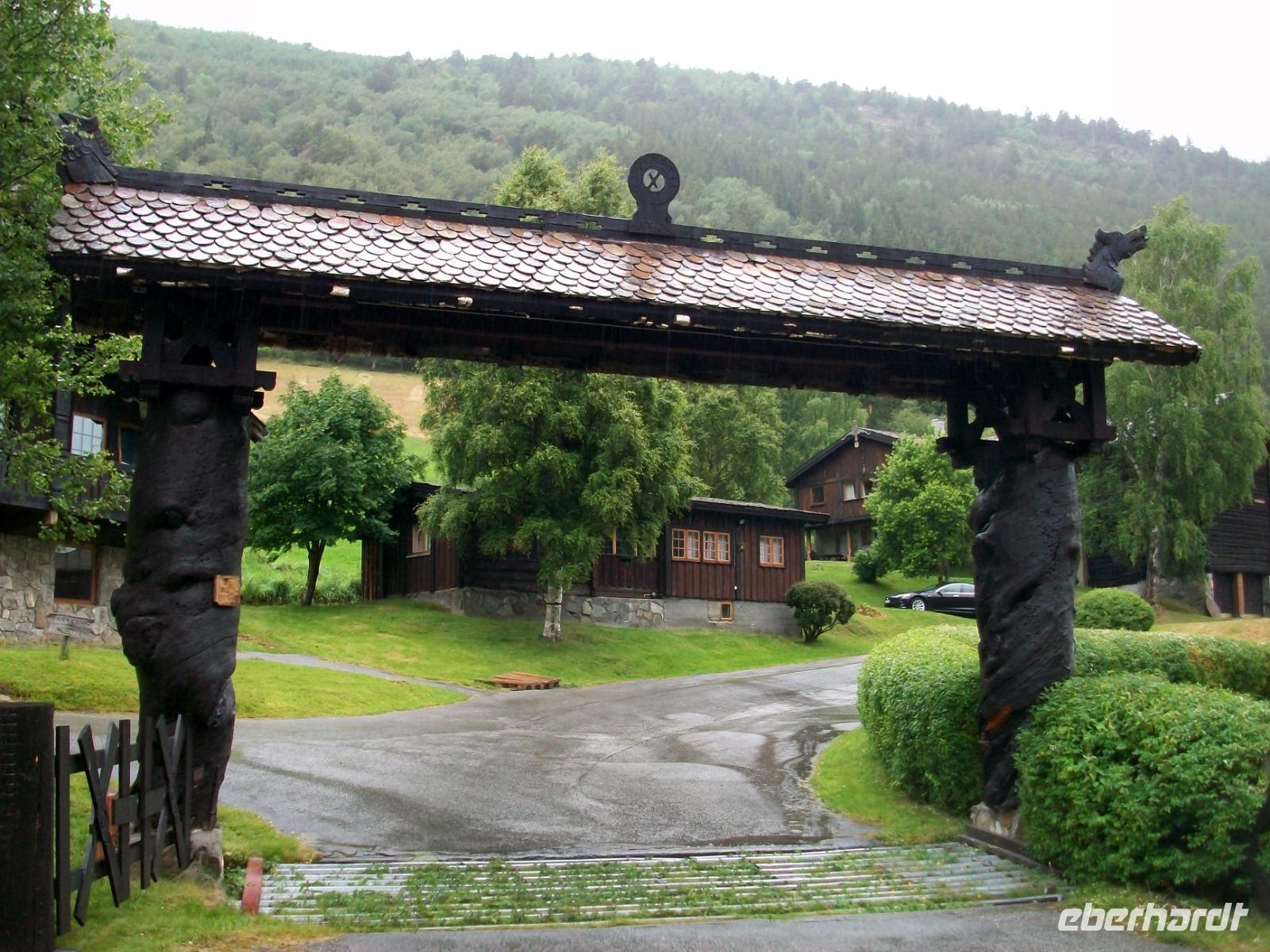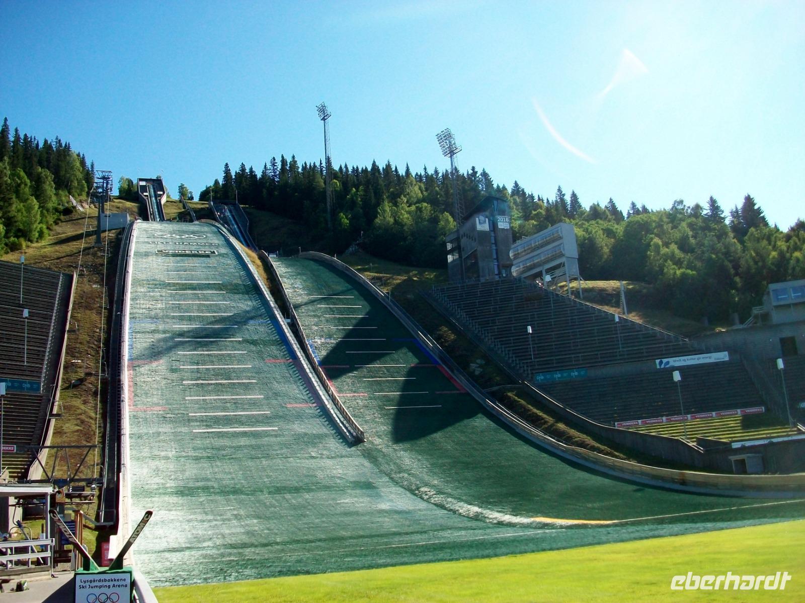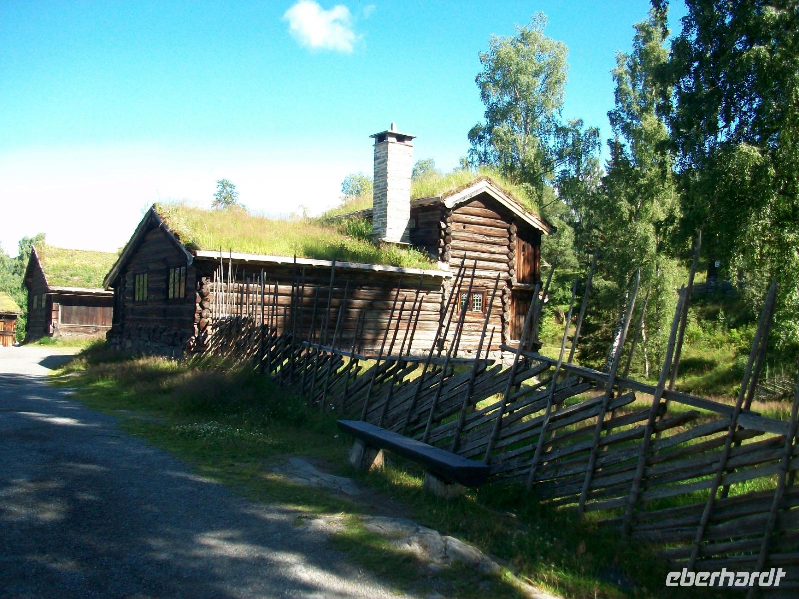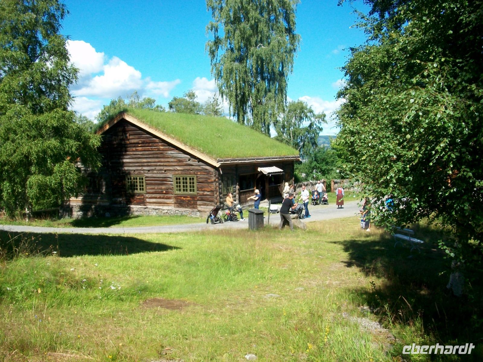 23.7.2020. Uns kitzelt die Sonne den Schlaf aus den Augen, das reichhaltige Frühstücksbuffet gibt uns die erste Stärkung des Tages und gegen neun machen wir uns wieder auf um einen weiteren schönen Tag zu genießen. Lillehammer ist heute noch geprägt von den Ereignissen der Olympischen Winterspiele welche hier 1994 stattfanden. Unser Weg führt uns an diesem sonnigen Vormittag daher auch hinauf zu den Schanzen. Diese Anlage ist mit Matten präpariert und einige der bekannten norwegischen Springer absolvieren an diesem Vormittag ihr Training. Das ist ein erster großer Höhepunkt des Tages und danach gelangen wir in wenigen Minuten zum Freiluftmuseum in Maihaugen. Diese schöne Anlage schuf einst der Zahnarzt Sandvig und wir gönnen uns ein Stündchen Bummel in diesem Dorf, sie kommt einer Zeitreise gleich. Gegen Mittag verlassen wir aber das gastliche Lillehammer.