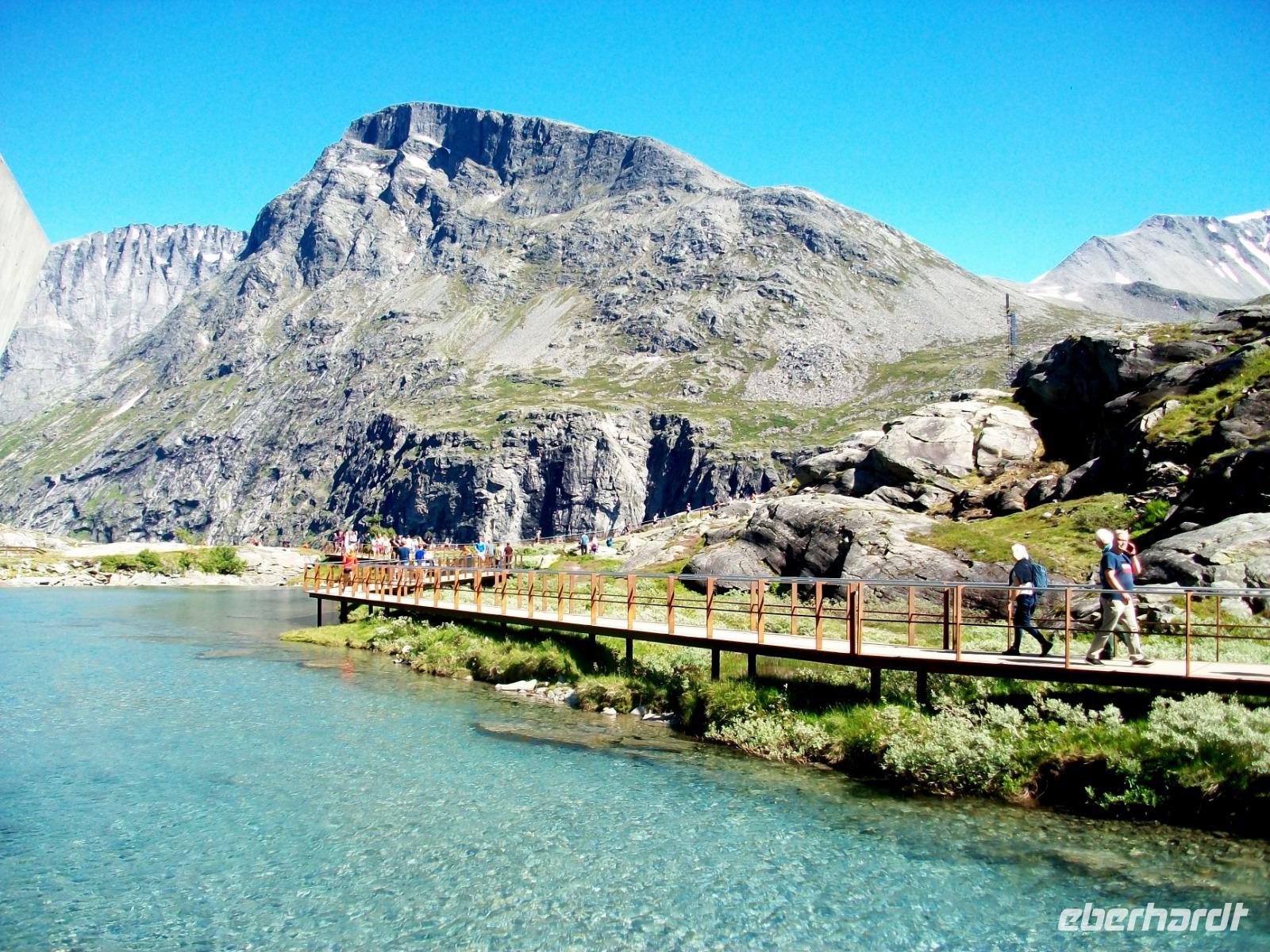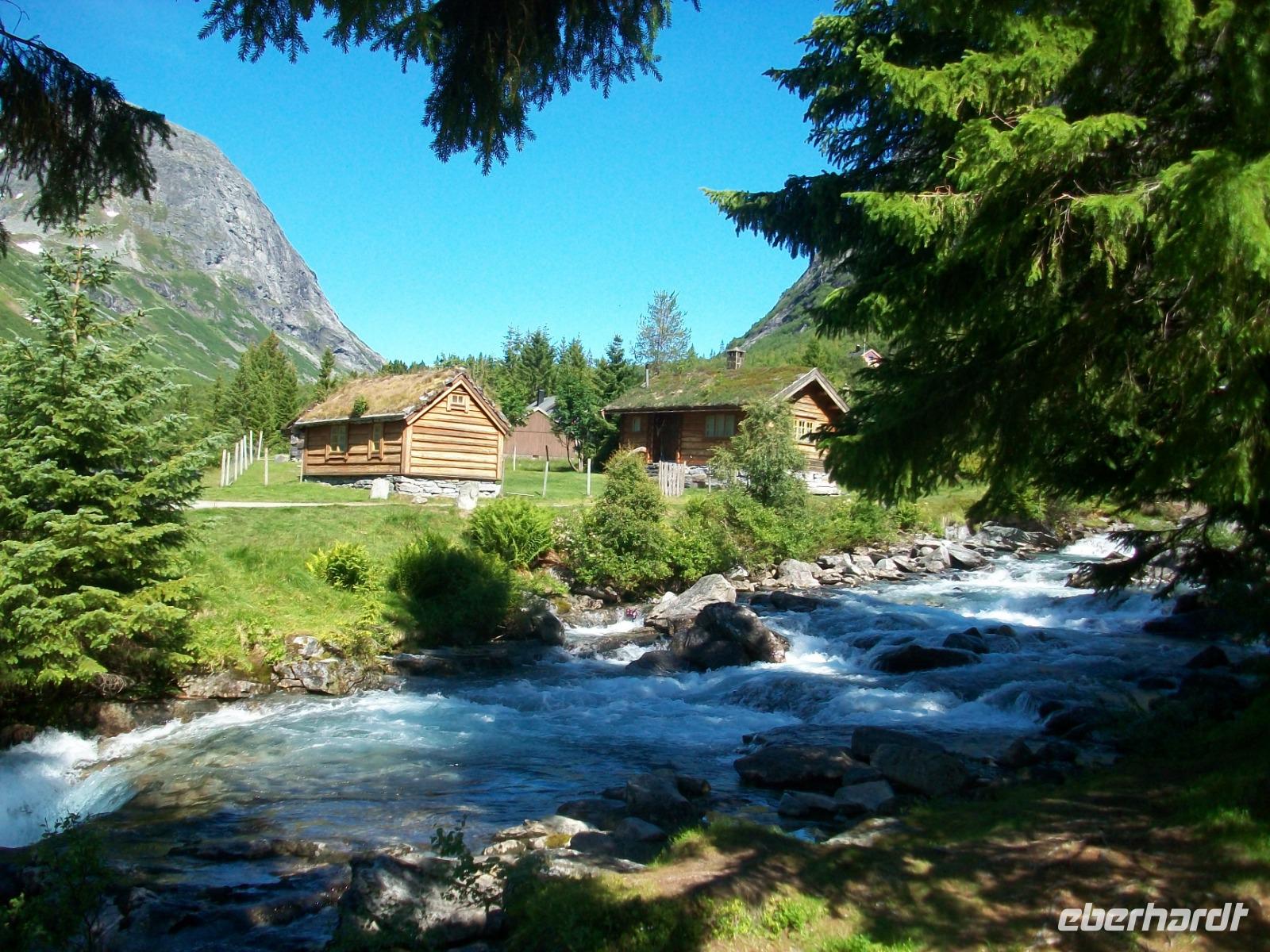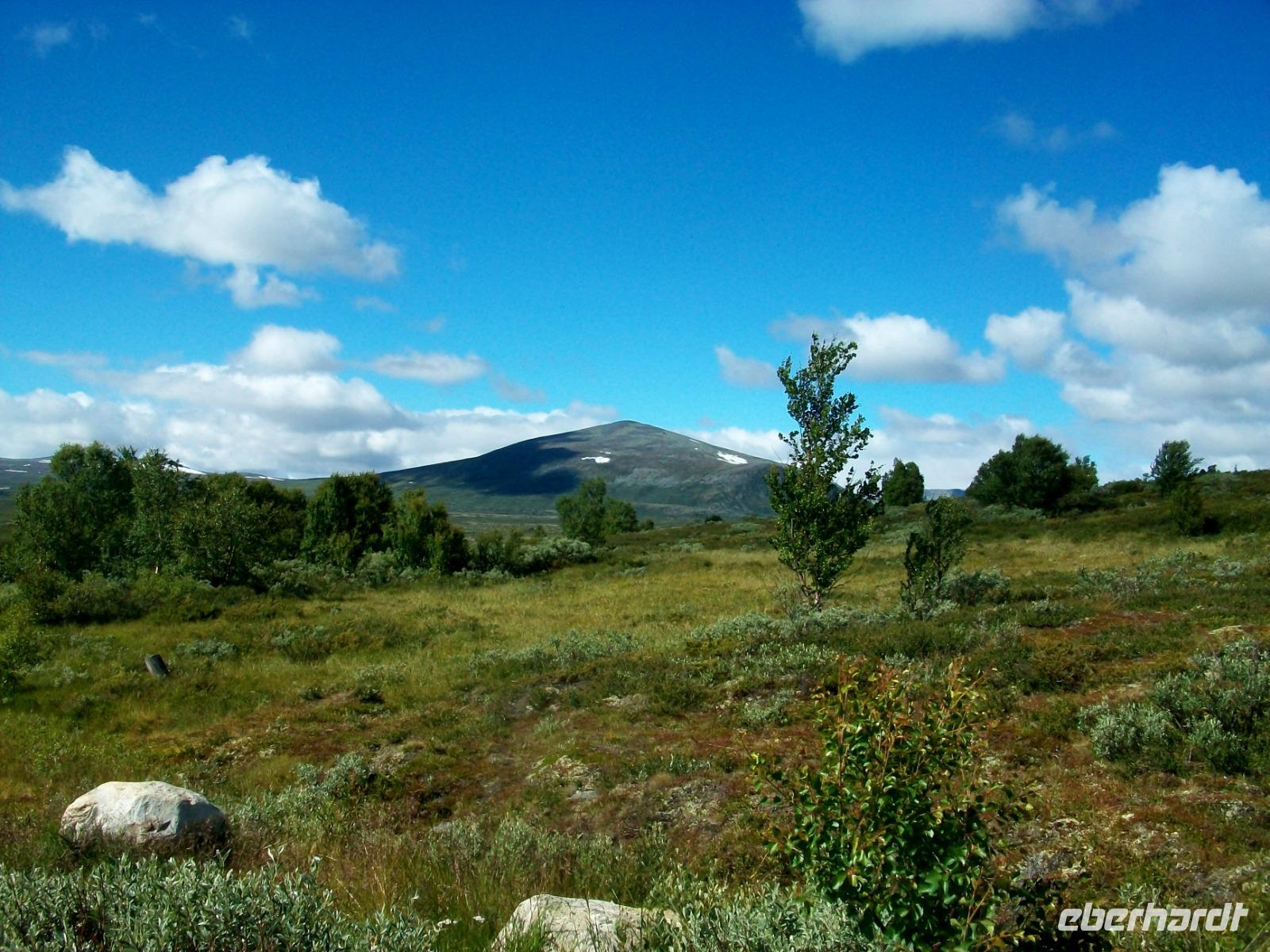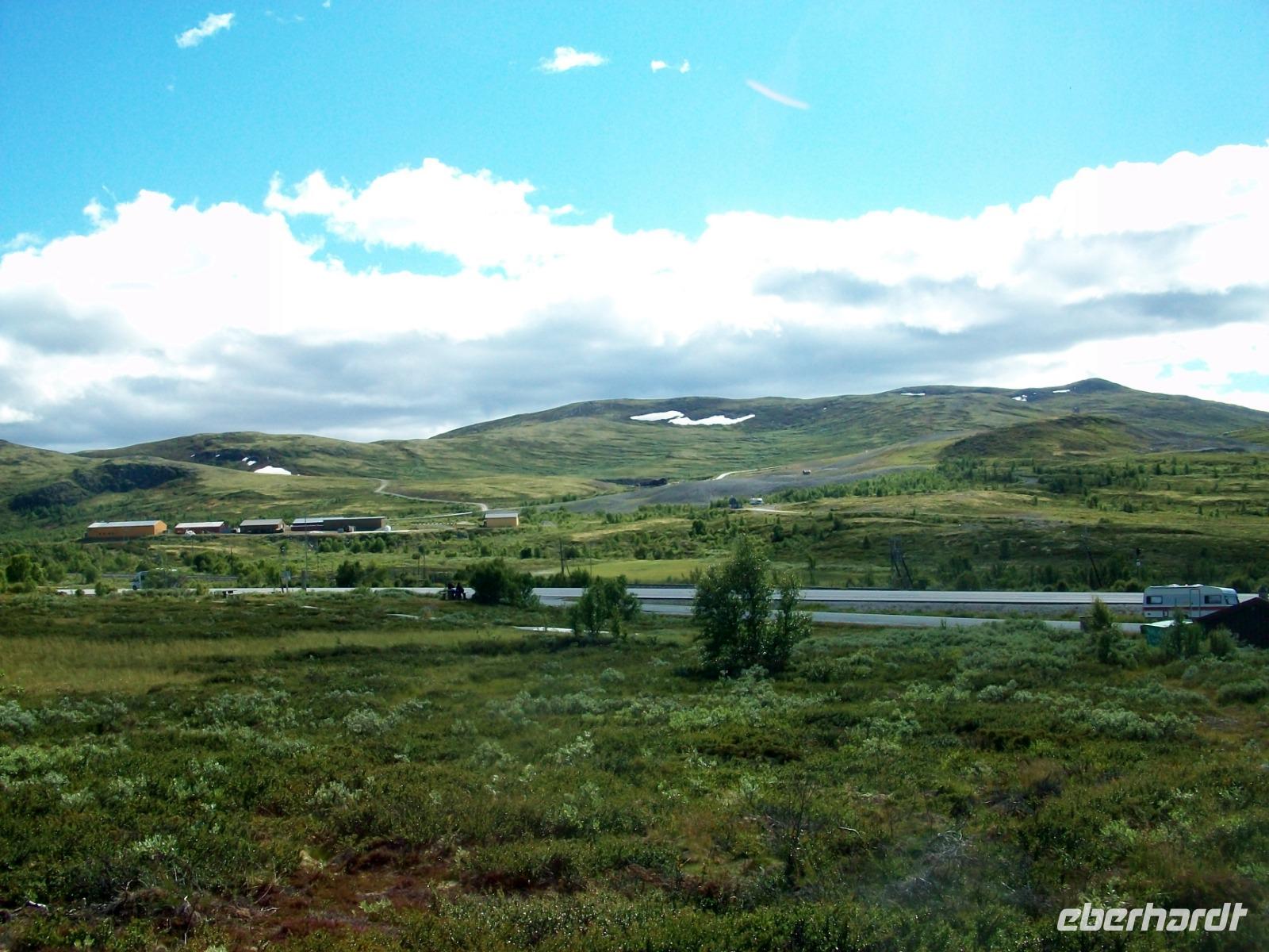 Bei schönstem Sonnenschein schwenken wir nun ein in das „Tal der Täler", dem Gudbrandstal. Ein Wildfluss kommt uns entgegen als wir aufwärts fahren und wir bewundern die schönen Häuser der Region, dann wieder saftig grüne Wiesen und gesunde kleine Waldflecken. Immer weiter führt uns der Weg aufwärts und bald sehen wir im Hintergrund die ersten schneebedeckten Bergspitzen. Doch zunächst gönnen wir uns eine Pause im beschaulichen Dombås um danach zu den fast baumlosen Höhen des Dovrefjells aufzusteigen. Die Vegetation tritt zurück und macht einer Tundra Platz. Kleine Bäche durchziehen diese Hochebene, wir sehen Moore und die typische Sumpfvegetation und an einem Aussichtspunkt verschaffen wir uns eine Gelegenheit diese karge aber traumhafte Landschaft für immer festzuhalten.
