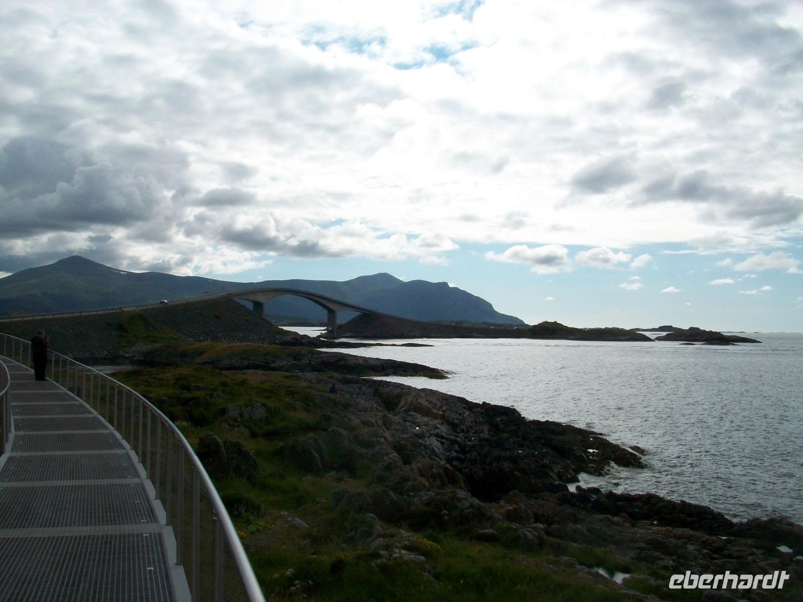 In Kristiansund machen wir eine kleine Stippvisite; dieser Ort zeigt uns das Leben der Seefahrt und Fischerei, auch das ist eine interessante Impression. Nun steht uns noch ein letzter Höhepunkt vor der Hotelankunft bevor. Zunächst gelangen wir durch den spektakulären Atlantiktunnel und sind dabei kurzeitig einmal 250 Meter unter dem Meer, dann steigen wir wieder auf, gelangen ans Tageslicht und bald kommt die Atlantikstraße in Sicht. Hier staunen wir über die Kunst des norwegischen Straßenbaus! Die zahlreichen Inseln und Schären werden von Brücken überspannt wie wir sie noch nie gesehen, dazwischen schlängelt sich die Straße der wir folgen, einfach fabelhaft!