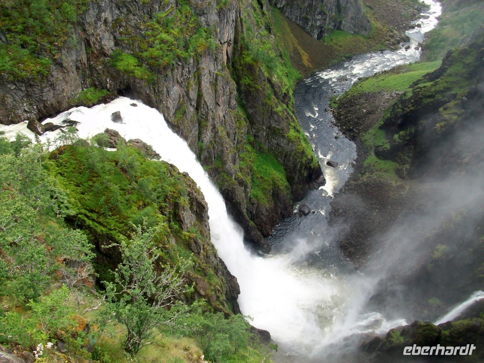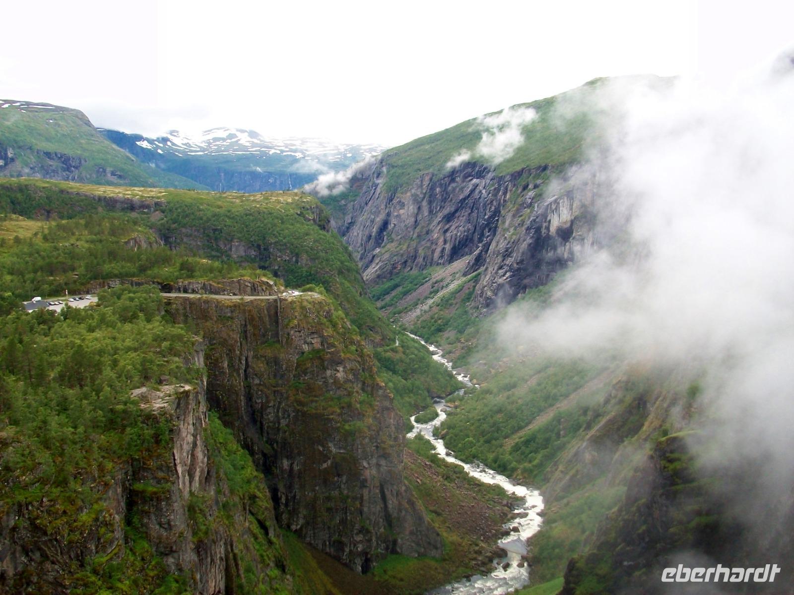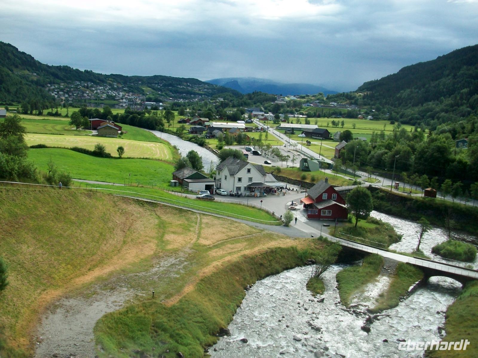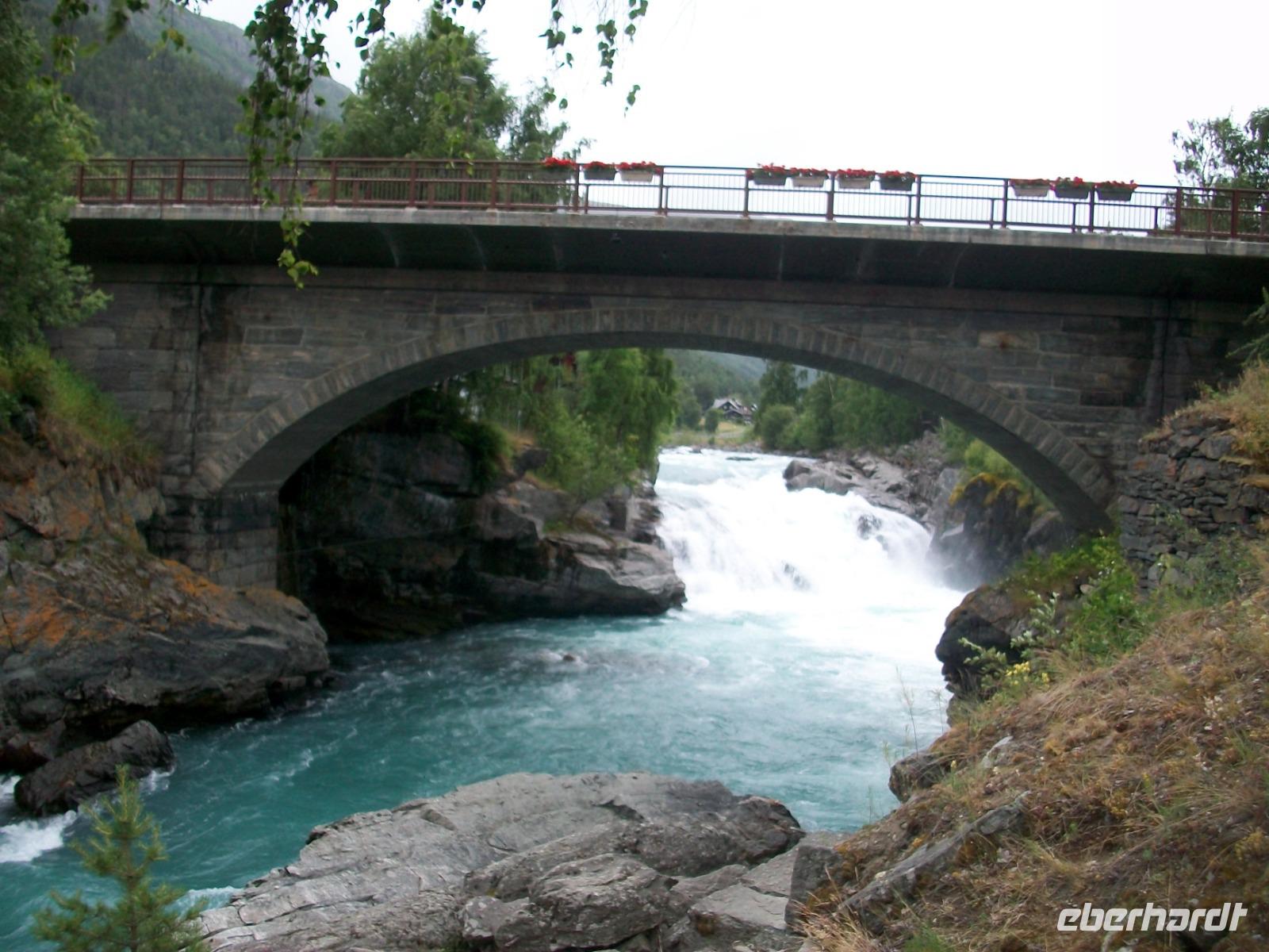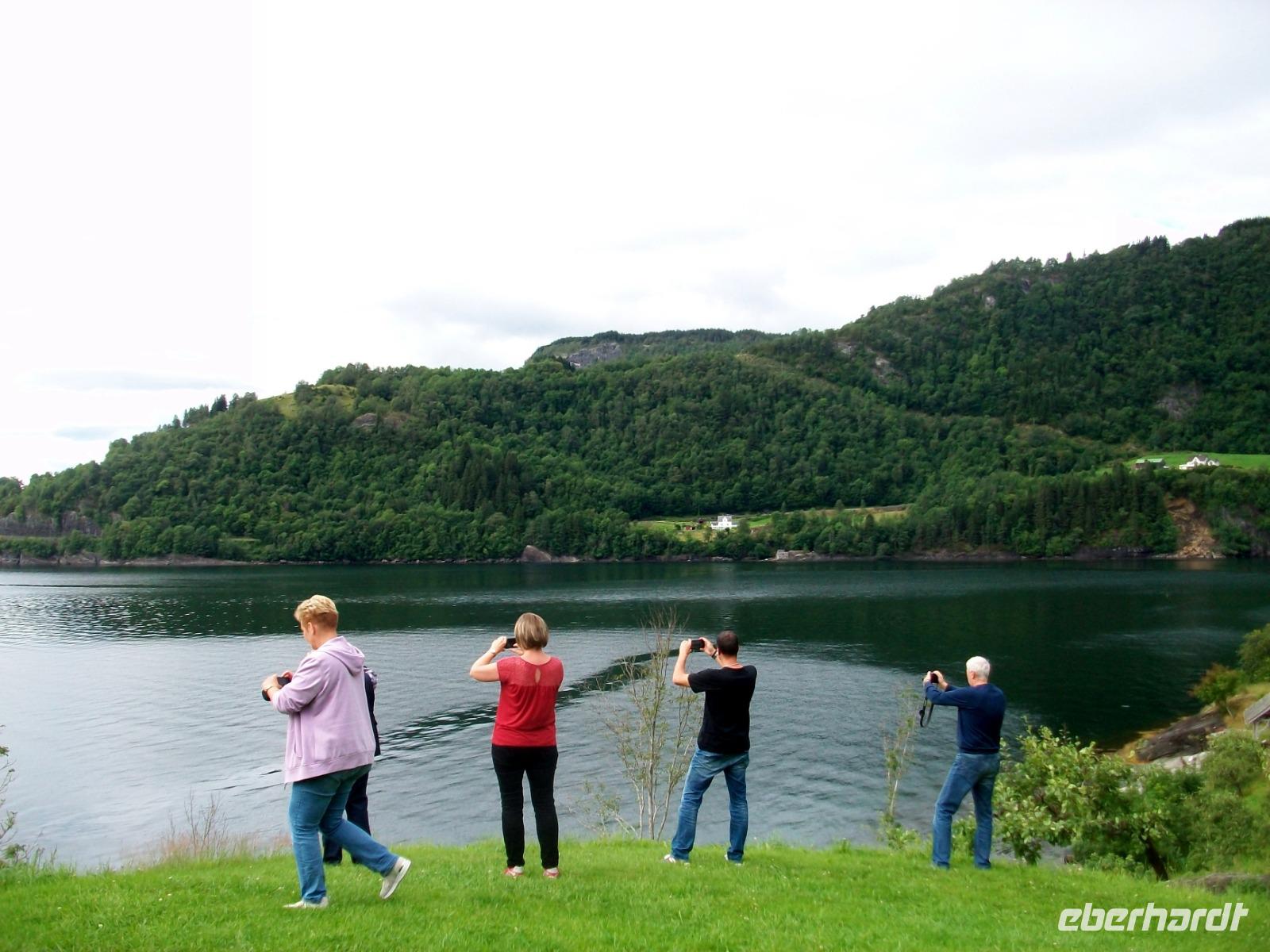 Ein ganz besonderer Ort ist Flåm. Von hier führt eine bekannte Bahnstrecke hinauf in erzreiche Berge, und hier unten, malerisch am Fjord gelegen, genehmigen wir uns eine Mittagspause. In rascher Folge ziehen Wolken über die Erhebungen die uns umgeben, nach einer genussvollen Stunde machen wir uns aber doch auf um einen besonderen Wasserfall zu besuchen, es ist der Tvindefoss. Staunend stehen wir vor den Kaskaden die das Wasser überwindet und müssen dabei den Kopf schon in den Nacken legen, das nasse Element stürzt sich aus mehr als hundert Metern herab.