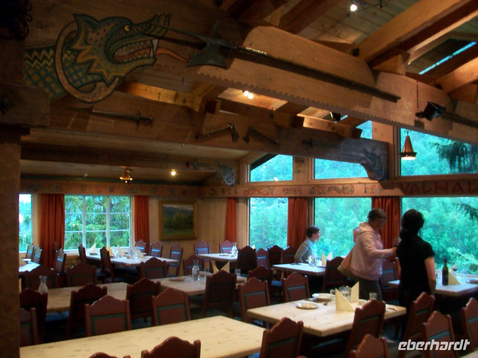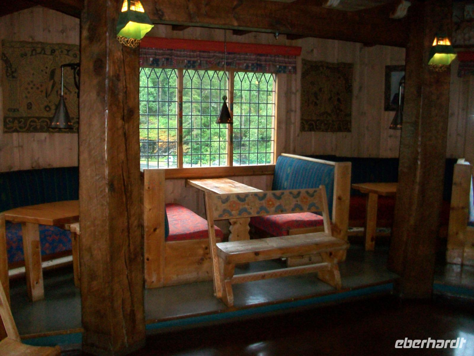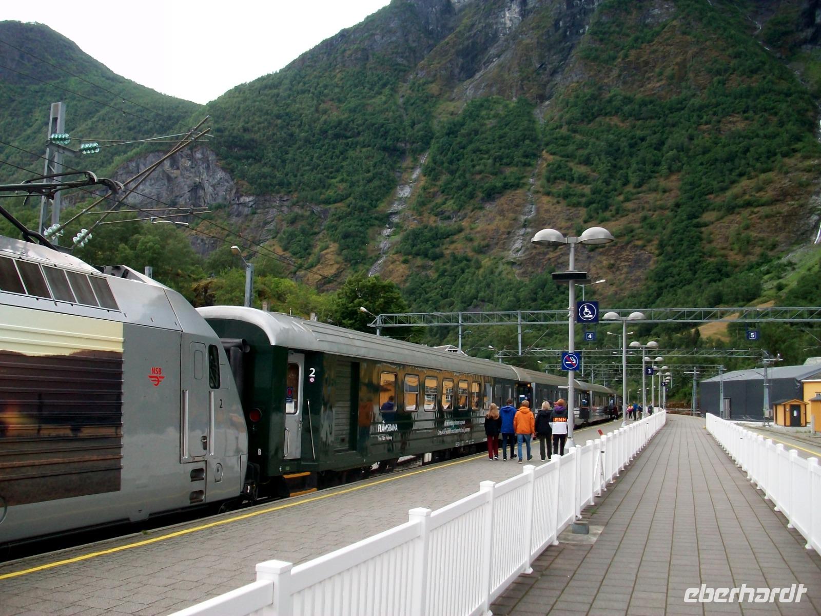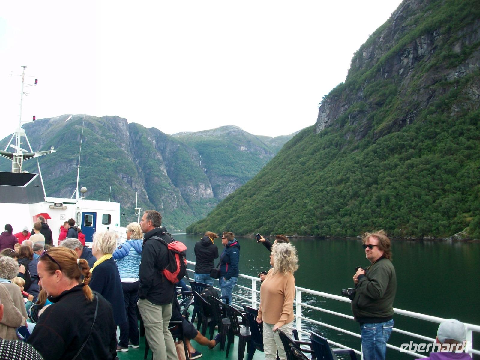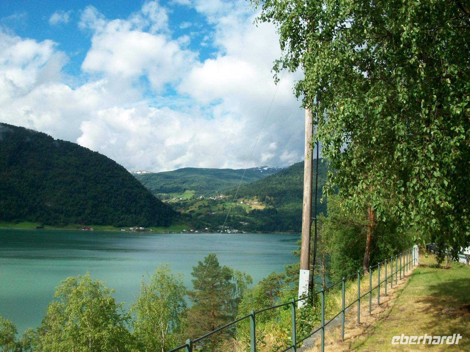 Ein ganz besonderer Ort ist Flåm. Von hier führt eine bekannte Bahnstrecke hinauf in erzreiche Berge, und hier unten, malerisch am Fjord gelegen, genehmigen wir uns eine Mittagspause. In rascher Folge ziehen Wolken über die Erhebungen die uns umgeben, nach einer genussvollen Stunde machen wir uns aber doch auf um einen besonderen Wasserfall zu besuchen, es ist der Tvindefoss. Staunend stehen wir vor den Kaskaden die das Wasser überwindet und müssen dabei den Kopf schon in den Nacken legen, das nasse Element stürzt sich aus mehr als hundert Metern herab.