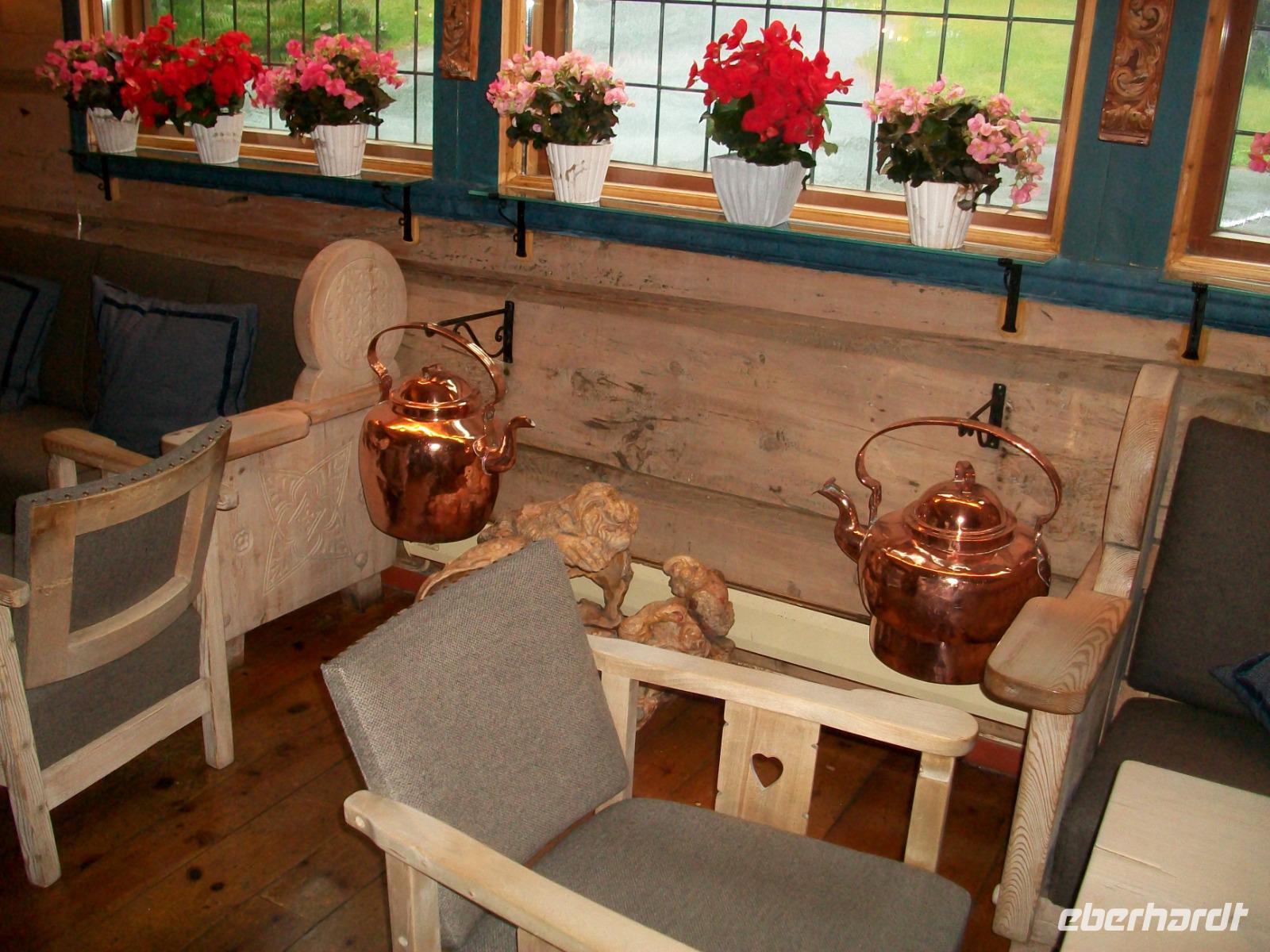 Leider hat nun Petrus alle Schleusen des Himmels geöffnet; ein Bummel durch den Wald der das Gehöft umgibt, fällt daher buchstäblich ins Wasser, schade. Dafür lassen wir uns das leckere Essen dann umso besser schmecken.