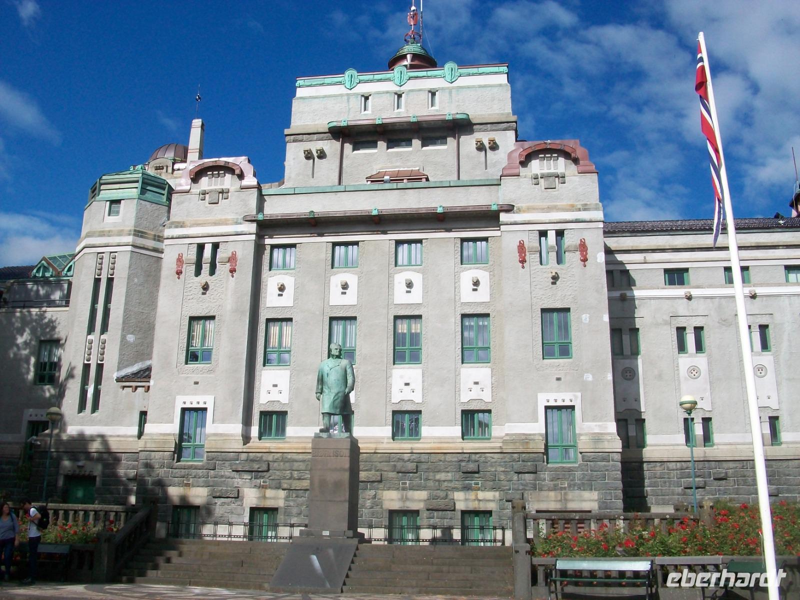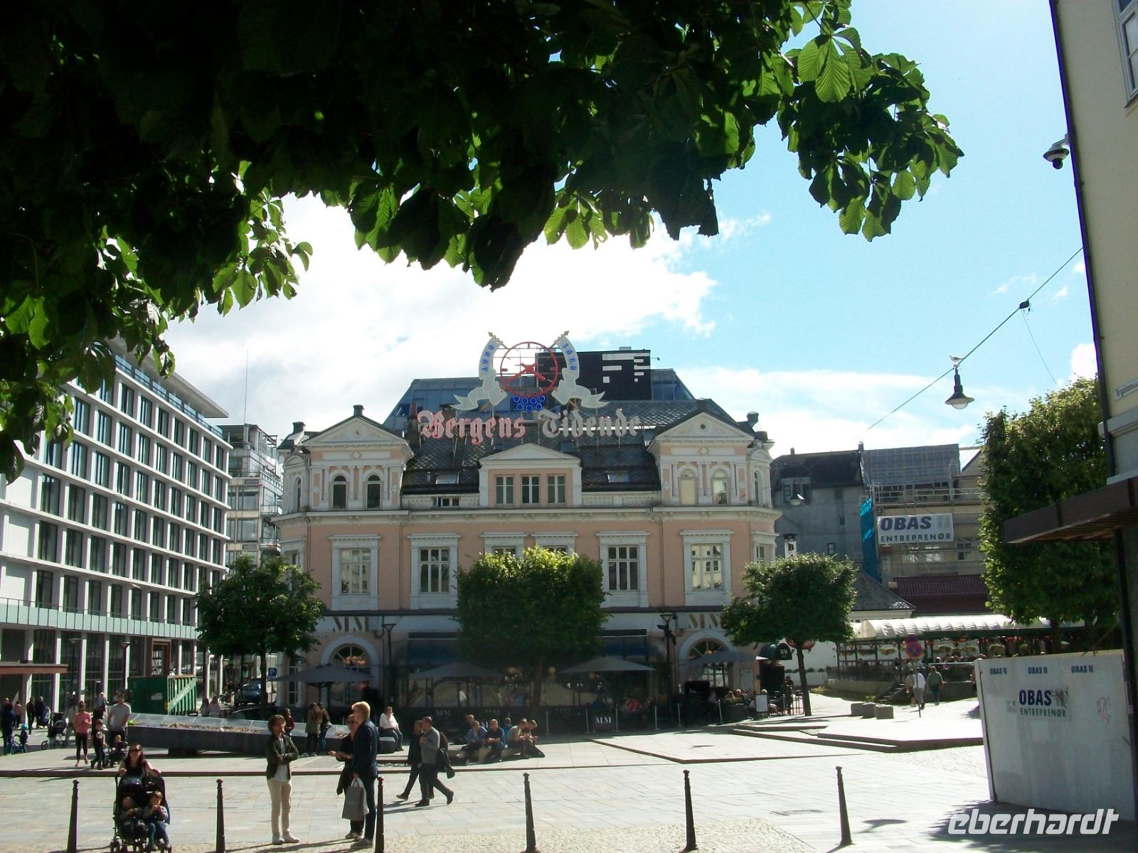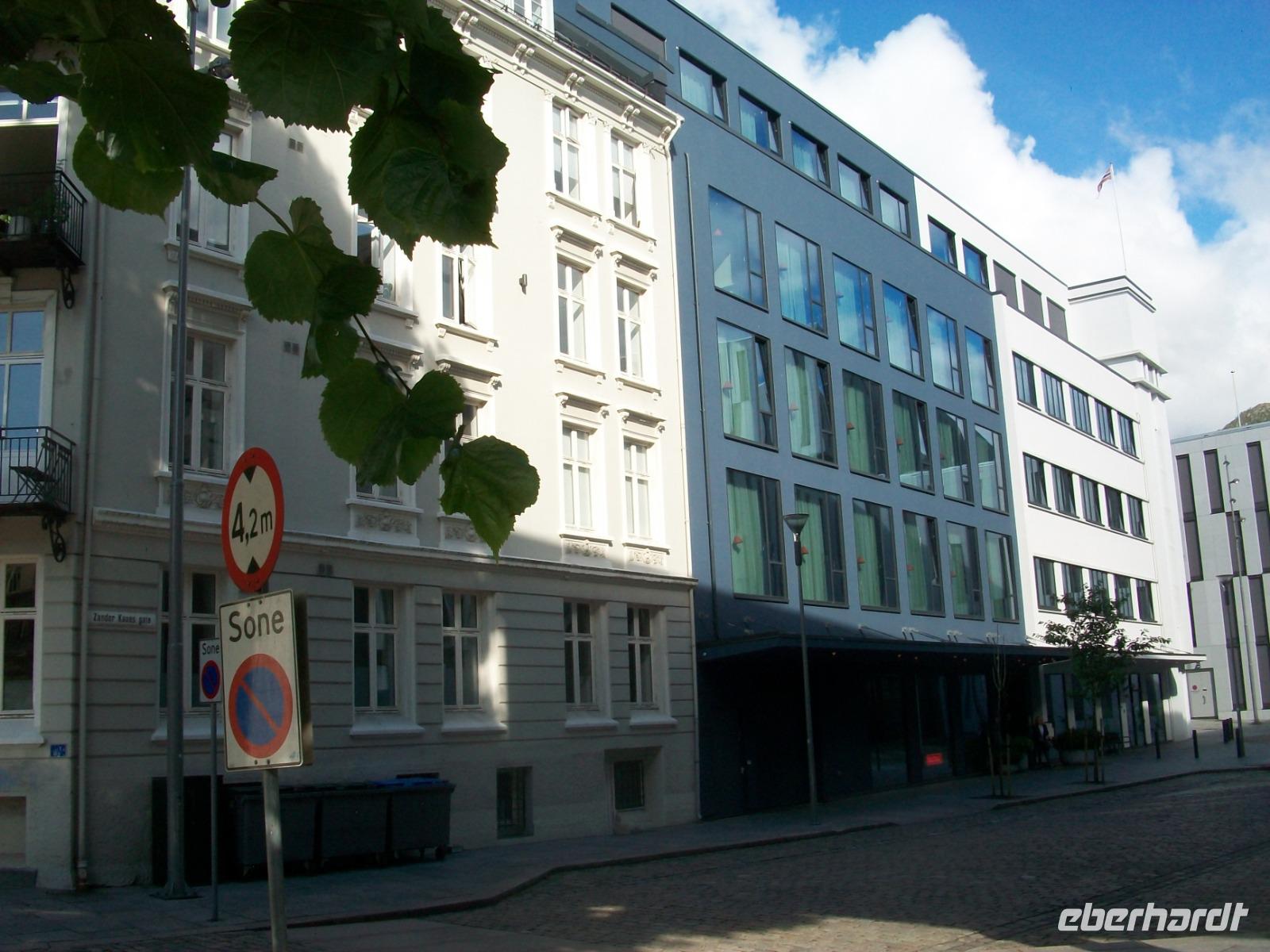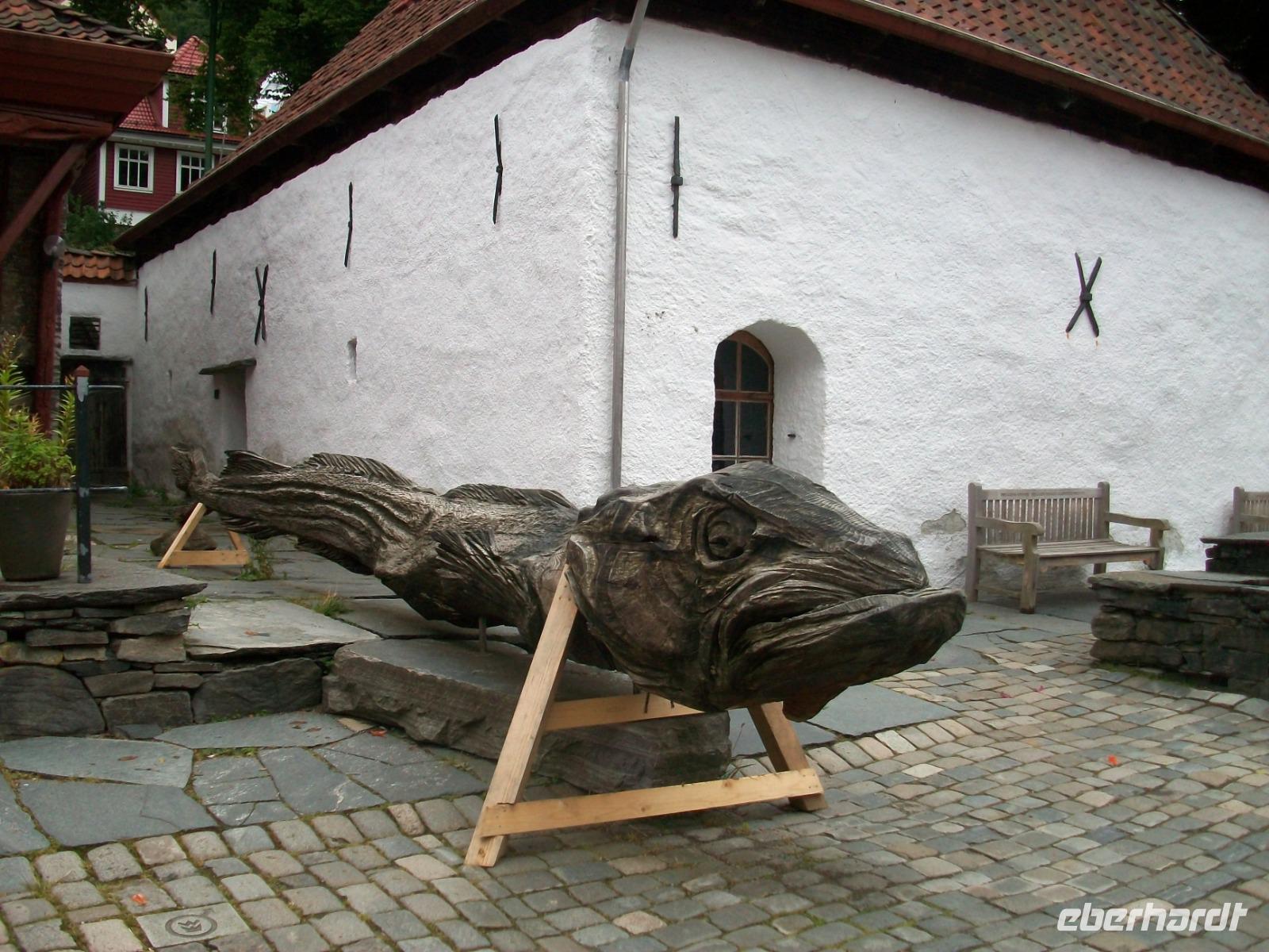 Aber, so schlimm wird es nicht; als wir uns mit dem Bus in Bewegung setzten, hat der Regen aufgehört und wir machen uns auf um eine der schönsten Städte Skandinaviens kennenzulernen. Zunächst geht es etwas nach außerhalb und wir sehen, neben schönen Häusern auch die Technologiezentren, für welche Bergen so bekannt ist. Ein kleines Schlösschen zeigt sich uns etwas später, hier wohnt über den Sommer an einigen Tagen die Königsfamilie. Dann geht es wieder zurück zum Zentrum; einige Fotostopps erlauben uns ganz besondere Perspektiven auf Stadt, Meer und die Schiffe die hier vertäut liegen. Nachdem wir solcherart Bergen vom Bus aus kennenlernen durften, unternimmt Andrea mit uns noch einen Spaziergang zwischen den uralten Holzhäusern von Bryggen. Dieses wirklich einmalige Ensemble beherbergte einst die Kontore der Hanse und diente außerdem den Mitarbeitern als Wohnquartier. Auf unsrem Spaziergang drehen wir nun die Uhren gleich um mehrere Jahrhunderte zurück und erahnen das Leben der Männer von damals. Wieder am Wasser angelangt, mit Blick auf die Frontseite der bunten Holzhäuser, verabschiedet sich unsere sympathische Führerin und nun beginnt für alle die wohlverdiente Freizeit im reizvollen Bergen. Zahlreich sind hier die Angebote: Ein leckerer Fischteller auf dem Fischmarkt, die Auffahrt mit der Fløybahn zum Hausberg mit einer grandiosen Sicht, der Besuch eines der zahlreichen Museen, ich glaube es ist für alle etwas an diesem Tag dabei gewesen, auch für diejenigen welche einfach nur etwas Bummeln wollten. Petrus war uns gnädig, auch wenn sich die Sonne nicht blicken ließ, geregnet hat es aber auch nicht und das will für Bergen schon etwas heißen!