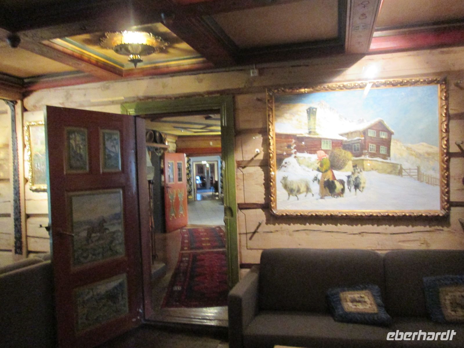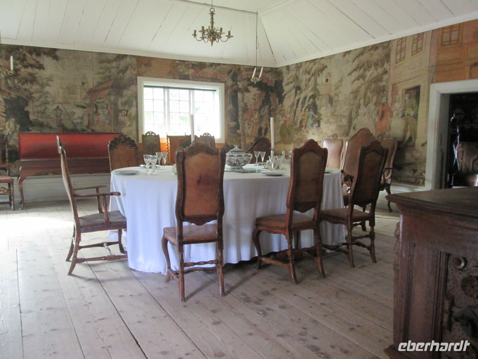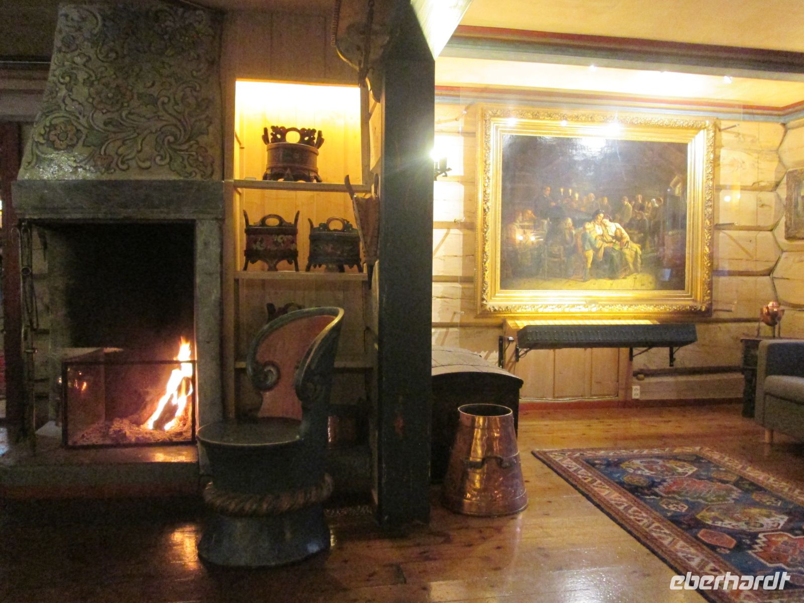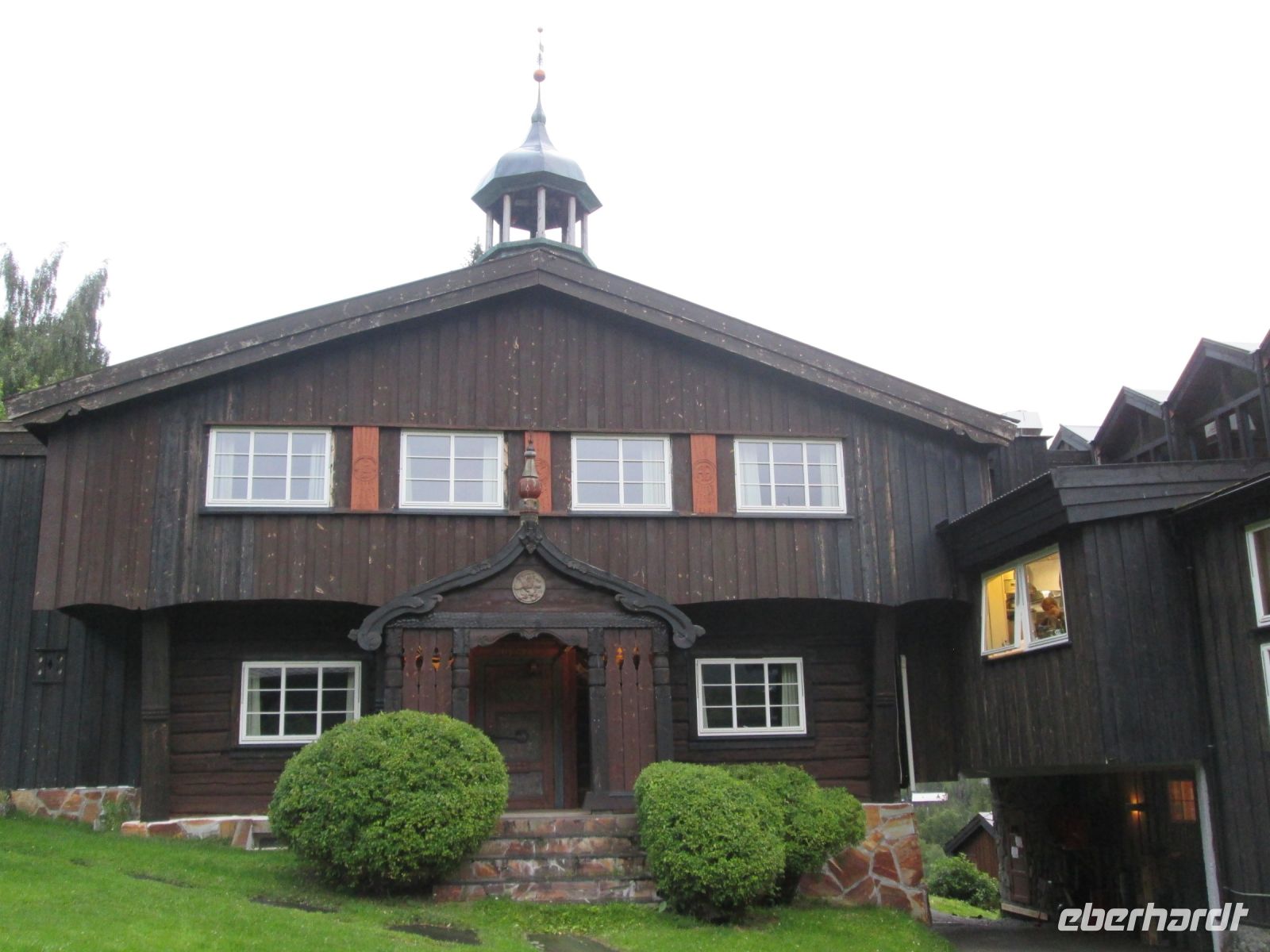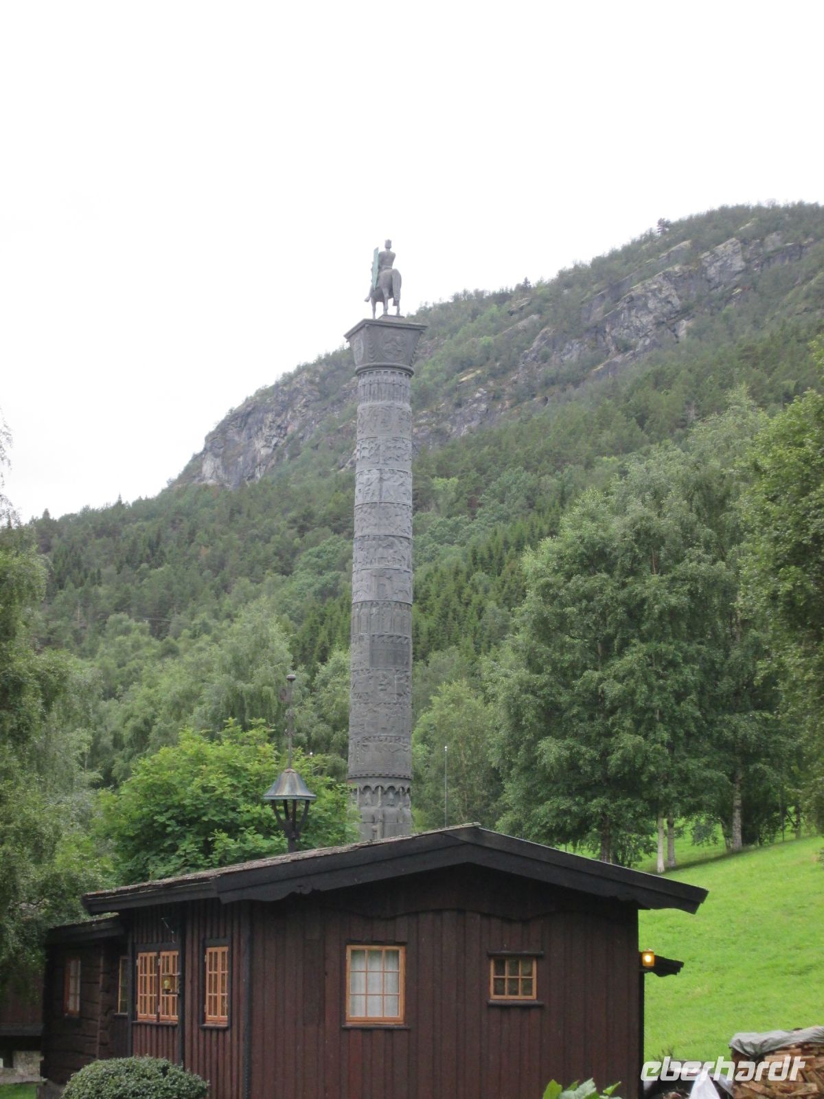 17. Jahrhundert hat es heute, aufgrund vieler Geschenke oder Sammlungen, musealen Charakter. Spartanisch eingerichtete einfache Gästezimmer in den ehemaligen Bauernhäusern und Ställen stellten einen Kontrast zu den von uns sonst bewohnten Hotels mit allem Komfort dar. Aber auch dies ist Norwegen-Tradition und Geschichte in und an Gebäuden. Denn auch die sich auf dem Parkplatz befindliche Saga-Säule zeigte uns einen Überblick über die norwegische Geschichte vom 872 bis zur Unterzeichnung der Verfassung 1814.
