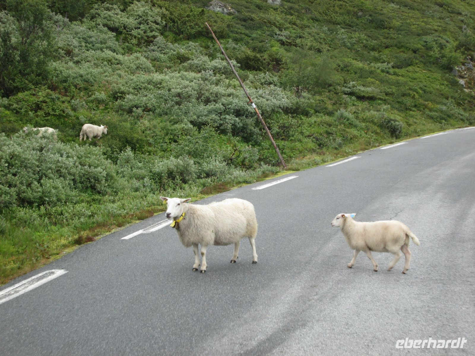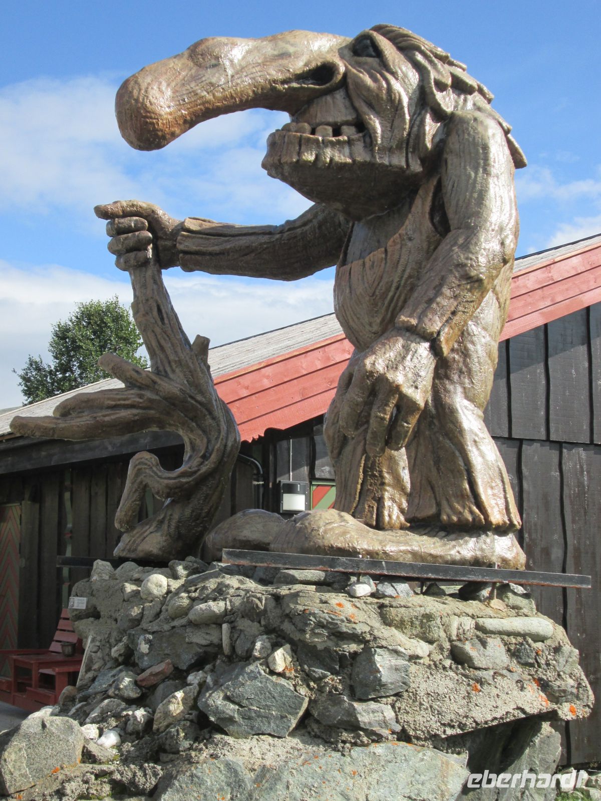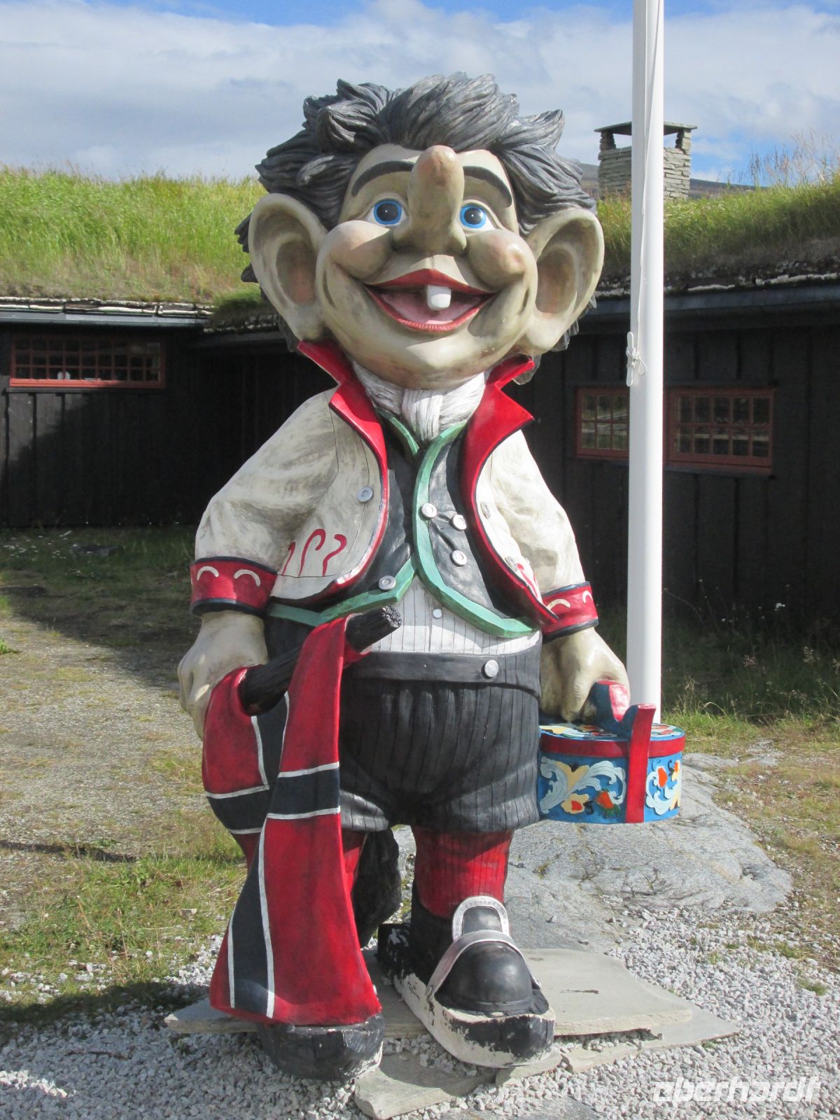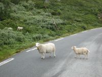 Konnten wir das Sognefjell ohne Regen, tiefhängende Wolken oder Nebel überqueren? Das war die Frage, denn die einmalige Landschaft sollte man doch genießen. Ja! So erfolgte die Fahrt über die Passhöhe von 1434 m mit geschichtlichen Erläuterungen und vielen Ausblicken in die beiden uns begleitenden Nationalparks Jotunheimen und Breheimen mit Gletscher, Seen und Wildbächen. Jotunheimen wird das "Reich der Riesen" genannt. Ihren Ursprung haben sie in der nordischen Mythologie.