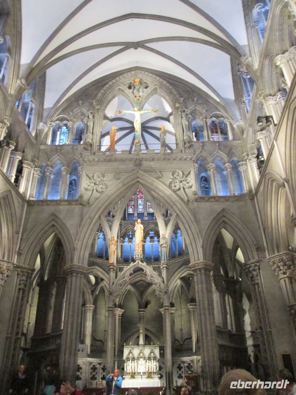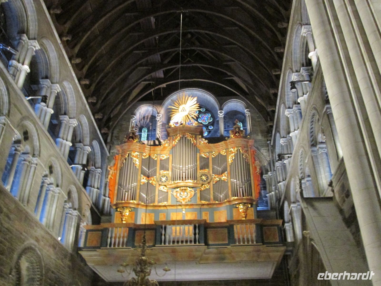Trondheim ist die 3.größte Stadt des Königreiches Norwegen, liegt am Fluss Nidelven, an dem sich auch unser Hotel befindet. Von diesem ging es mit dem Bus zunächst zur wichtigsten Sehenswürdigkeit, den Nidarosdom. Mit dem Baubeginn der Kirche ist Olav Haraldsson, ein Wikingerkönig, in Verbindung zu bringen. Er christianisierte das Land und hatte mächtige Feinde, so dass er in der Schlacht von Stiklestad am 29.7.1030 den Tod fand. Sein Körper wurde nach Nidaros gebracht. Circa 40 Jahre nach seinem Tod begann man eine Kirche zu erbauen, um seine Gebeine zu beherbergen. Olav wurde heilig gesprochen. Innerhalb weniger Jahre wurde so Nidaros, das heutige Trondheim, zu einem wichtigen Pilgerziel. Auch fanden die Krönungszeremonien 7 norwegischer Könige bis 1906 darin statt. Heute dient er als Segnungskirche.