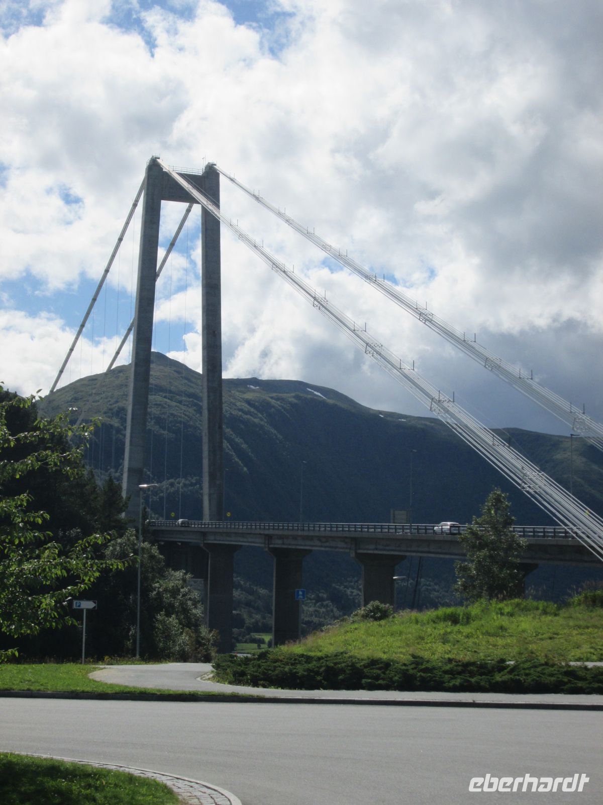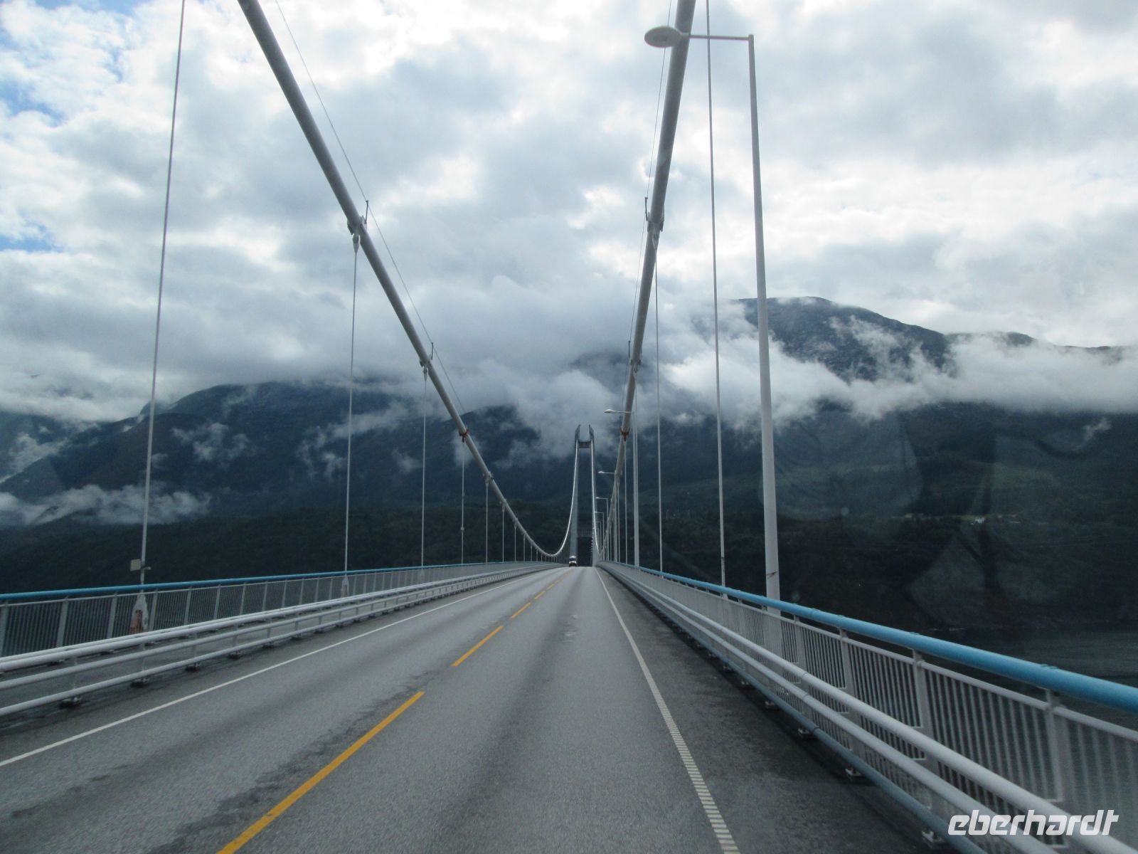 Bergen verließen wir am frühen Vormittag, einen kurzen Stopp am Steindalsfossen gab es, bevor uns der Hardangerfjord in seinen Bann zog. Über 180 Kilometer schlängelt er sich mit seinen Seitenarmen in das Landesinnere. An seinem östlichen Ende führt die imposante Hardangerbrücke über den Fjord. Dem Verkehr übergeben wurde sie 2013. Nach ihrer Fertigstellung war sie mit fast 1,5 Kilometern Länge und einer Höhe über dem Wasser von fast 55 Metern die längste Hängebrücke der Welt. Mittlerweile haben andere Brücken ihr diesen Rang abgenommen.