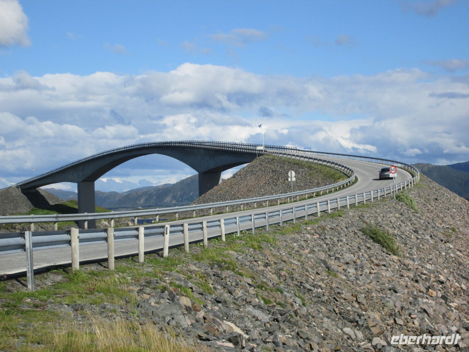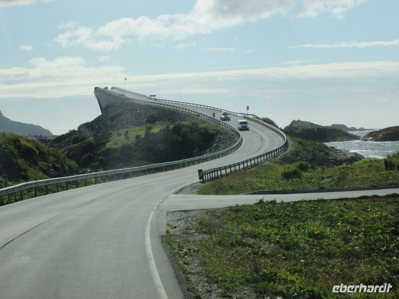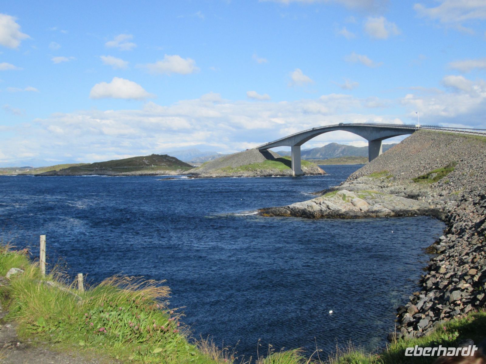 Unter der Atlantikstraße versteht man eine außergewöhnliche Straßenführung von Schäre zu Schäre am offenen Meer entlang durch die schäumende Brandung des Ozeans. Immer wieder gibt es Möglichkeiten für einen Fotostopp, welche rege aufgrund des tollen Wetters genutzt wurden.
