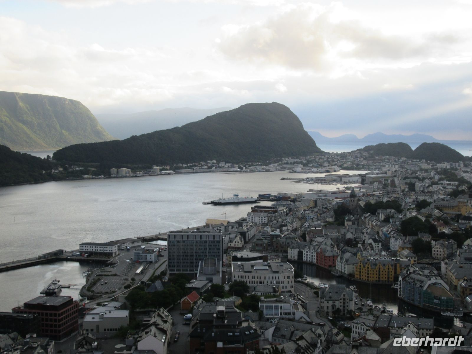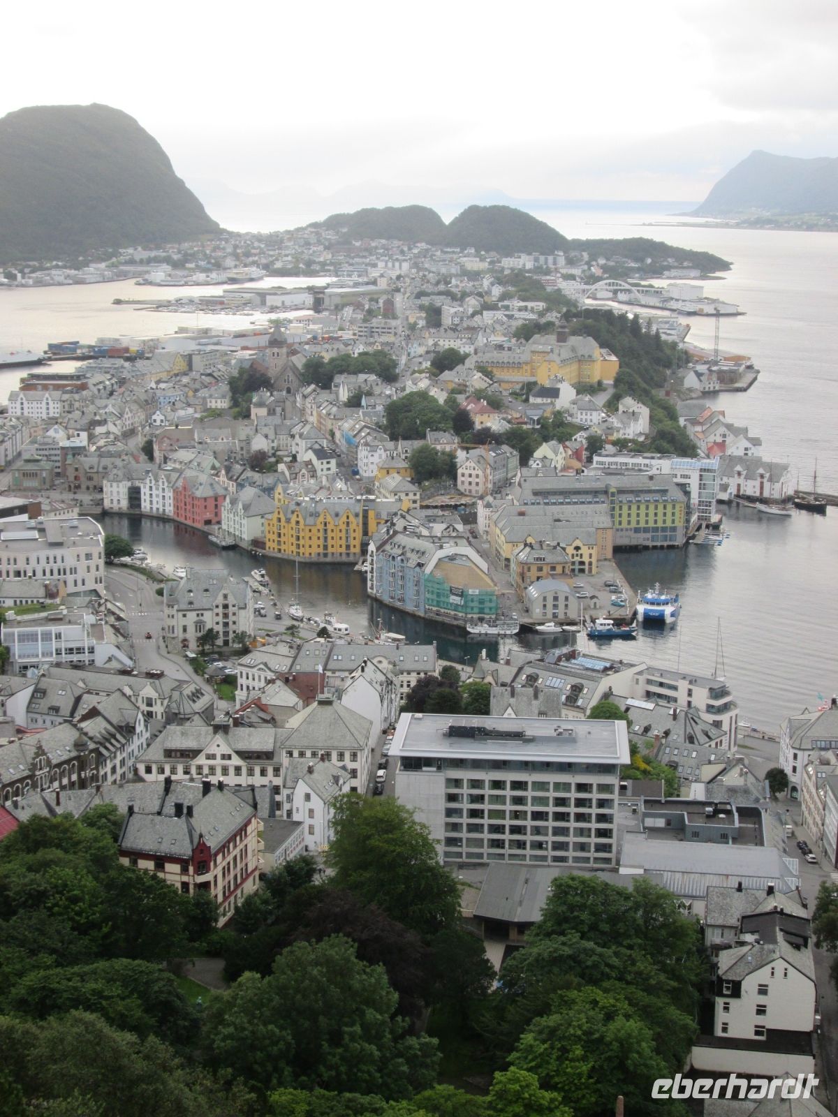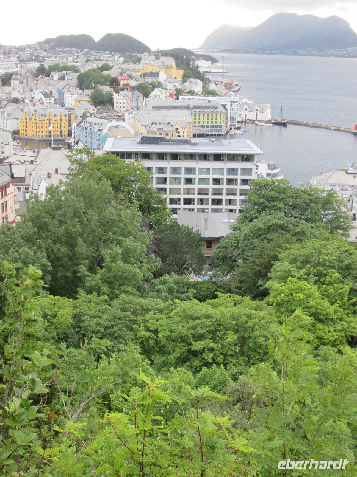 Schnell wurde die Stadt wieder aufgebaut. Dieses Mal jedoch mit Steinhäusern und Schieferdächern. So entstand ein wunderbares Stadtbild mit annähernd 450 Jugendstilhäusern. Einen herrlichen Blick darauf hat man vom 189 Meter hohen Hausberg Aksla.
