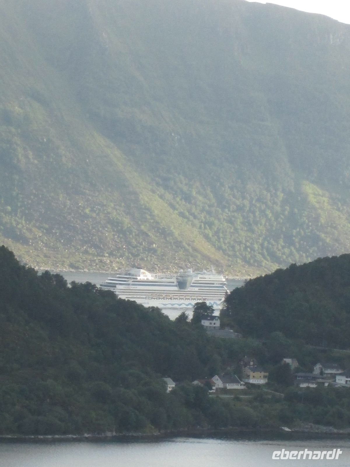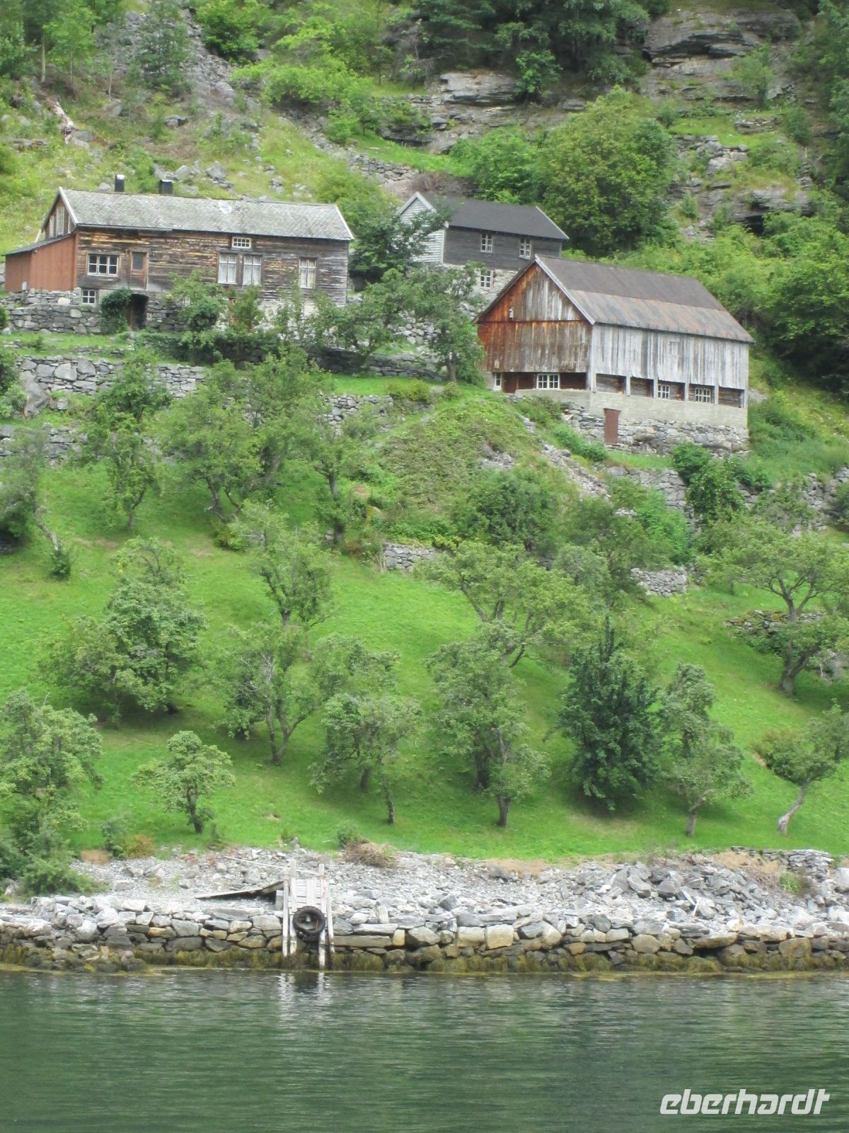 Nicht über die Adlerstraße mit unserem Bus hatten wir uns dem kleinen Ort genähert, sondern mit dem Schiff durch den schönen 15 km langen Fjord. Seit 2005 steht er unter UNESCO-Schutz. Am östlichen Ende des Fjords befindet sich der überwiegend vom Tourismus lebende Ort.
