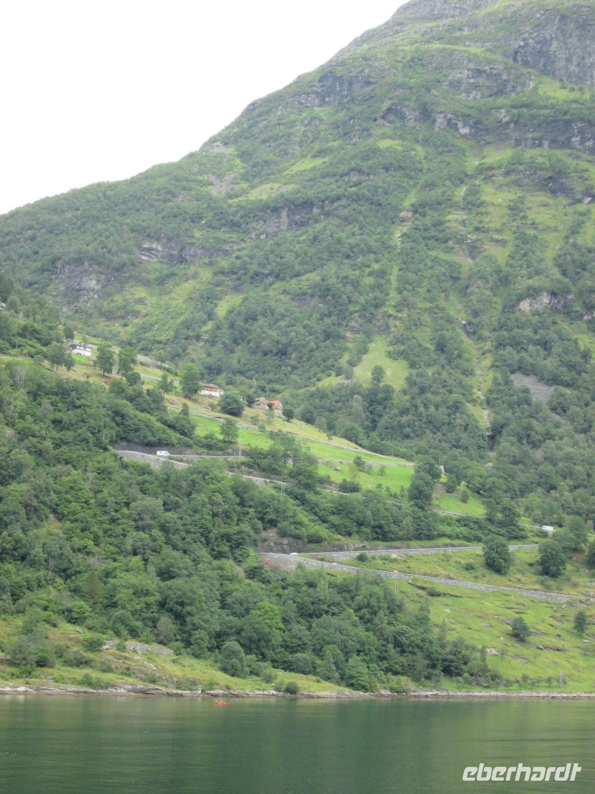 Wir verließen Geiranger und den Fjord über die 1889 fertig gestellte Geirangerstraße mit ihren 70 Kurven. Und immer wieder gab es einen fantastischen Blick!