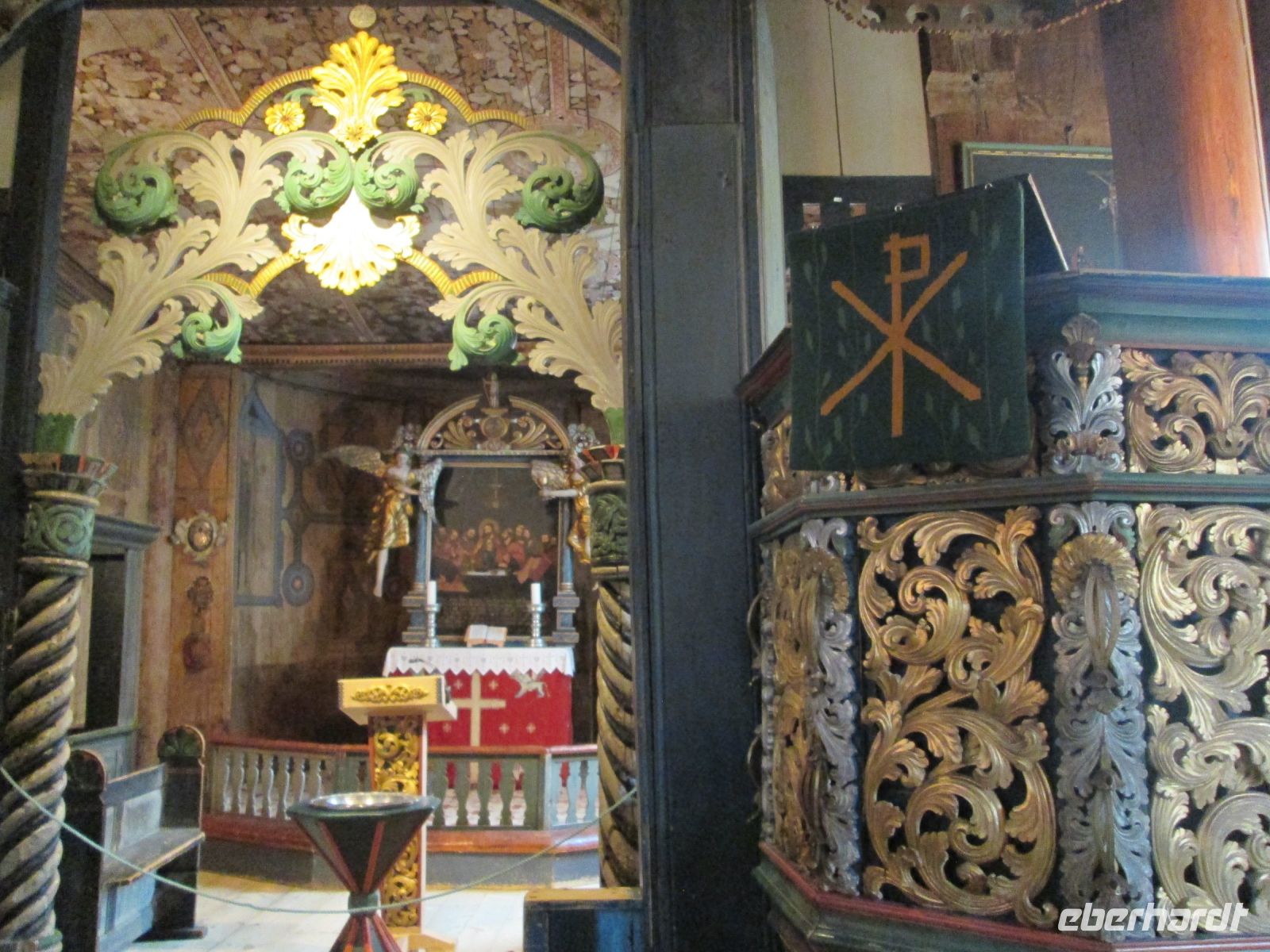 So kamen z.B. erst im 18.Jahrhundert der Altar mit 2 geschnitzten Engeln beidseitig in die Kirche, ebenso viele Votivbilder, welche Eggert Munch, ein Verwandter des berühmten Malers Edvard, geschaffen hat.