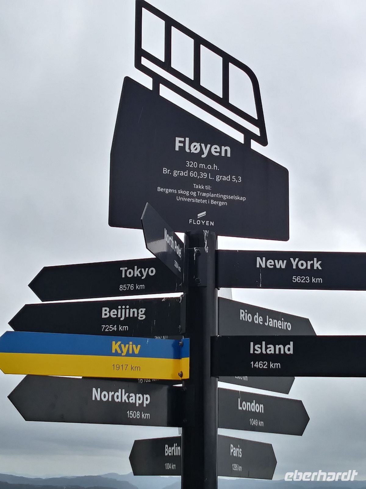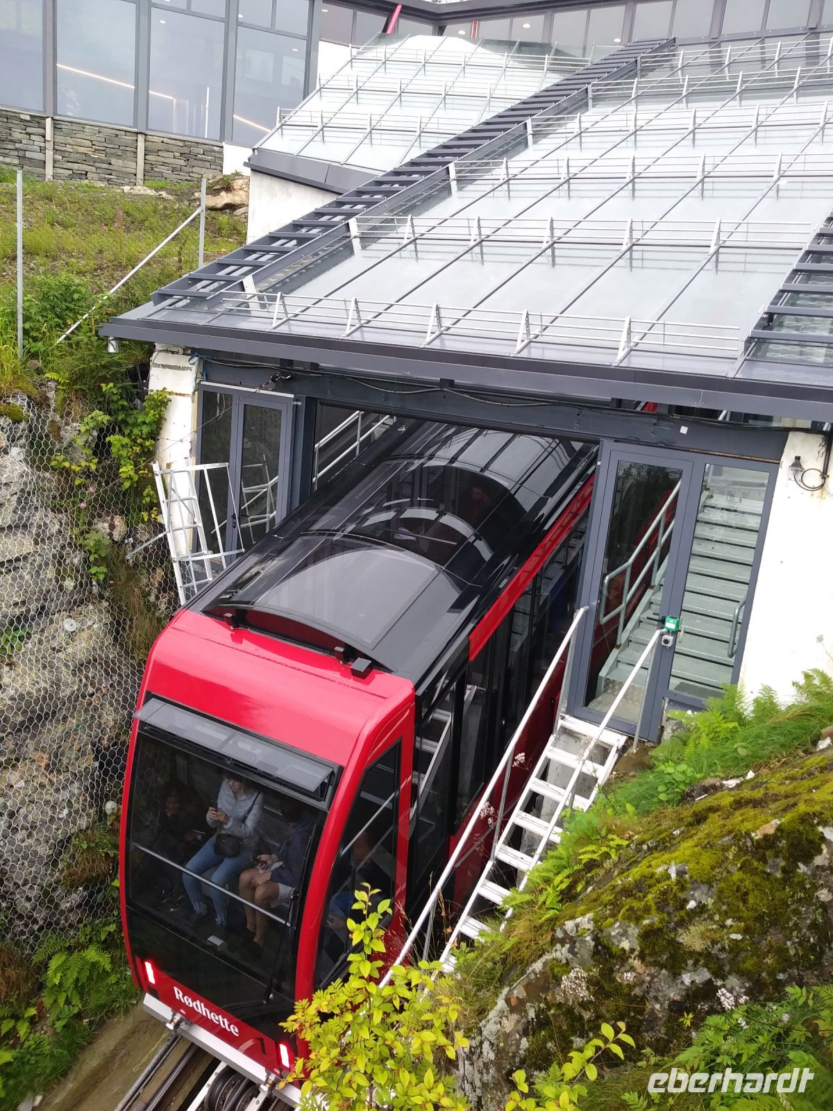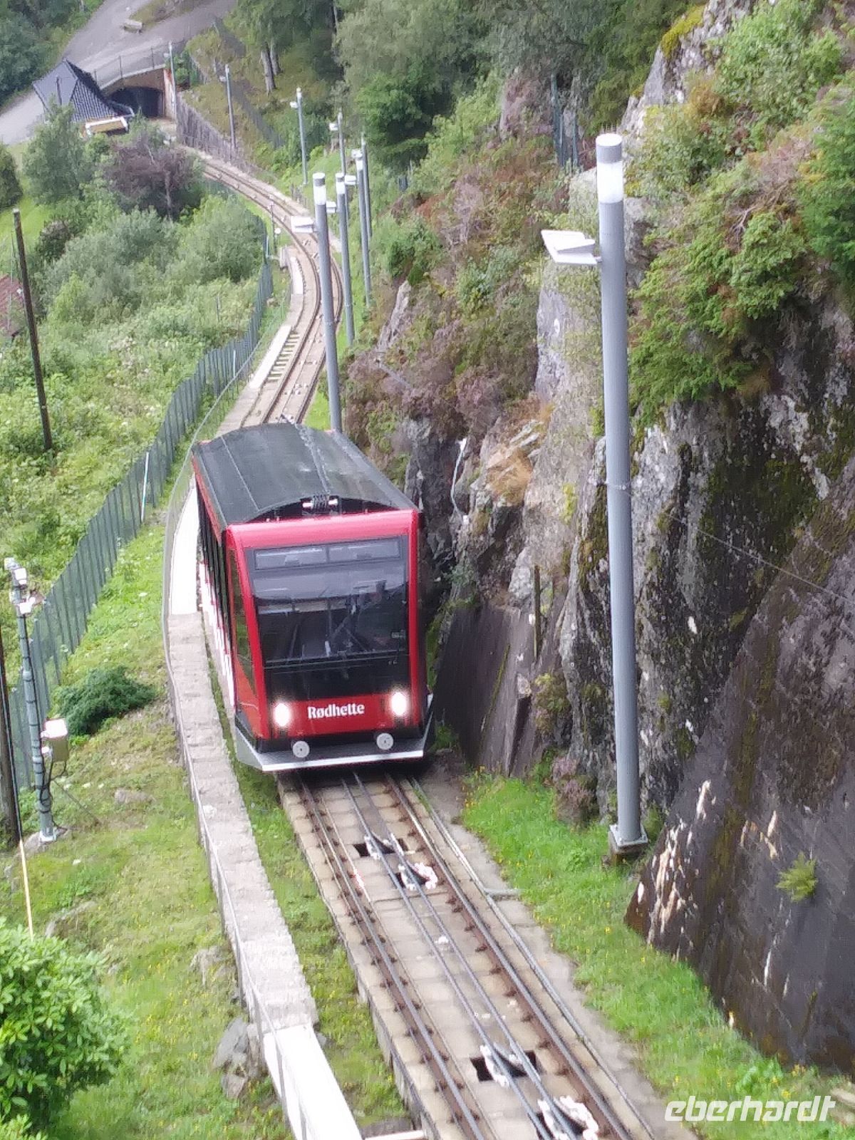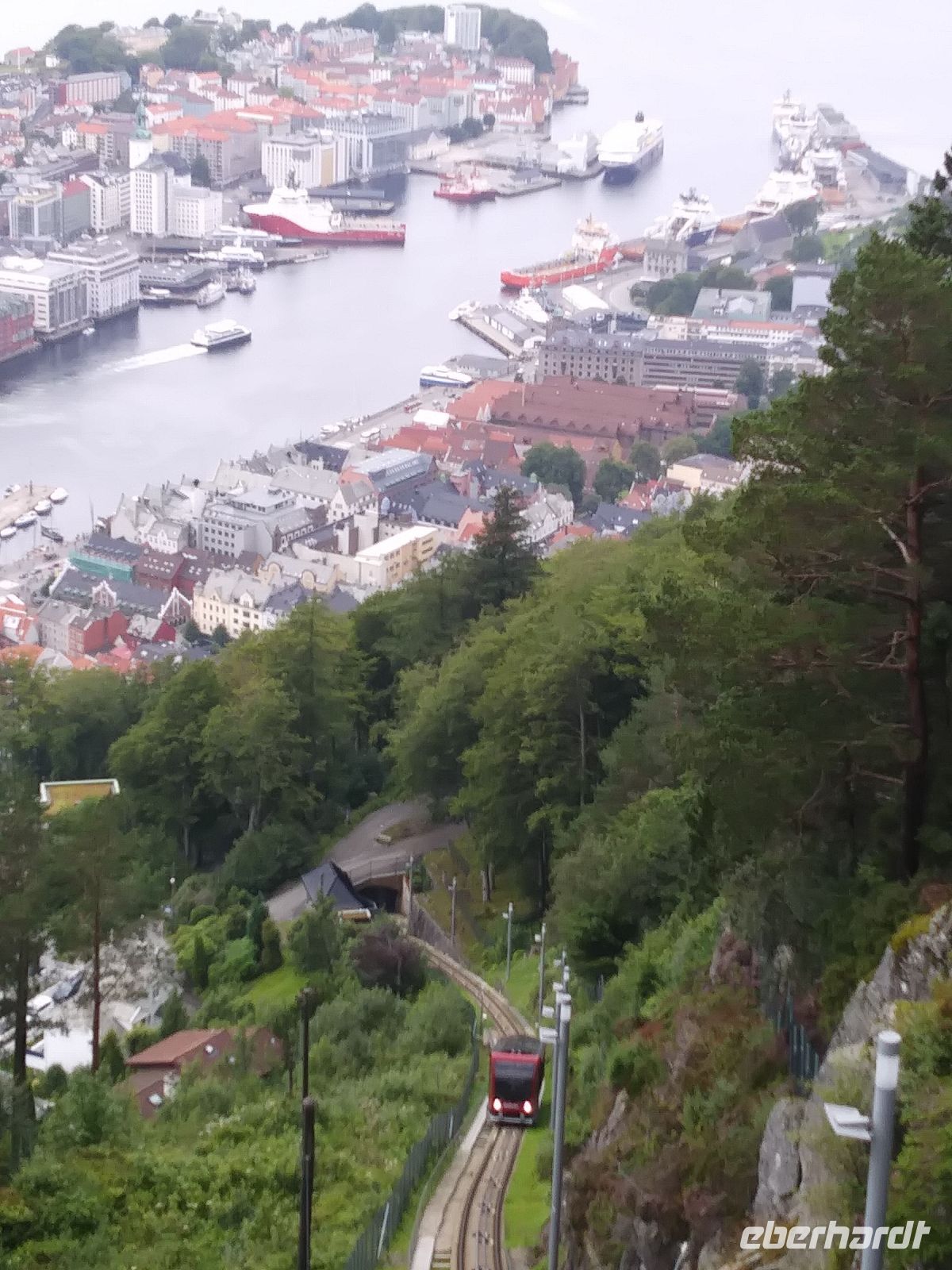 Den Abschluss in Bergen bildete die Fahrt auf den etwa 400 m hohen Floyen, einem der 7 Berge. Das Wetter hatte sich etwas gebessert, und so konnten wir der ehemaligen Hansestadt auf eine besondere Art und Weise "auf ein Wiedersehen" sagen.