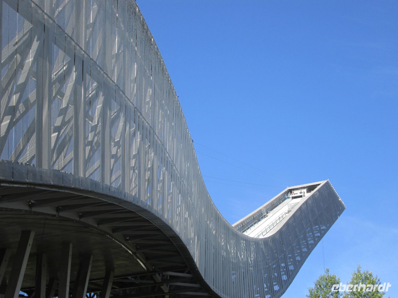 Im Skisprungstadion-Auslauf gab es einen letzten Blick ganz nach oben, wo einige noch vor wenigen Minuten standen. Respekt ist spätestens an diesem Punkt den Skispringern zu zollen, die sich alljährlich in den verschiedensten Wettbewerben um den weitesten Sprung messen