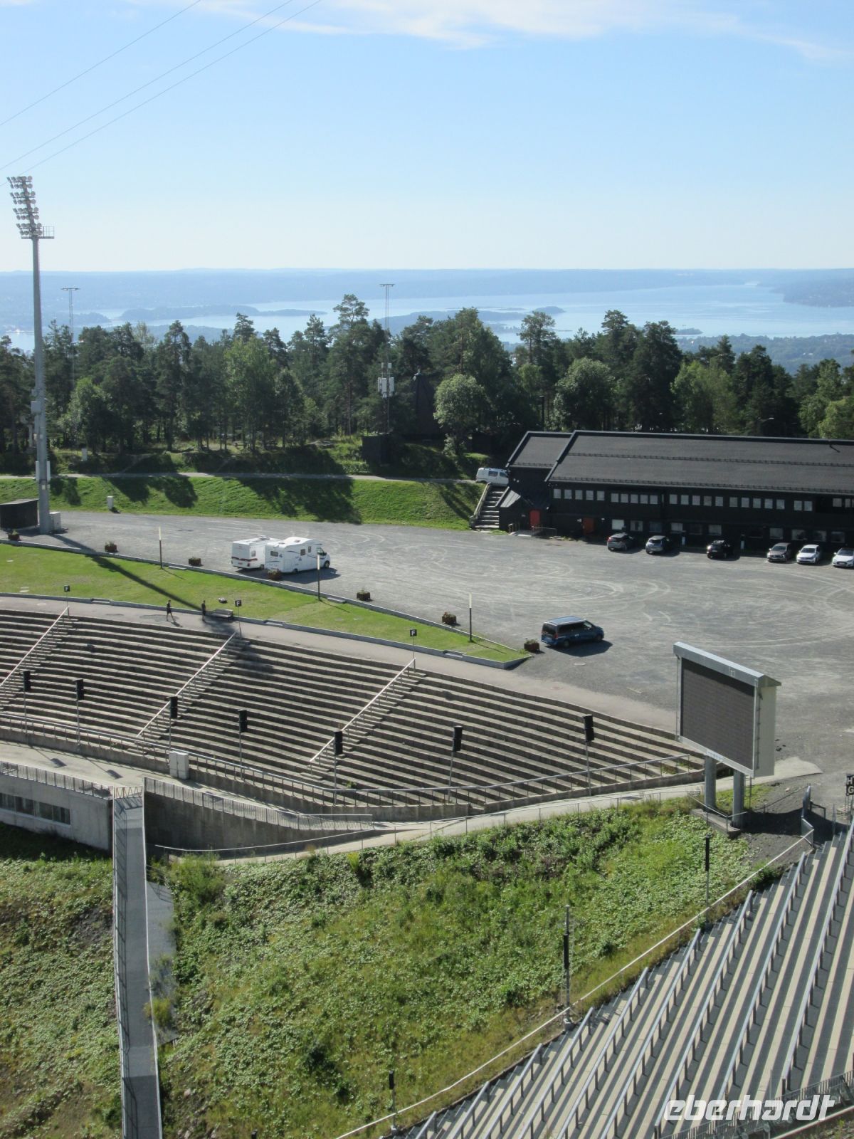 Vom Norefjell ging unsere Fahrt direkt nach Oslo. Was wir aufgrund von Zeitmangel am 2.Reisetag nicht geschafft haben, wurde als zusätzlicher Abstecher gern angeboten. Das Holmenkollen-Areal stand auf dem Programm. Nicht nur das man einen schönen Fernblick über den Oslofjord und einen Teil der Stadt genießen kann, auch die Schanzenanlage ist imposant. Sie war die 1.Schanze weltweit, welche mit einem permanenten Windschutz versehen wurde. An der Schanze lädt zudem das älteste Skimuseum der Welt zu einem Besuch ein.