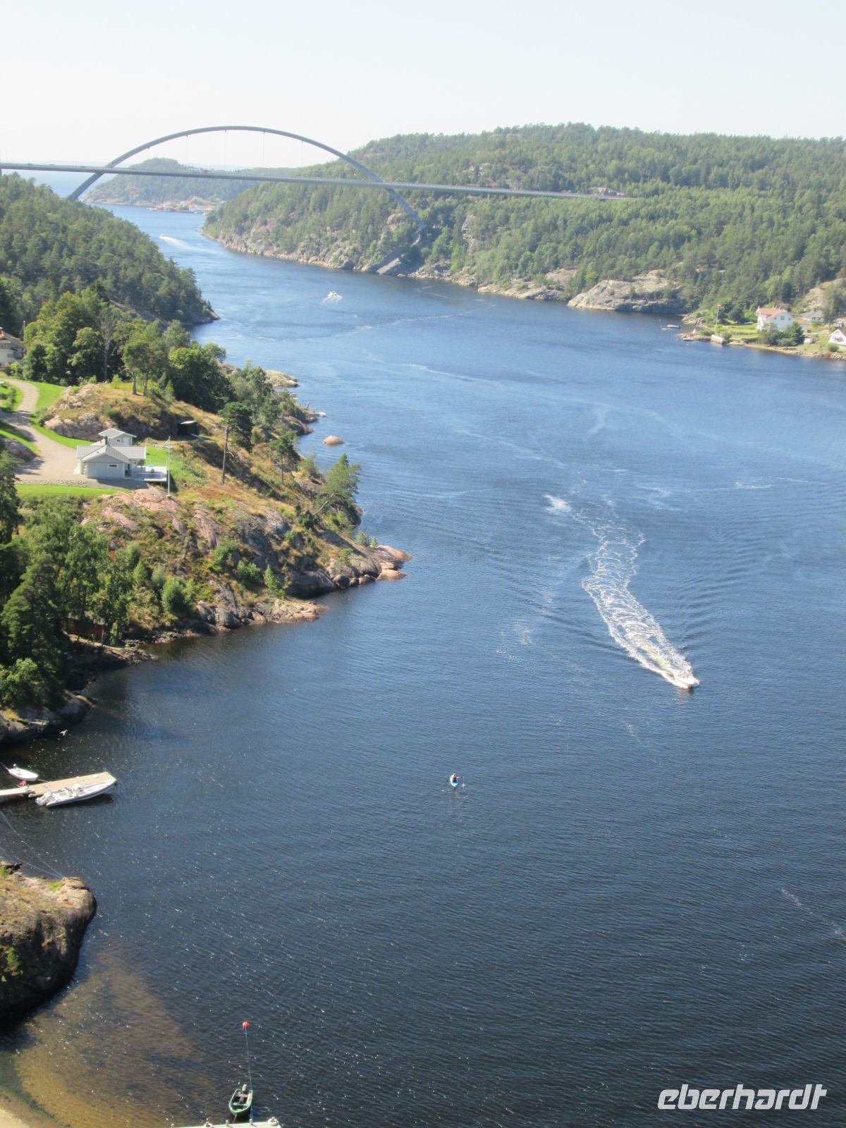 Auf besondere Art und Weise verabschiedeten wir uns von Norwegen. 55 Meter über dem Svinesund haben wir per Pedes die Brücke überquert und sind nach Schweden "gelaufen".