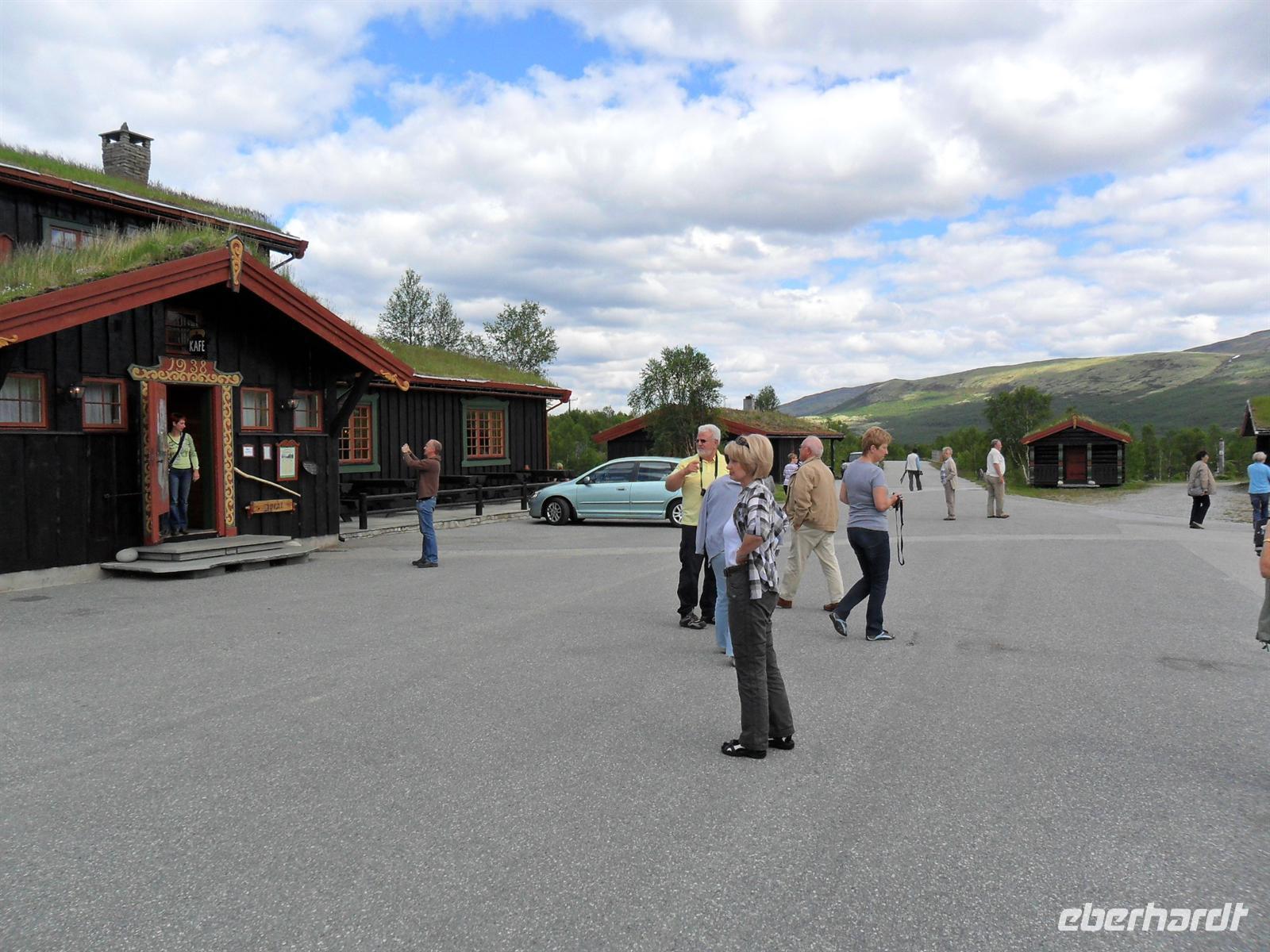 Letzte Besichtigung für heute war die schöne Stabkirche von Lom. Wie alle Stabkirchen aus Masten, Planken und Schindeln erbaut und später mit Balkenvorbauten versehen, gehört sie zu den Bauwerken, die man sehen, fühlen und riechen kann, denn alle Stabkirchen haben einen charakteristischen Geruch wegen ihrer ?Wetterfestmachung" durch Harz und Teer. Nun blieb nur die Weiterfahrt zum Hotel Elveseter - eine Übernachtung, die es in sich hat. Das Ambiente des Hotels - eines überwiegend in Holz gebauten großen Bauernhofes aus dem 18. Jh. Man fühlt sich wie in einem großen Museum und obwohl das Hotel - aufgrund der Erhaltung des alten Bauzustandes - für heutige Besucher nicht sehr komfortabel erscheint, begeistert es jedes Jahr die Reisegäste, denn das Umfeld und Ambiente sind überwältigend.
