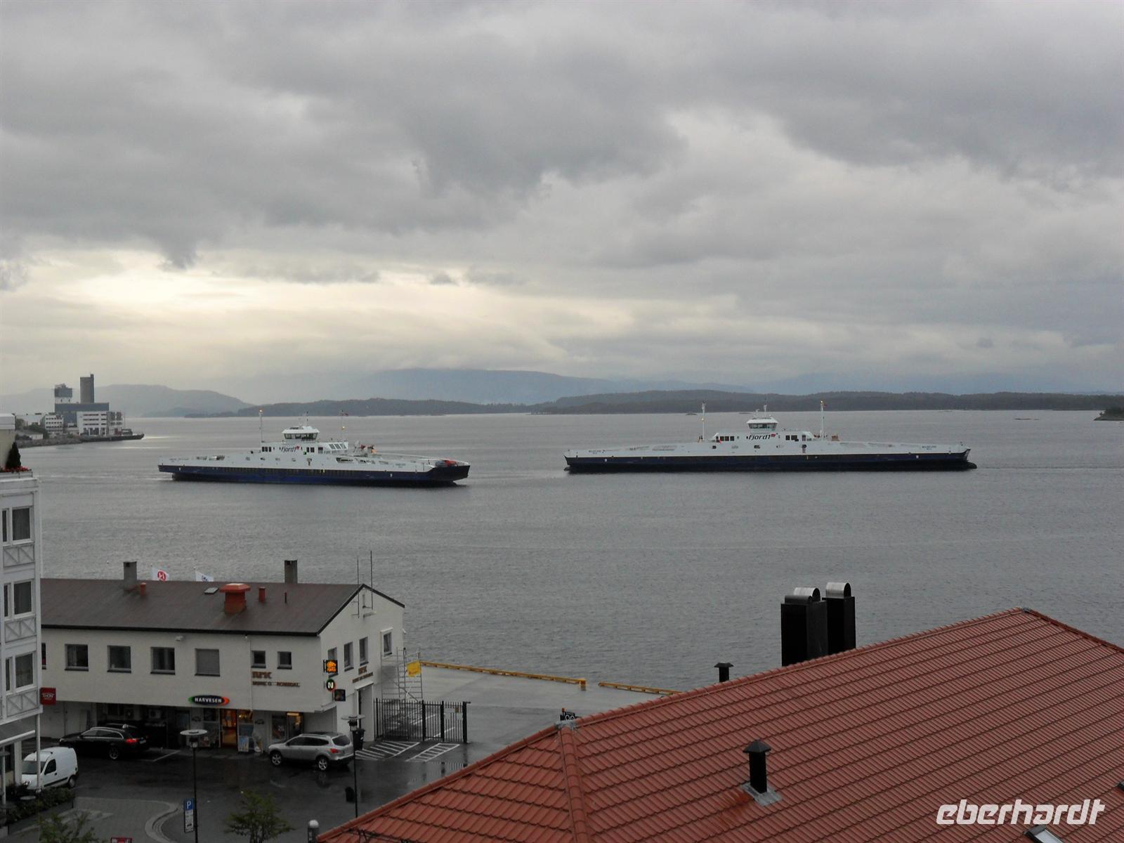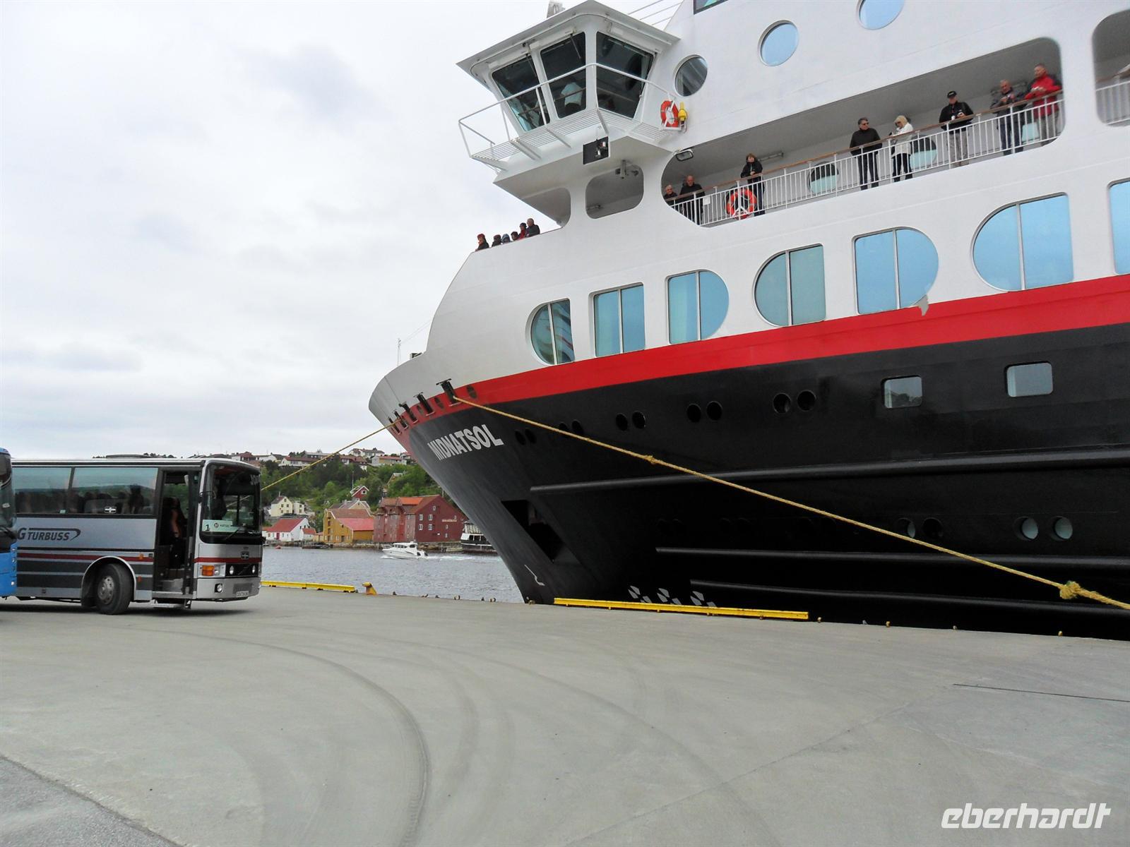Reibungslos verlief die Fahrt, die uns so pünktlich an den Bestimmungsort führte, dass noch Zeit für ein kleines ?Extra" war: Wir konnten am Fährhafen, der direkt in der Innenstadt von Kiel liegt, noch etwas Freizeit geben. Das war recht gut, denn so unsere Reisegäste noch vor Beginn der ?großen Fahrt" nach Norwegen ein bisschen Flair der berühmten ?Kieler Woche" schnuppern, die gerade begonnen hatte.