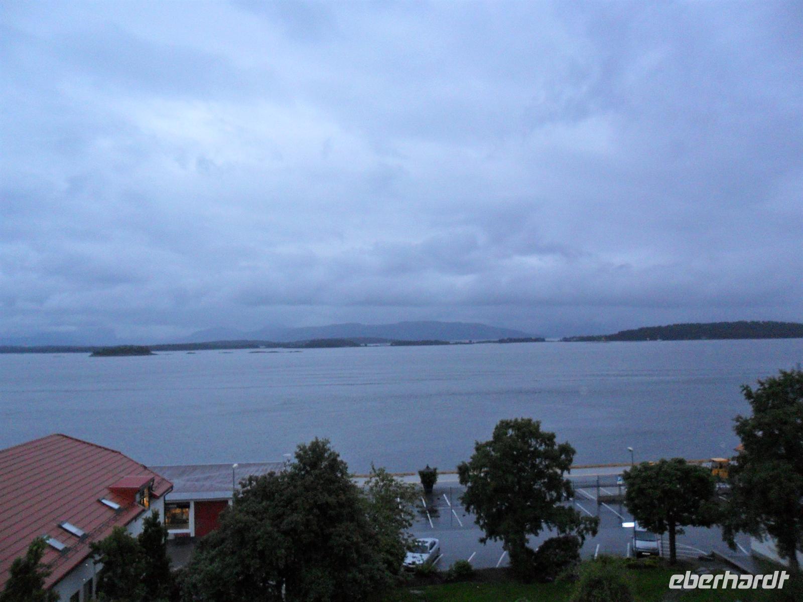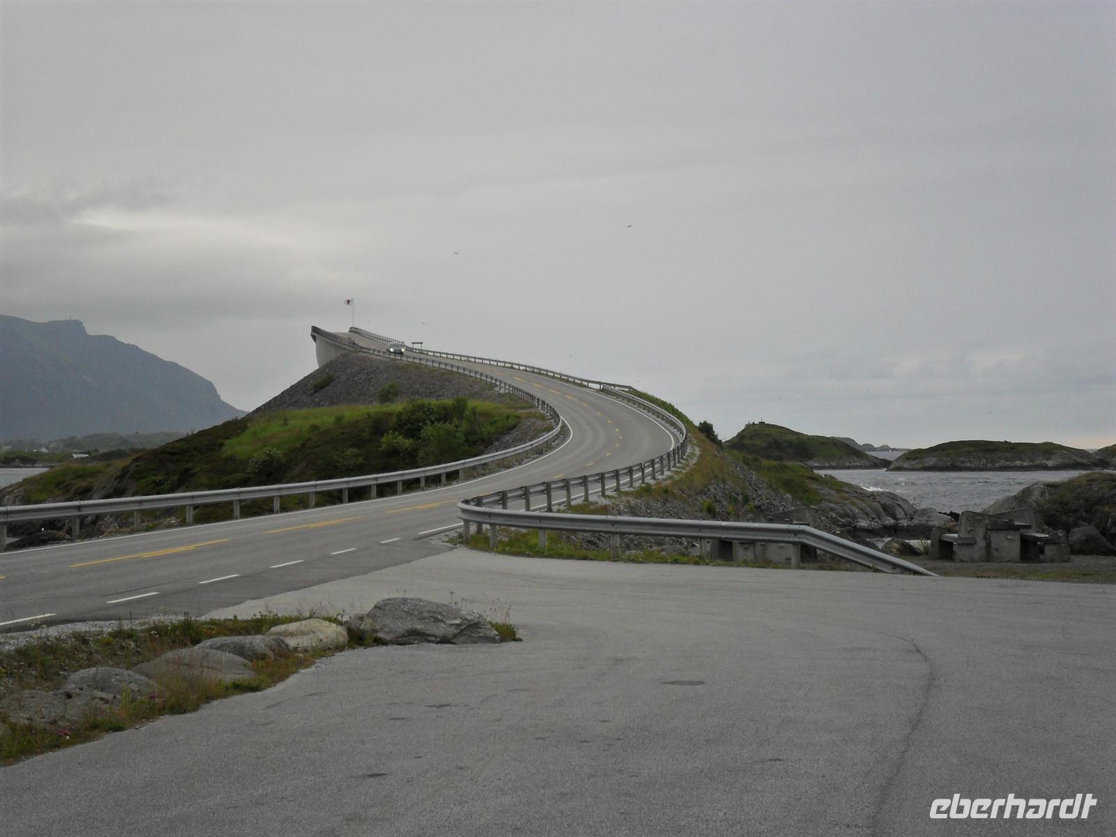 Der Bus fuhr unterdessen über Land und würde die Hurtigrutenfahrer in Kristiansund abholen. Pünktlich 16.30 lief die ?midnattsol", das neueste Boot der Hurtigrutenflotte im Fischereihafen von Kristiansund ein. Da die Stadt immer für ihren Klippfisch berühmt war, eine spezielle Haltbarmachung durch Einsalzen und Antrocknen, haben wir noch einen Spaziergang zur Klippfischbörse gemacht (wo alle Klippfisch fotografieren konnten) und die Denkmäler von der Klippfischfrau und der Seemine aus dem zweiten Weltkrieg besucht, die das Zentrum der Stadt bilden. Anschließend führte uns dann die Fahrt durch den neuerbauten und immer noch sündhaft teuren Tunnel, der die bis voriges Jahr noch fahrende Fähre ersetzt. Nach wenigen Kilometern erreichten wir den spektakulären Atlanterhavsveien. Die Straße, die über neun Brücken und zwölf Damme zahlreiche Inseln verbindet, die früher zwischen Herbst und Frühjahr kaum zu erreichen waren, ist äußerst malerisch, weswegen natürlich auch ein Fotostopp gemacht wurde, obwohl Regen aufkam. Im Winter ist die Straße schlimmen Stürmen und Sturmfluten ausgesetzt - nicht selten wird selbst die höchste Brücke von Wellen überspült. Von solchen Unwettern blieben wir allerdings verschont - wir setzten unsere Fahrt in die "Stadt der Rosen" nach Molde fort und genossen eine gutes Abendessen und eine bequeme Übernachtung im Alexandra Hotel.