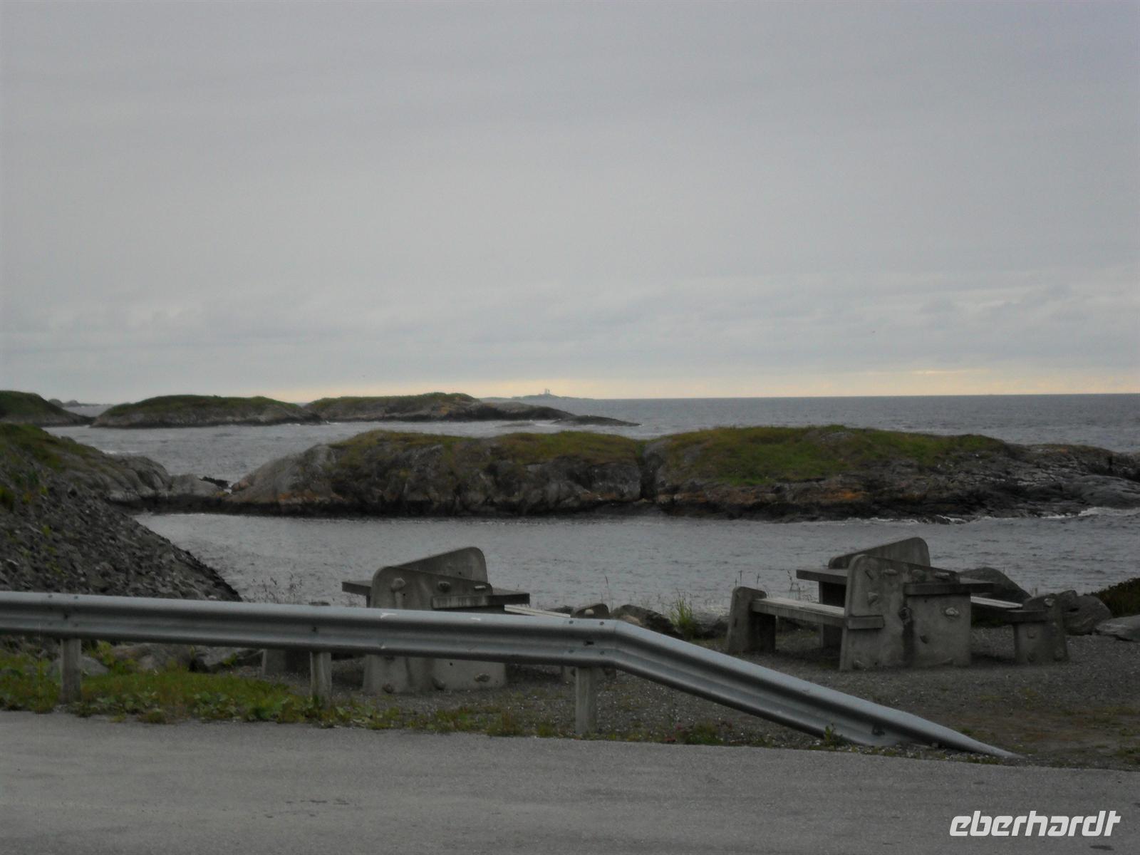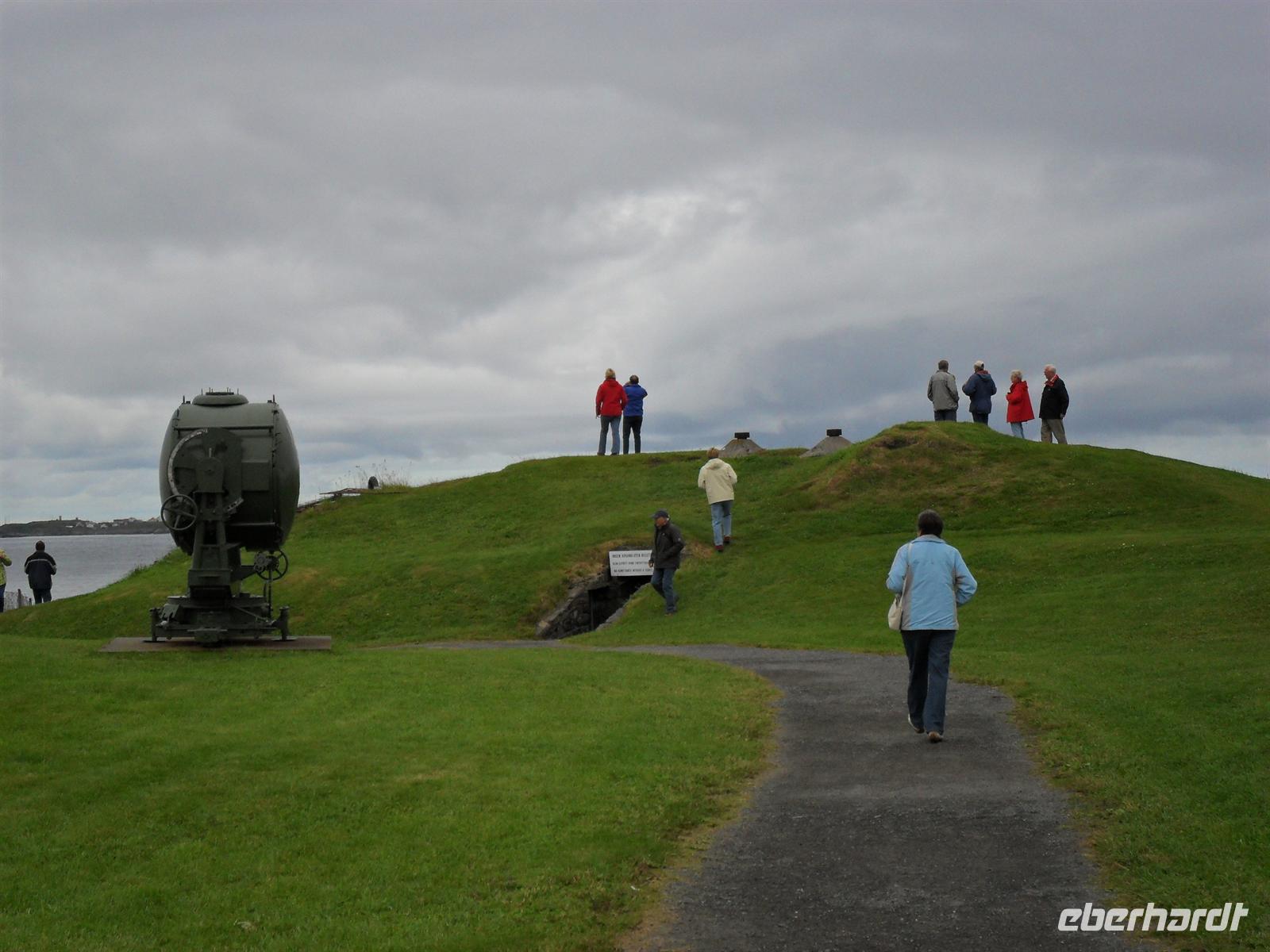 Fast immer ist dies einer DER Höhepunktstage bei dieser Fahrt, vor allem, wenn das Wetter mitspielt. Nach gestrigem Regen zeigte sich Molde, die ?Stadt der Rosen" wie sie wegen ihres milden Klimas und der vielen Blumen genannt wird, wieder von ihrer besseren Seite. Unser Erlebnistag begann zunächst mit der Auffahrt auf den Hausberg von Molde, den 407 m hohen Varden. Von hier hat man einen grandiosen Ausblick auf die Fjord- und Inselwelt der Provinz Møre og Romsdal und auf hunderte Gipfel der umliegenden Bergwelt. Anschließend konnten wir, da Zeit genug war, ein tolles ?Richtig reisen!"-Extra einbauen: eine Fahrt nach Bud. Hier hatte im 16. Jh. der Bischof von Bud versucht, einen Aufstand gegen die damalige dänische Herrschaft zu organisieren um Norwegen unabhängig zu machen. Der Versuch misslang, aber die Kirche von Bud hat dadurch Berühmtheit erlangt, auch wenn der hübsche heutige Kirchenbau erst aus dem Jahre 1717 stammt. Noch interessanter aber ist der über der Kirche gelegene Hügel Ergan. Während des zweiten Weltkrieges hatten deutsche Truppen hier eine Küstenfestung eingerichtet: Bei herrlichem Wetter besuchten wir diesen Ort, der zunächst einmal einen unvergleichlichen Ausblick auf die vorgelagerten Inseln und den Schärengarten von Hustadsvik gewährt. Interessant sind auch die Reste der Küstenfestung mit alten Bunkeranlagen sowie langsam verrottendem Kriegsgerät.
