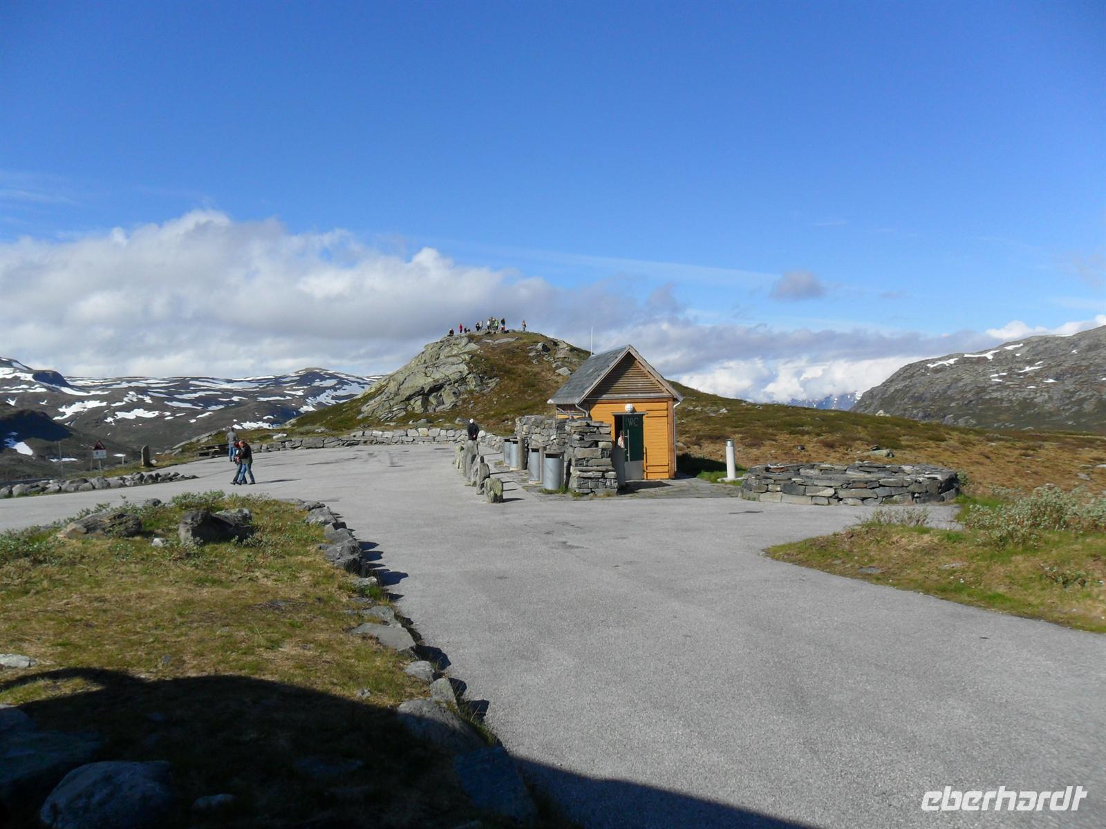 Auch heute war eine recht frühe Abfahrt notwendig, um eine interessante Fähre zu erreichen. Zunächst jedoch war eine Fjellfahrt notwendig. Bei dieser sind zahlreiche Fotostopps auf dem Sognefjell zu empfehlen. Gletscher, steile Berge, Seen mit herrlichen Wasserspiegelungen es gibt viele Punkte, an denen man tolle Fotos machen kann. Zwischendurch gibt es (fast immer) einen Stopp am Oskarshaug, einem nach einem dänischen Kronprinzen benannten Aussichtspunkt mit dem einzigen Toilettenhäuschen in den Bergen.