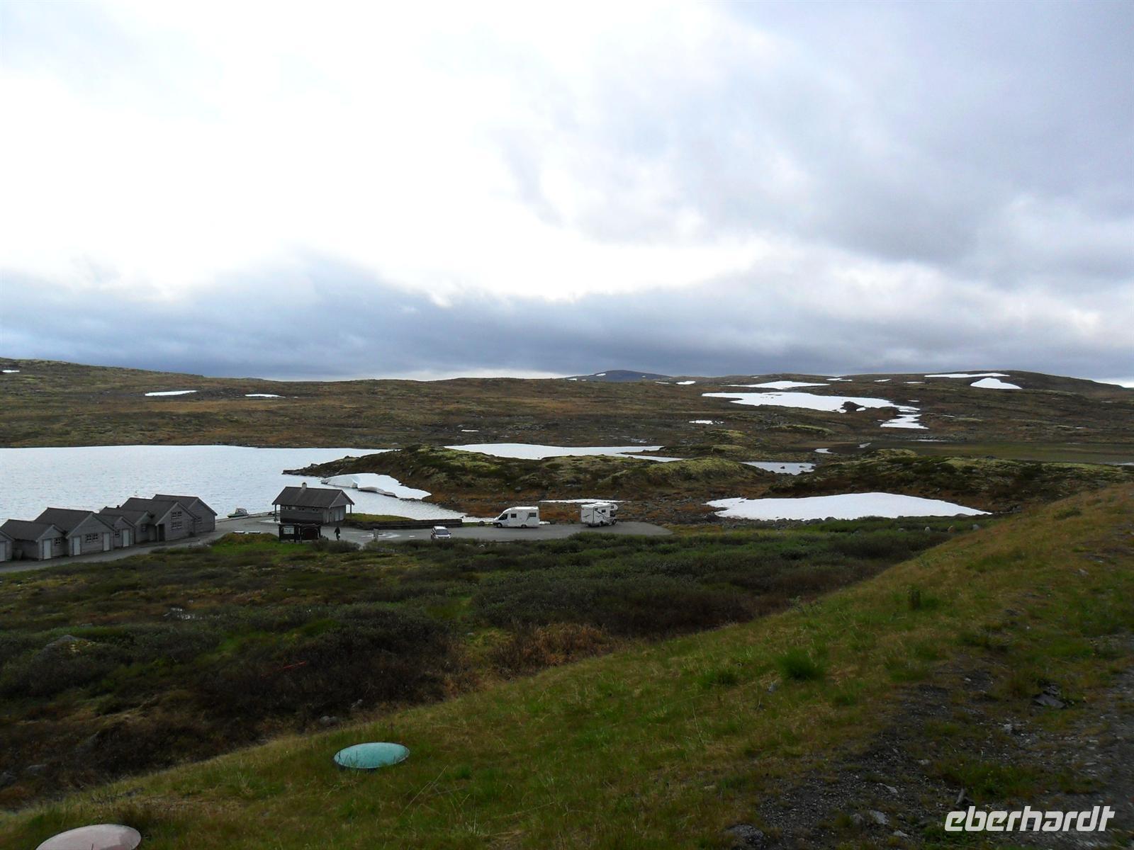 Von hier fuhren wir über die Hardangervidda, mit 8000 km² Ausdehnung die größte Hochebene Europas. Sie wirkt abweisend und unendlich weit und man kann sich vorstellen, wie hier im Winter und zur Schneeschmelze die Naturgewalten wüten. Freundlicher wird es im Ustedalen und dem folgenden Wintersportgebiet von Geilo. Nach einiger Zeit legten wir noch einen Toilettenstopp ein, denn wir hatten noch das ganze Hallingdal als Strecke vor uns. Der Tag wurde recht lang, denn erst gegen 20.00 Uhr trafen wir im herrlich gelegenen Sole-Hotel in Noresund ein. Es liegt am Ufer des langgezogenen Krogen-Sees und bietet malerische Ausblicke. Nach einem guten Abendbuffet ging es zur letzten Übernachtung in Norwegen.